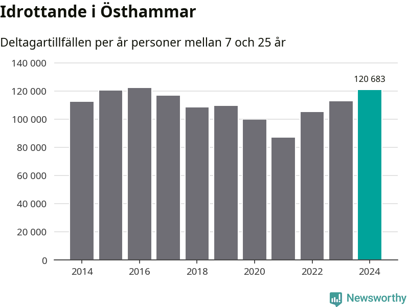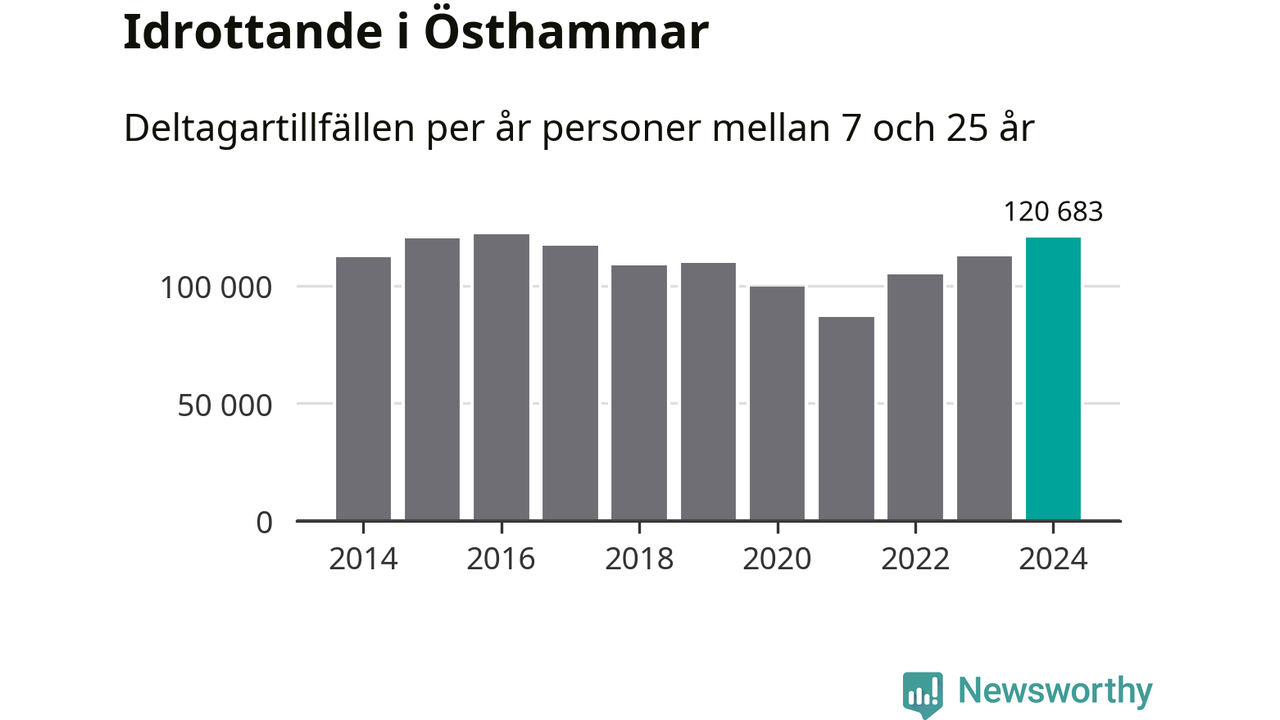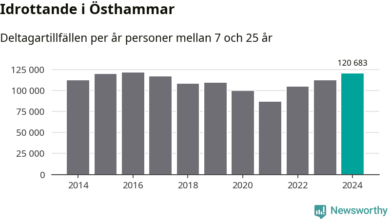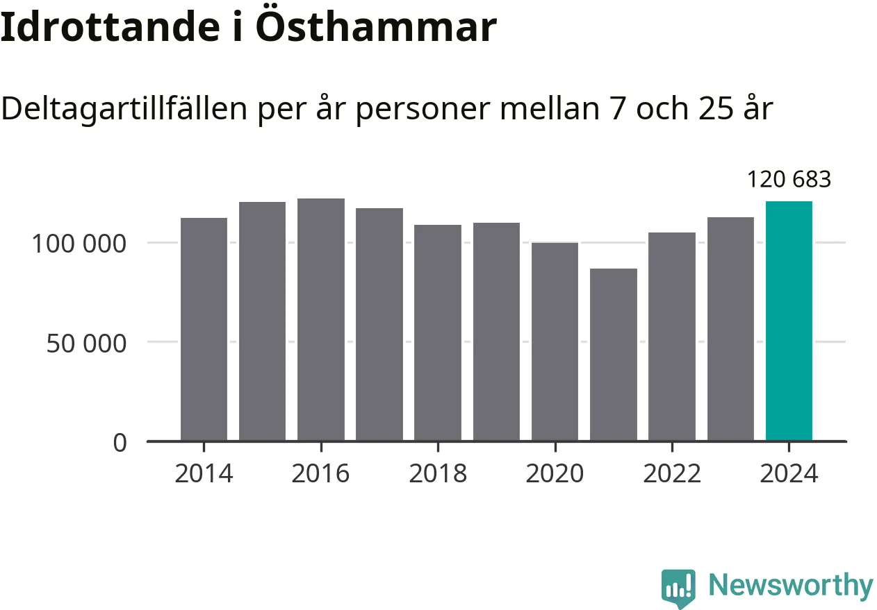 För tredje året i rad ökade aktiviteten inom ungdomsidrotten i Östhammar under 2024. Det visar nya siffror om utbetalt Lok-stöd, som delas ut till föreningar anslutna till Riksidrottsförbundet specialidrottsförbund. Stödet riktar sig till föreningar som bedriver verksamhet för deltagare i åldern 7-25 år. Under året rapporterade föreningarna i Östhammar runt 121 000 deltagartillfällen, vilket är en ökning med sju procent jämfört med 2023 och den högsta siffran i kommunen sedan 2016. I riket som helhet ökade antalet deltagartillfällen med fem procent under 2024.