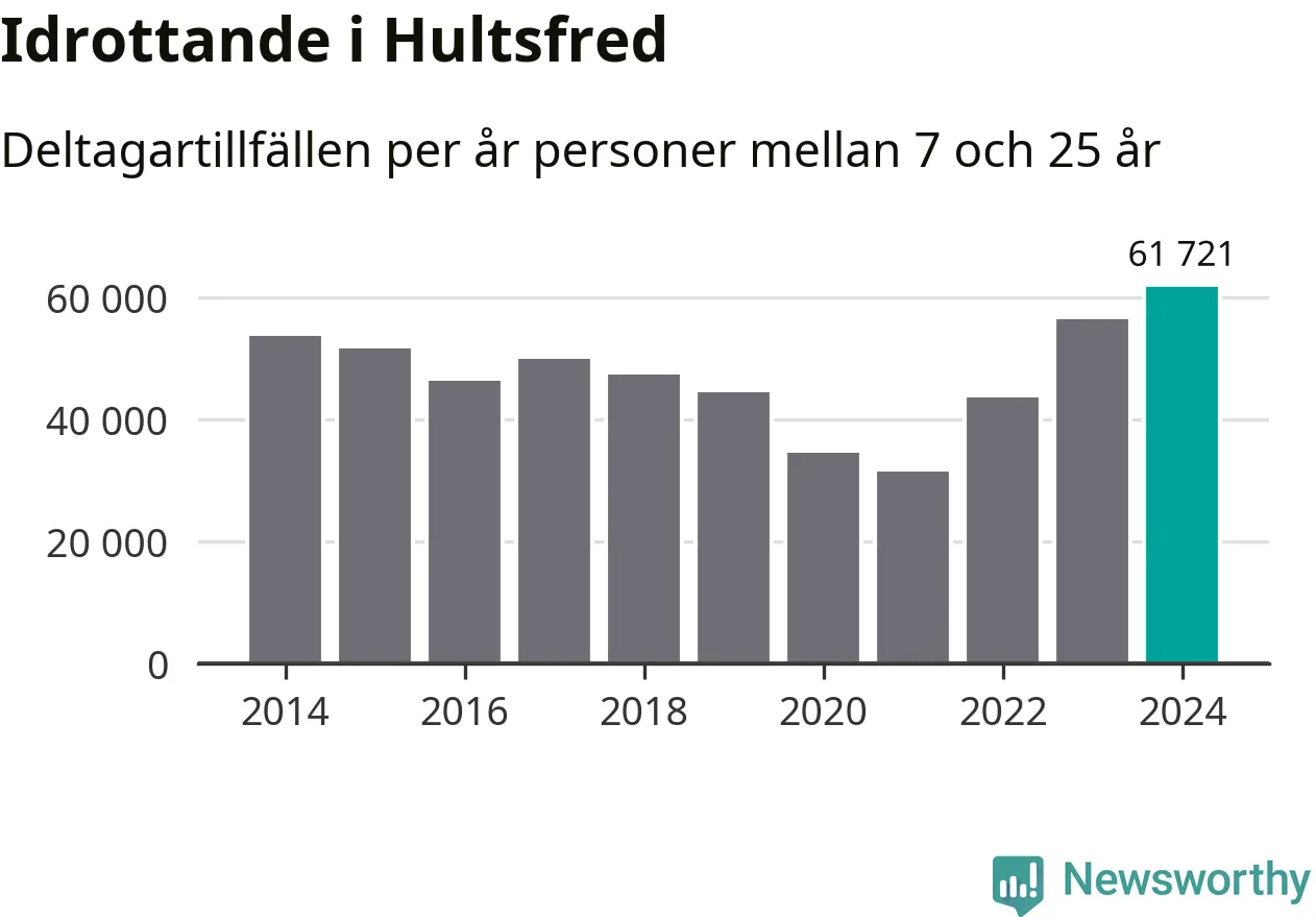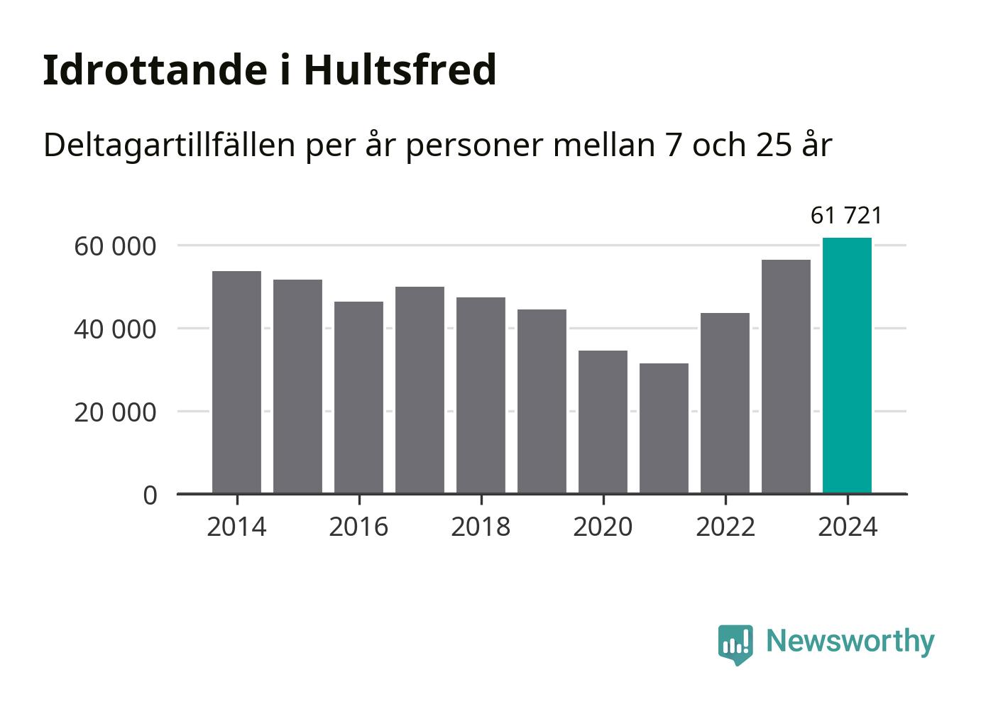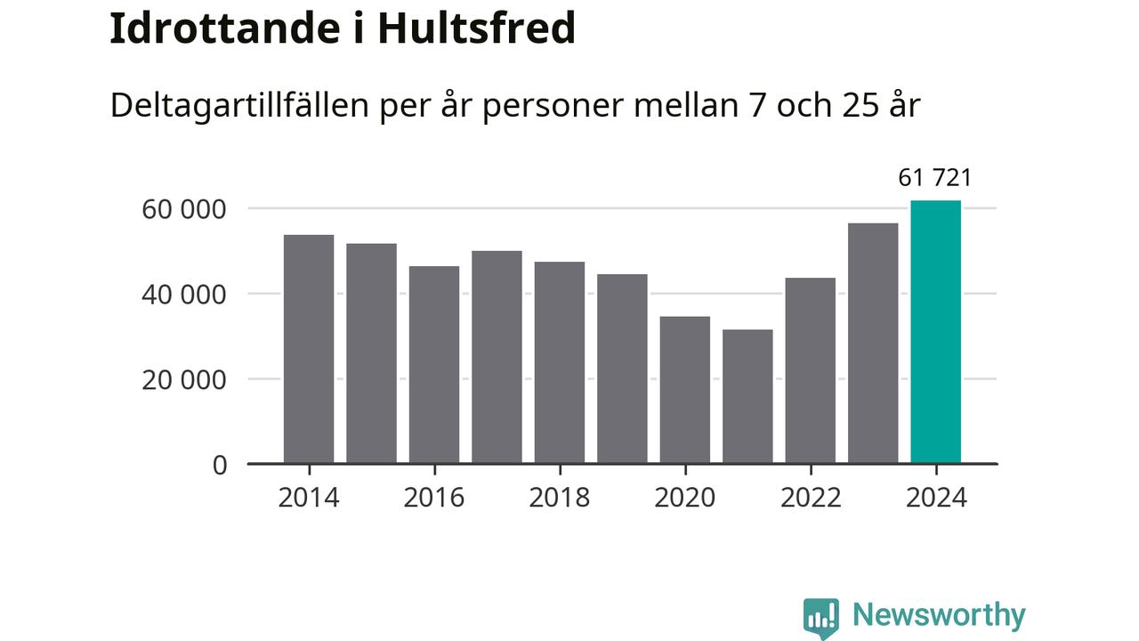 För tredje året i rad ökade aktiviteten inom ungdomsidrotten i Hultsfred under 2024. Det visar nya siffror om utbetalt Lok-stöd, som delas ut till föreningar anslutna till Riksidrottsförbundet specialidrottsförbund. Stödet riktar sig till föreningar som bedriver verksamhet för deltagare i åldern 7-25 år. Under året rapporterade föreningarna i Hultsfred runt 62 000 deltagartillfällen, vilket är en ökning med nio procent jämfört med 2023, och den högsta siffran i kommunen sedan åtminstone 2014. I riket som helhet ökade antalet deltagartillfällen med fem procent under 2024.