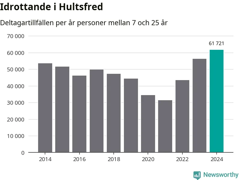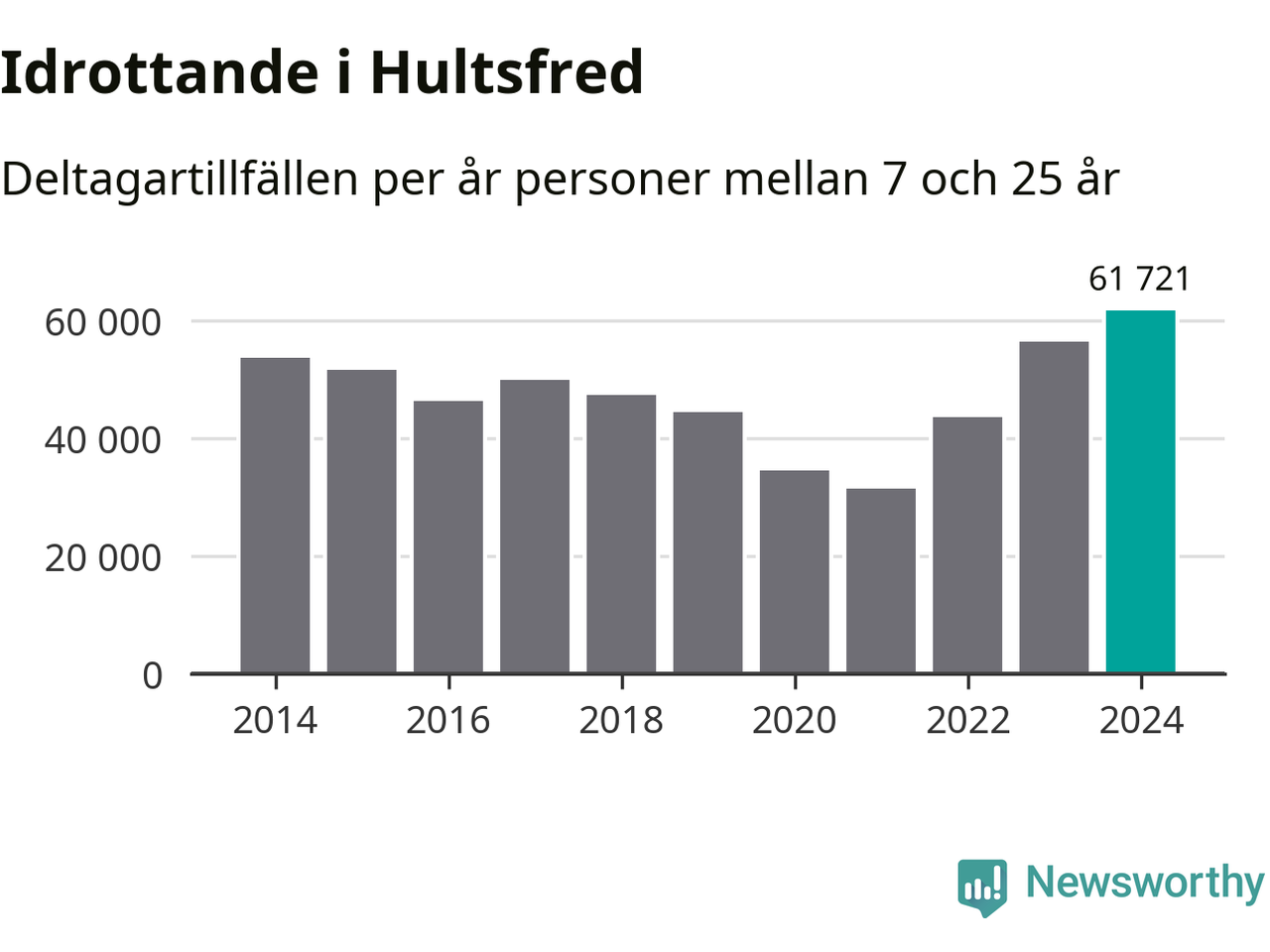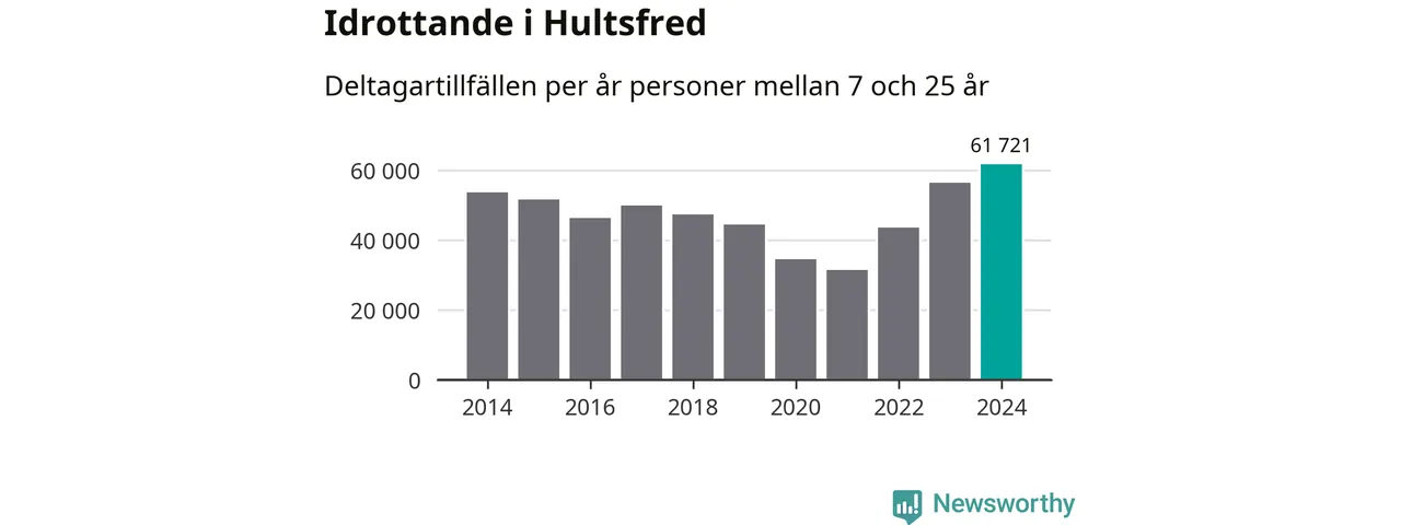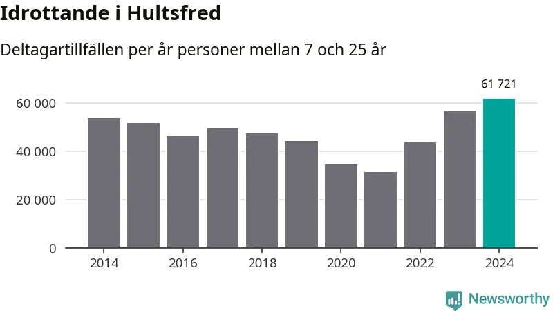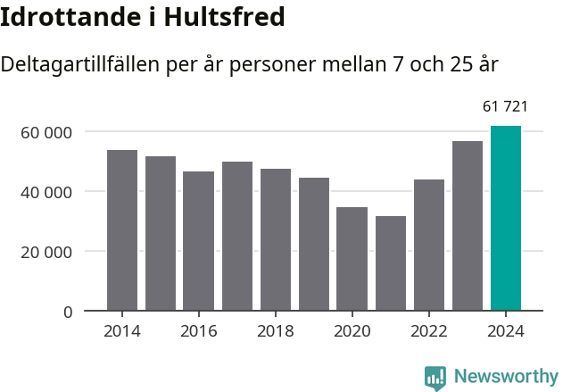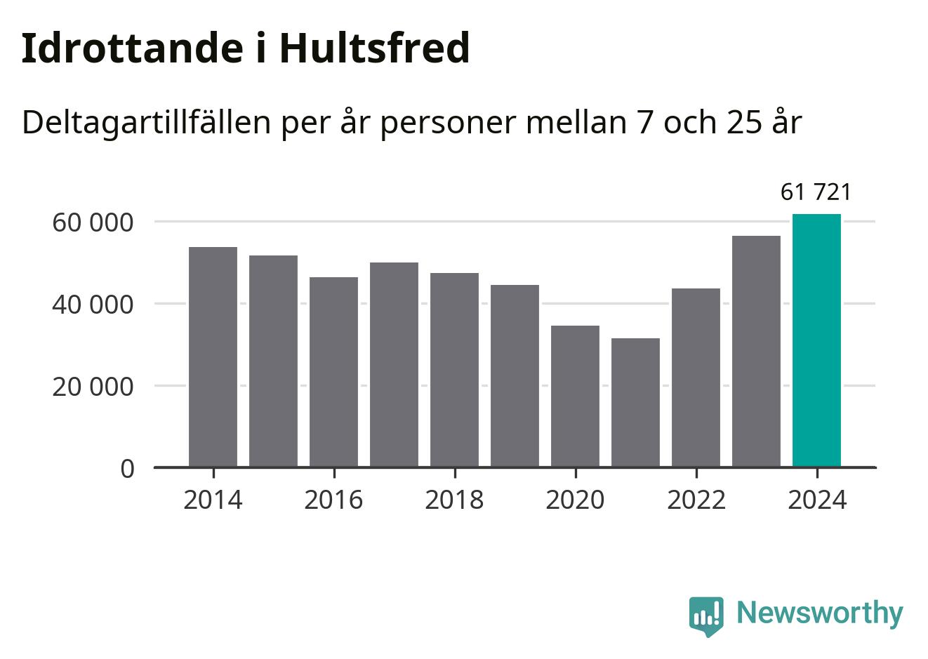 För tredje året i rad ökade aktiviteten inom ungdomsidrotten i Hultsfred under 2024. Det visar nya siffror om utbetalt Lok-stöd, som delas ut till föreningar anslutna till Riksidrottsförbundet specialidrottsförbund. Stödet riktar sig till föreningar som bedriver verksamhet för deltagare i åldern 7-25 år. Under året rapporterade föreningarna i Hultsfred runt 62 000 deltagartillfällen, vilket är en ökning med nio procent jämfört med 2023, och den högsta siffran i kommunen sedan åtminstone 2014. I riket som helhet ökade antalet deltagartillfällen med fem procent under 2024.