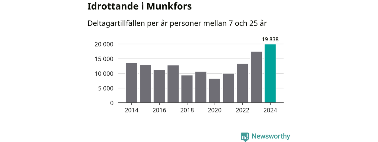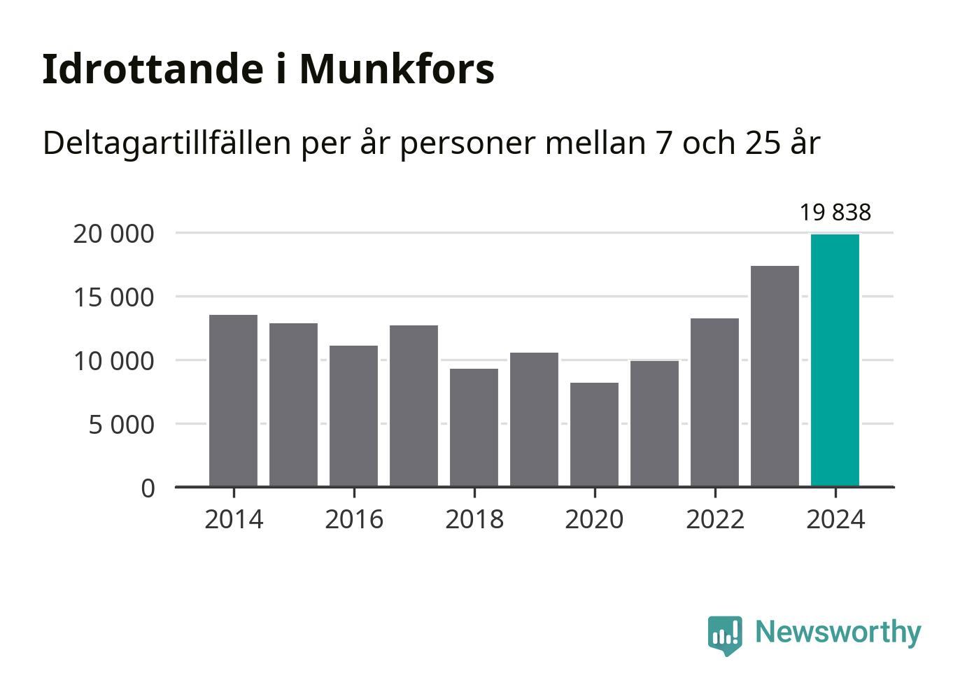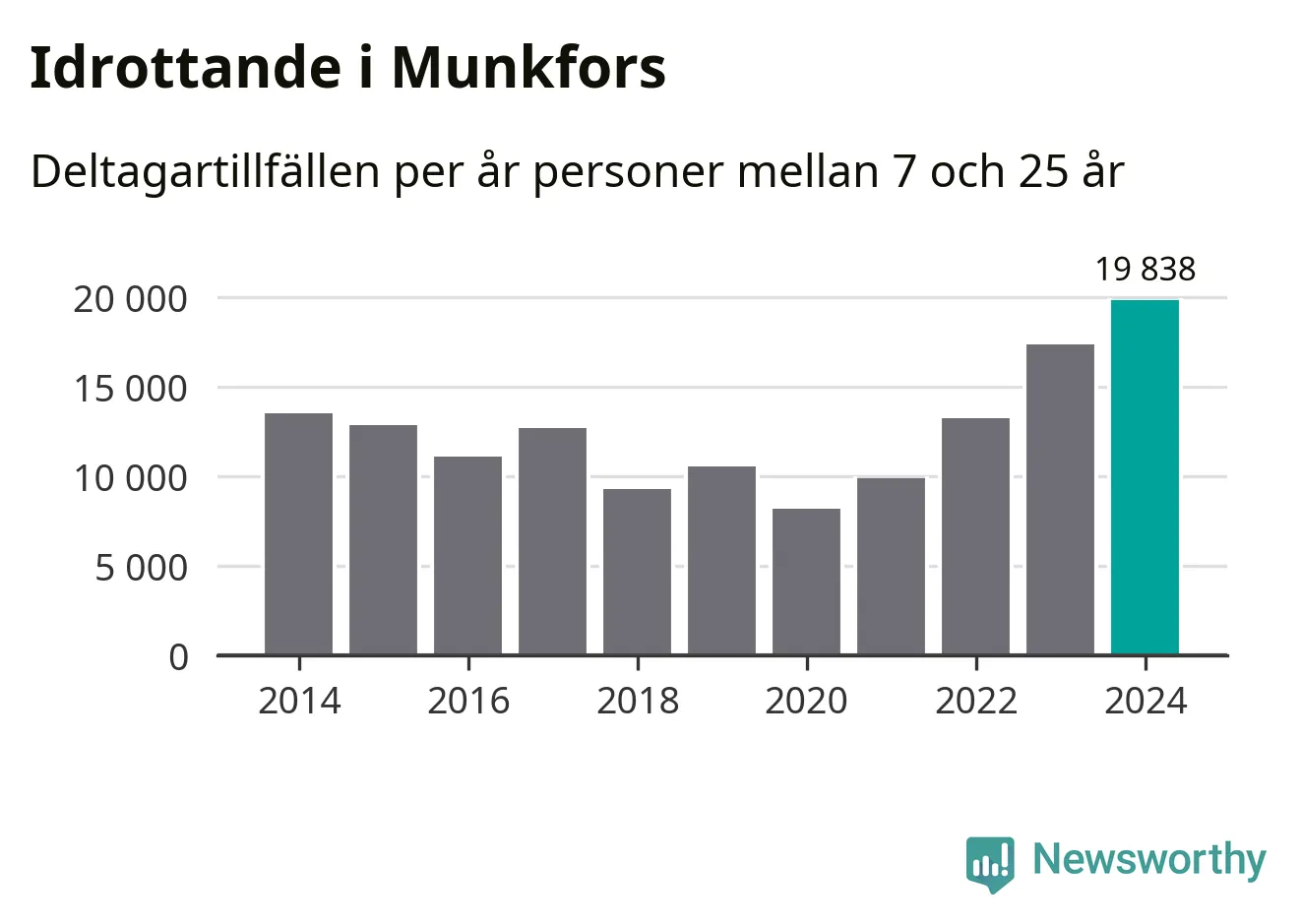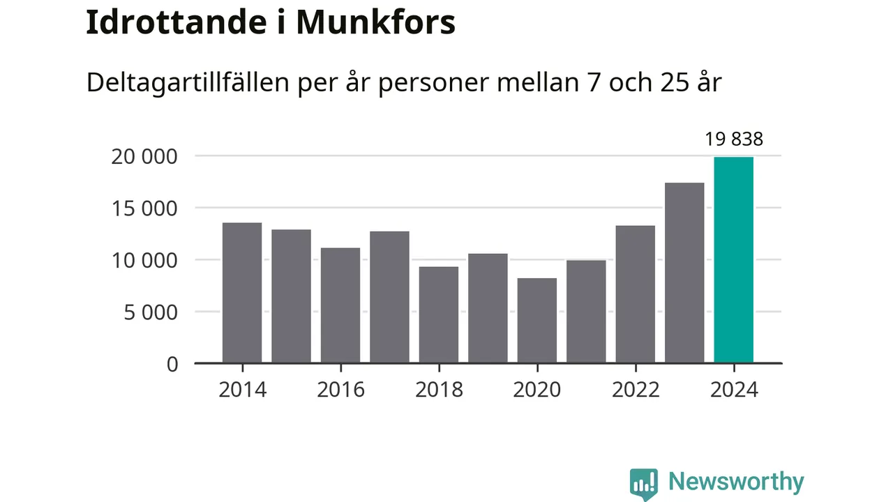 För fjärde året i rad ökade aktiviteten inom ungdomsidrotten i Munkfors under 2024. Det visar nya siffror om utbetalt Lok-stöd, som delas ut till föreningar anslutna till Riksidrottsförbundet specialidrottsförbund. Stödet riktar sig till föreningar som bedriver verksamhet för deltagare i åldern 7-25 år. Under året rapporterade föreningarna i Munkfors runt 20 000 deltagartillfällen, vilket är en ökning med 14 procent jämfört med 2023, och den högsta siffran i kommunen sedan åtminstone 2014. I riket som helhet ökade antalet deltagartillfällen med fem procent under 2024.