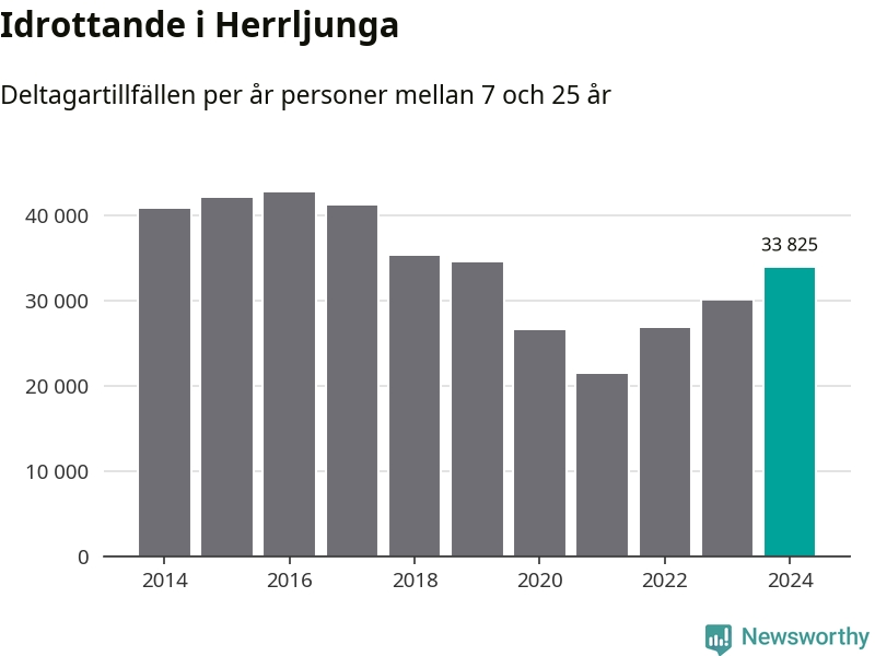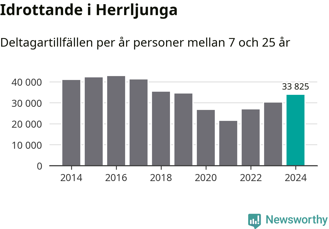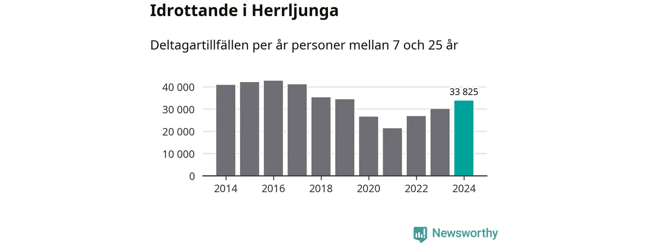 De 34 000 deltagartillfällen innebär att varje invånare i Herrljunga mellan 7 och 25 år i snitt deltog i knappt 18 träningar, matcher eller turneringar under 2024. Flest deltagartillfällen per invånare i Västra Götaland hade Partille kommun med 39 deltagartillfällen per invånare. I andra änden av listan finns Svenljunga kommun, 11 deltagartillfällen per invånare. Värt att nämna är att deltagartillfällena räknas i den kommun föreningen finns, det kan alltså vara ungdomar från en annan kommun som deltar.