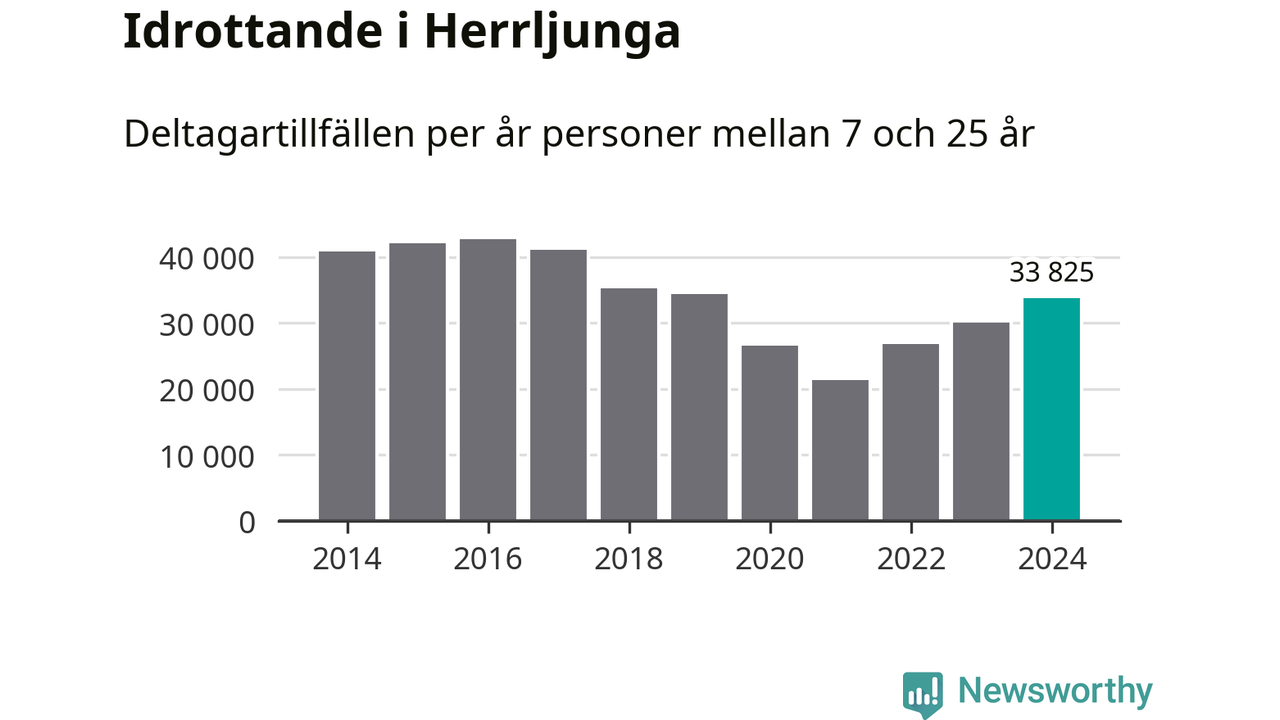 För tredje året i rad ökade aktiviteten inom ungdomsidrotten i Herrljunga under 2024. Det visar nya siffror om utbetalt Lok-stöd, som delas ut till föreningar anslutna till Riksidrottsförbundet specialidrottsförbund. Stödet riktar sig till föreningar som bedriver verksamhet för deltagare i åldern 7-25 år. Under året rapporterade föreningarna i Herrljunga runt 34 000 deltagartillfällen, vilket är en ökning med 13 procent jämfört med 2023. I riket som helhet ökade antalet deltagartillfällen med fem procent under 2024.