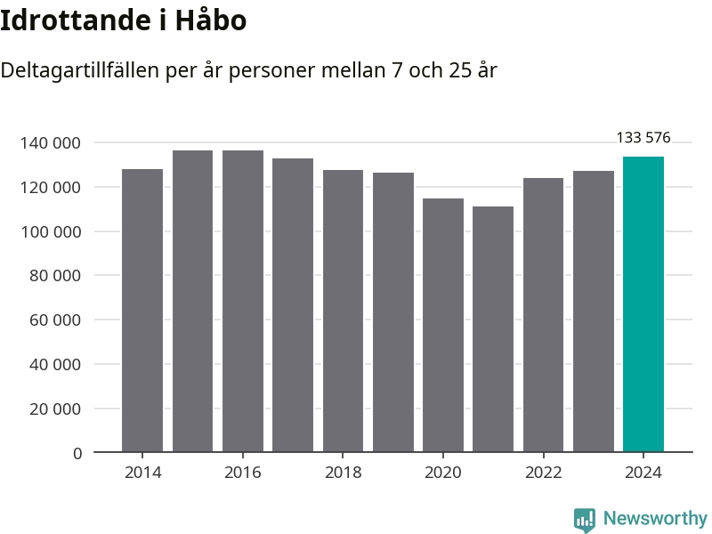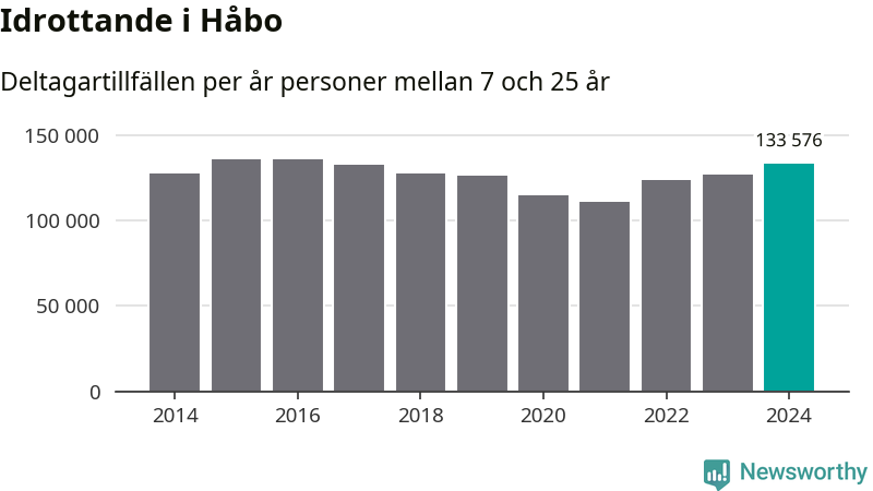De 134 000 deltagartillfällen innebär att varje invånare i Håbo mellan 7 och 25 år i snitt deltog i 25 träningar, matcher eller turneringar under 2024. Det är den näst högsta siffran i Uppsala län. Flest deltagartillfällen per invånare i Uppsala län hade Östhammars kommun med 28 deltagartillfällen per invånare. I andra änden av listan finns Heby kommun, 17 deltagartillfällen per invånare. Värt att nämna är att deltagartillfällena räknas i den kommun föreningen finns, det kan alltså vara ungdomar från en annan kommun som deltar.