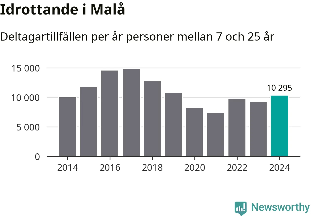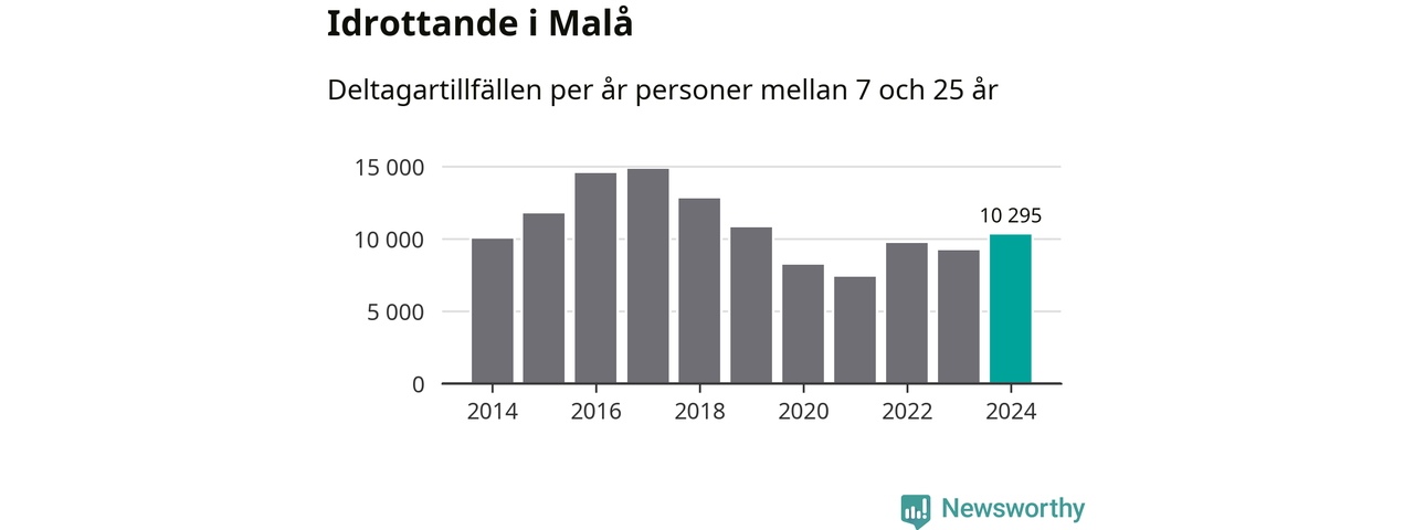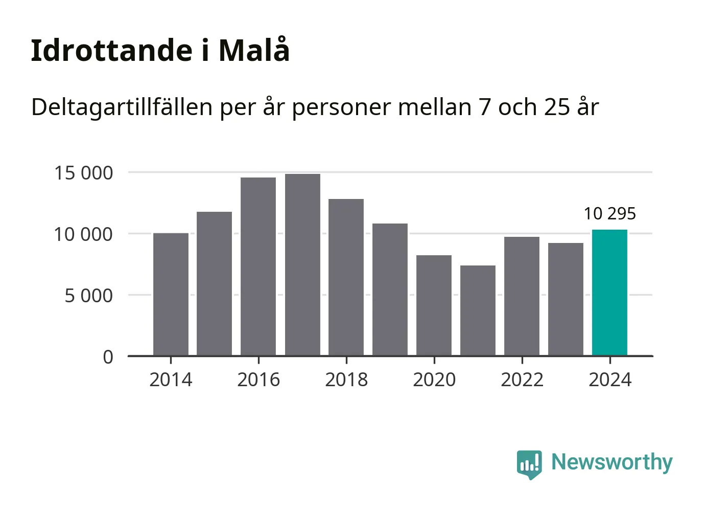 De drygt 10 000 deltagartillfällen innebär att varje invånare i Malå mellan 7 och 25 år i snitt deltog i 17 träningar, matcher eller turneringar under 2024. Det är en relativt låg siffra, nationellt sett. Flest deltagartillfällen per invånare i Västerbotten hade Skellefteå kommun med 33 deltagartillfällen per invånare. I andra änden av listan finns Bjurholms kommun, 9 deltagartillfällen per invånare. Värt att nämna är att deltagartillfällena räknas i den kommun föreningen finns, det kan alltså vara ungdomar från en annan kommun som deltar.