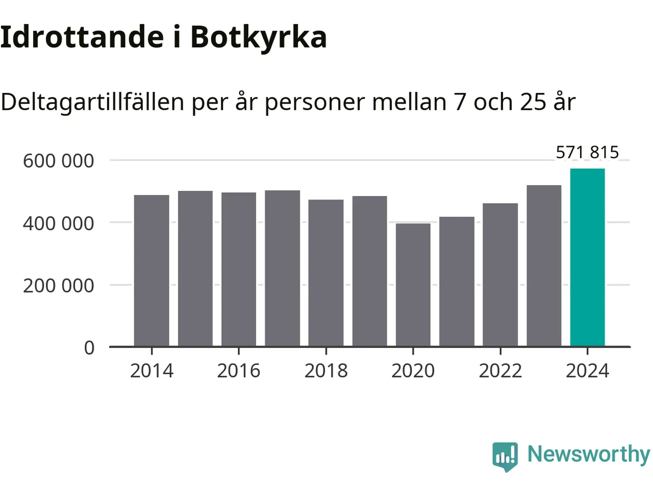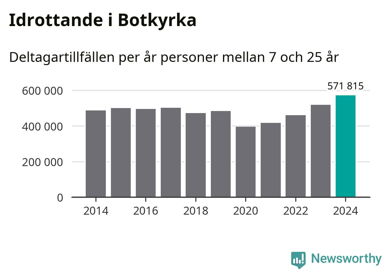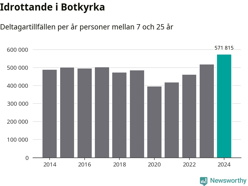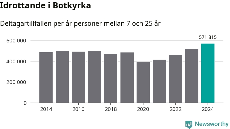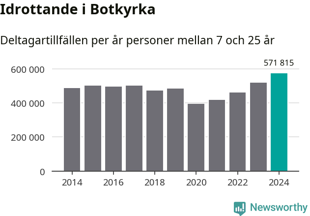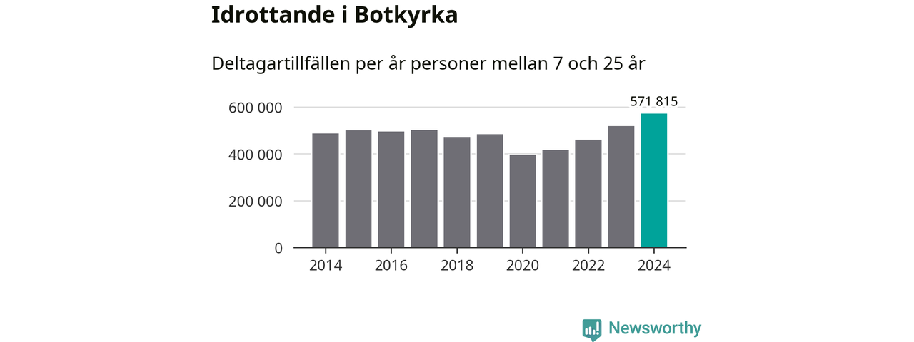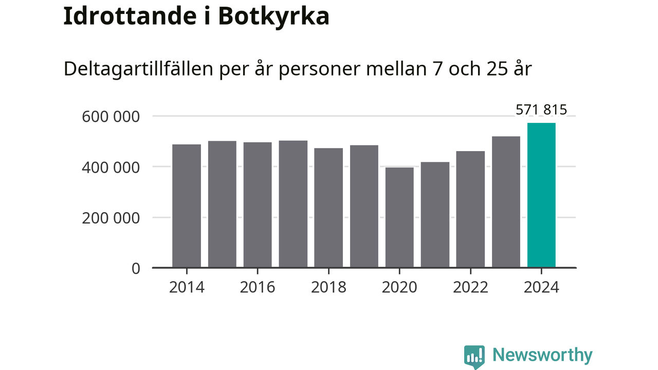För fjärde året i rad ökade aktiviteten inom ungdomsidrotten i Botkyrka under 2024. Det visar nya siffror om utbetalt Lok-stöd, som delas ut till föreningar anslutna till Riksidrottsförbundet specialidrottsförbund. Stödet riktar sig till föreningar som bedriver verksamhet för deltagare i åldern 7-25 år. Under året rapporterade föreningarna i Botkyrka runt 572 000 deltagartillfällen, vilket är en ökning med tio procent jämfört med 2023, och den högsta siffran i kommunen sedan åtminstone 2014. I riket som helhet ökade antalet deltagartillfällen med fem procent under 2024.
