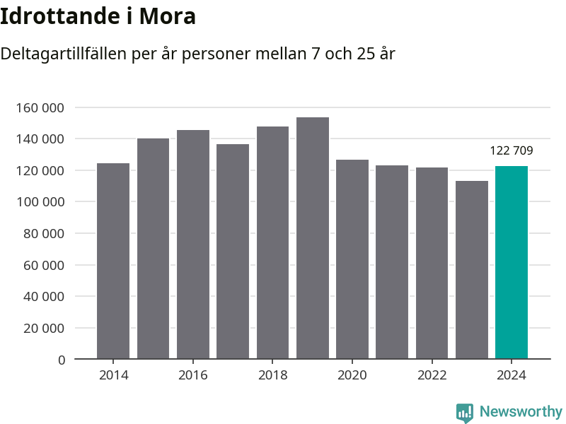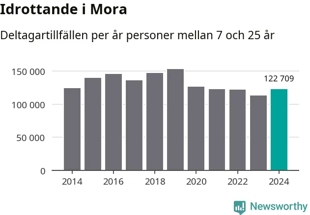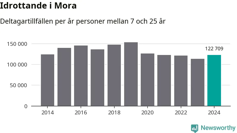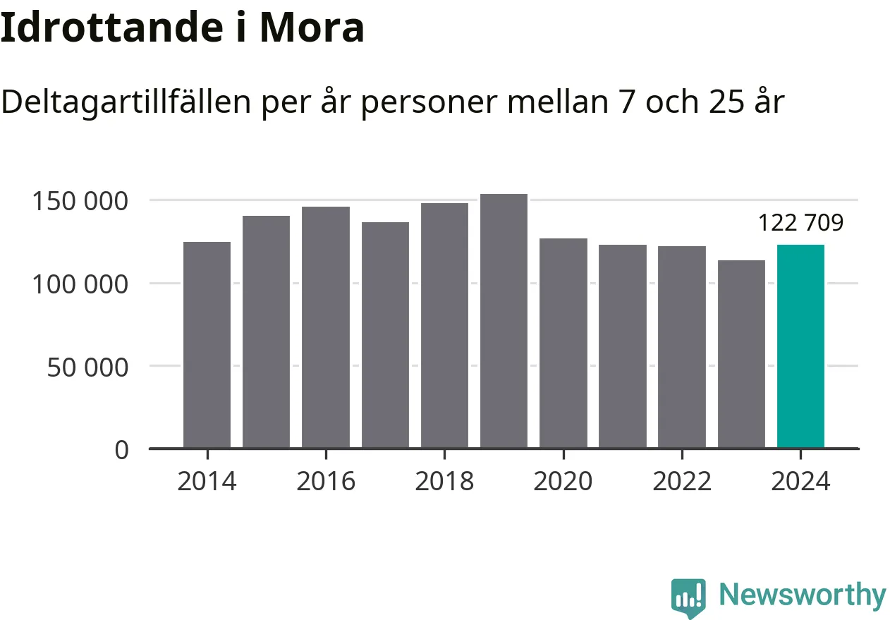 Mora-ungdomarna idrottade mer under 2024. Det visar nya siffror om utbetalt Lok-stöd, som delas ut till föreningar anslutna till Riksidrottsförbundet specialidrottsförbund. Stödet riktar sig till föreningar som bedriver verksamhet för deltagare i åldern 7-25 år. Under året rapporterade föreningarna i Mora runt 123 000 deltagartillfällen, vilket är en ökning med åtta procent jämfört med 2023. I riket som helhet ökade antalet deltagartillfällen med fem procent under 2024.