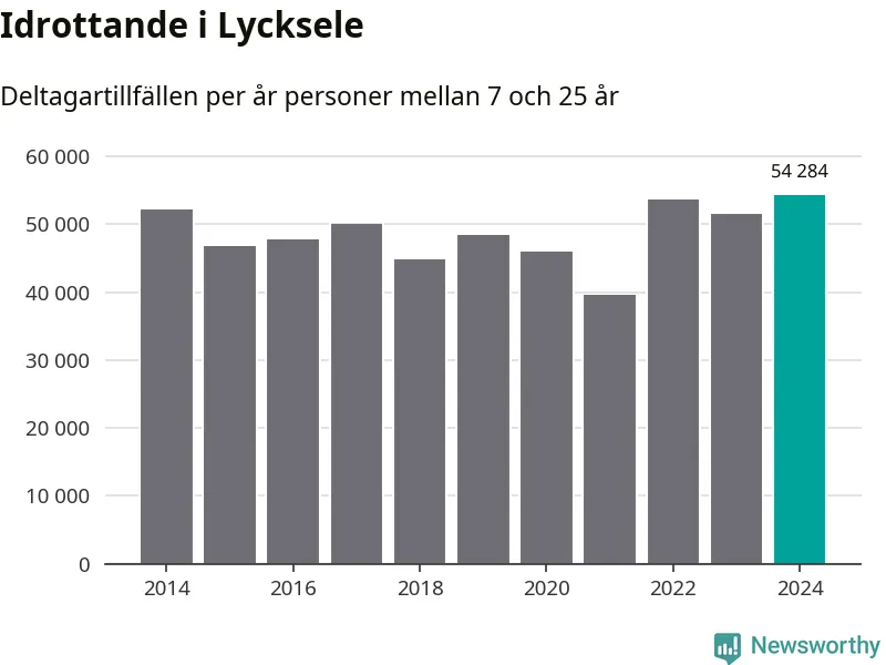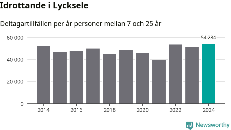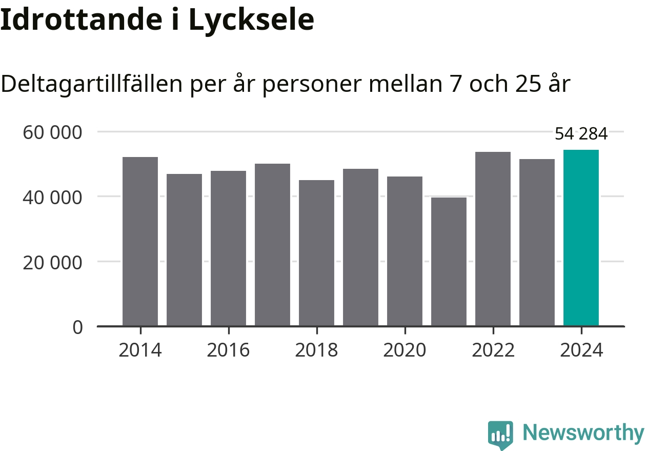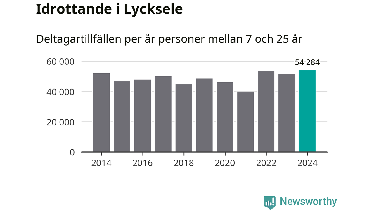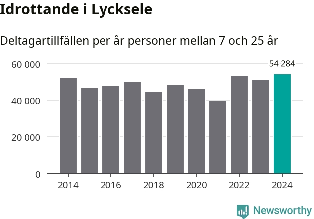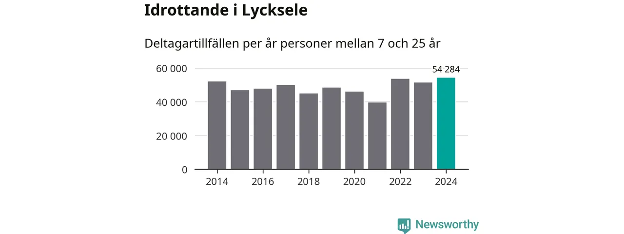 Lycksele-ungdomarna idrottade mer under 2024. Det visar nya siffror om utbetalt Lok-stöd, som delas ut till föreningar anslutna till Riksidrottsförbundet specialidrottsförbund. Stödet riktar sig till föreningar som bedriver verksamhet för deltagare i åldern 7-25 år. Under året rapporterade föreningarna i Lycksele runt 54 000 deltagartillfällen, vilket är en ökning med sex procent jämfört med 2023, och den högsta siffran i kommunen sedan åtminstone 2014. I riket som helhet ökade antalet deltagartillfällen med fem procent under 2024.