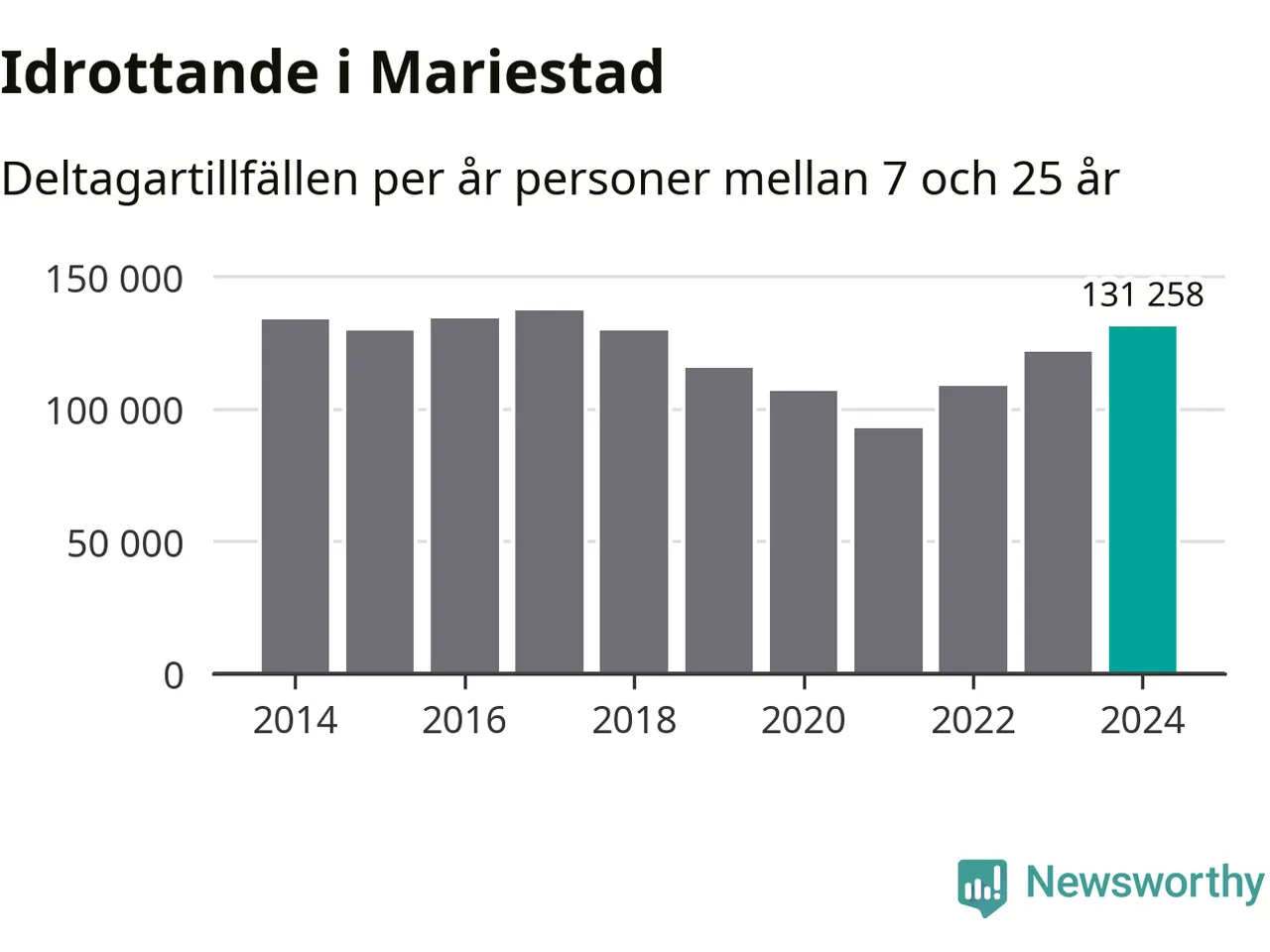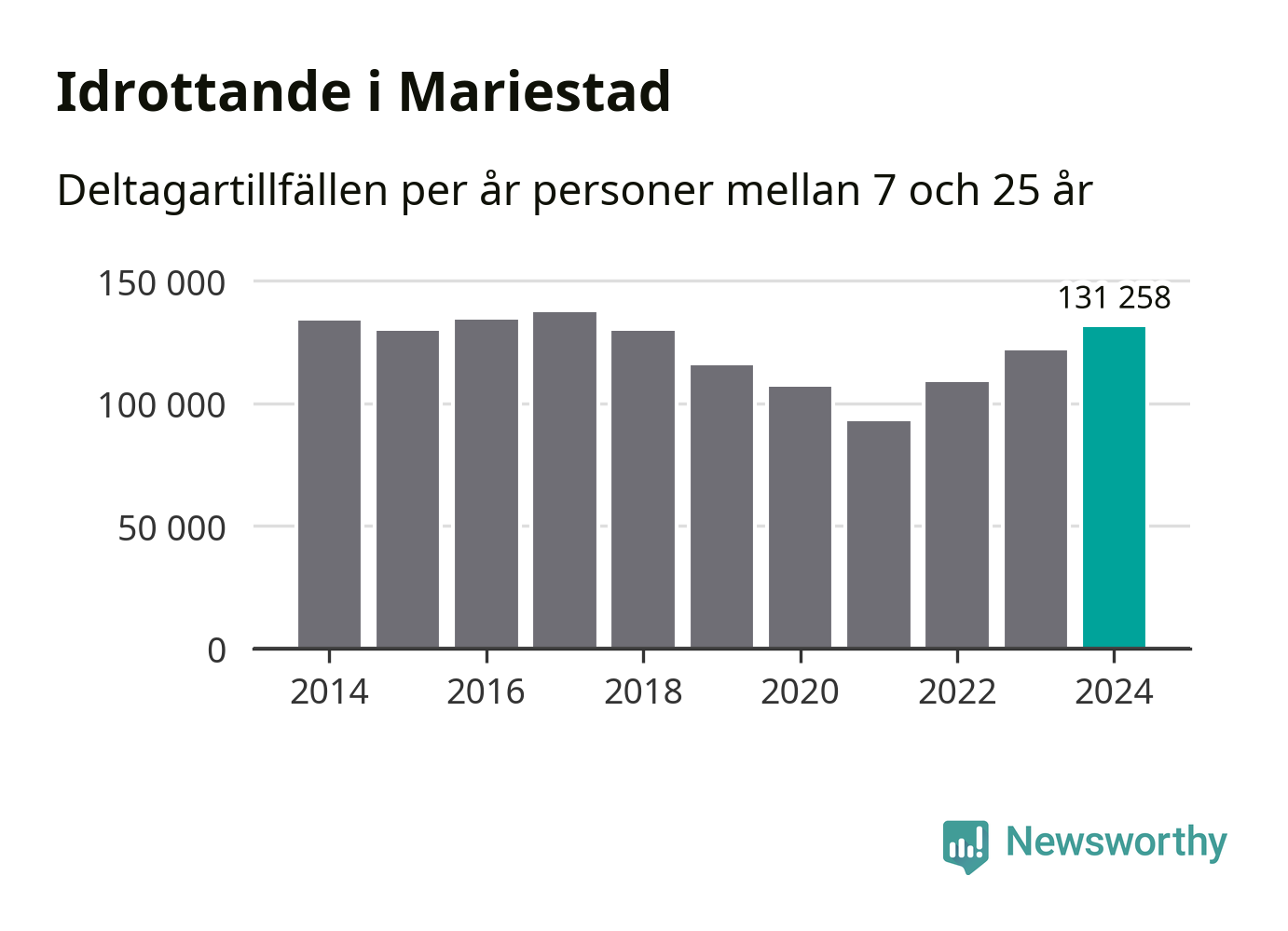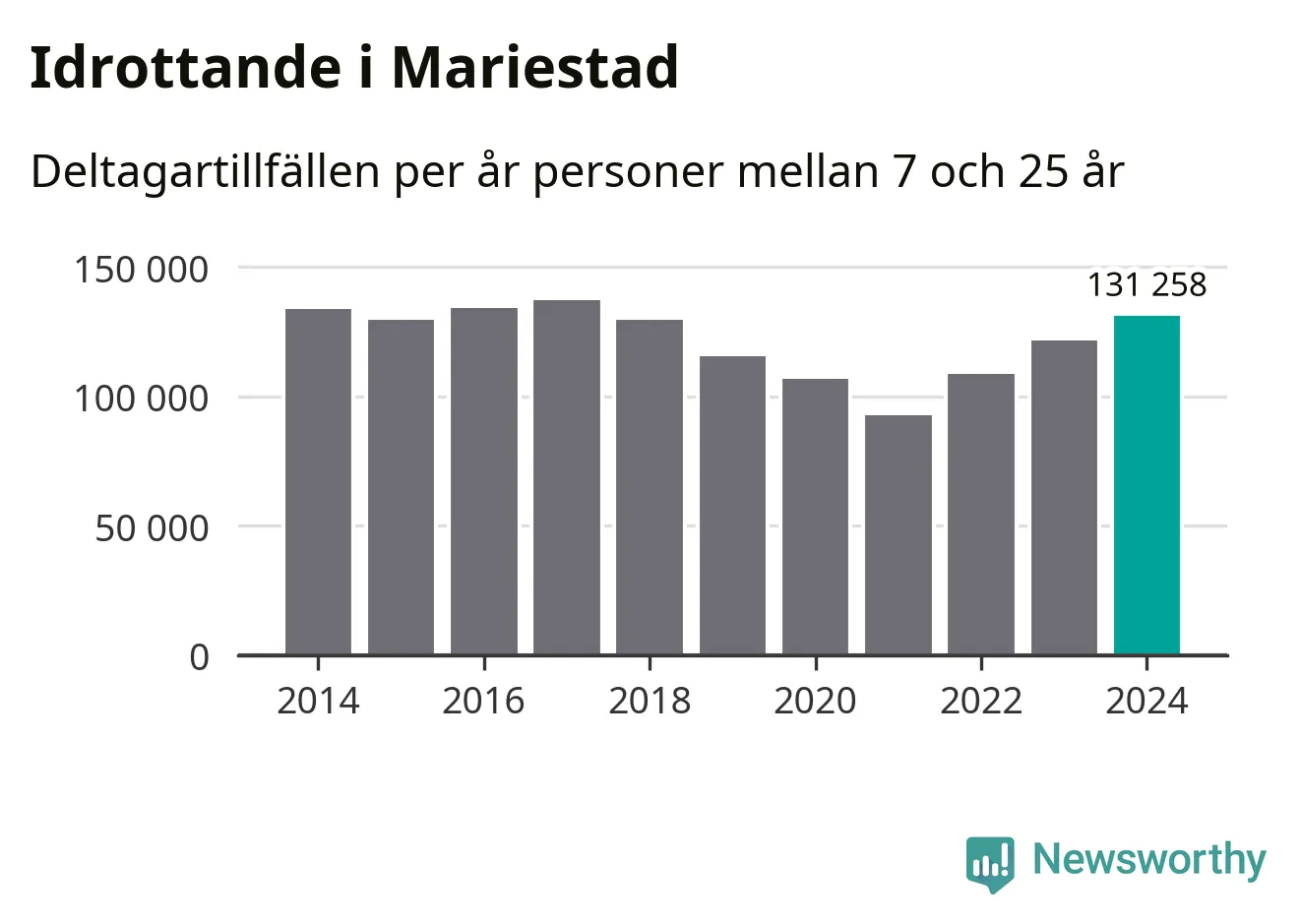 Ungdomsidrotten fortsatte att växa i Mariestad under 2024, visar nya siffror från Riksidrottsförbundet. Antalet deltagartillfällen var det högsta sedan 2017.