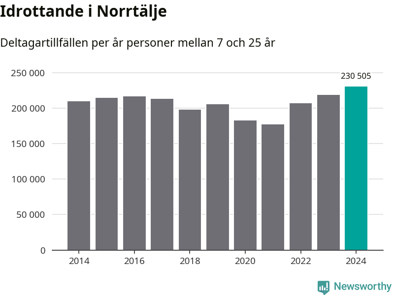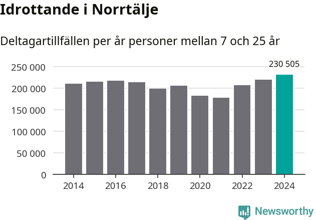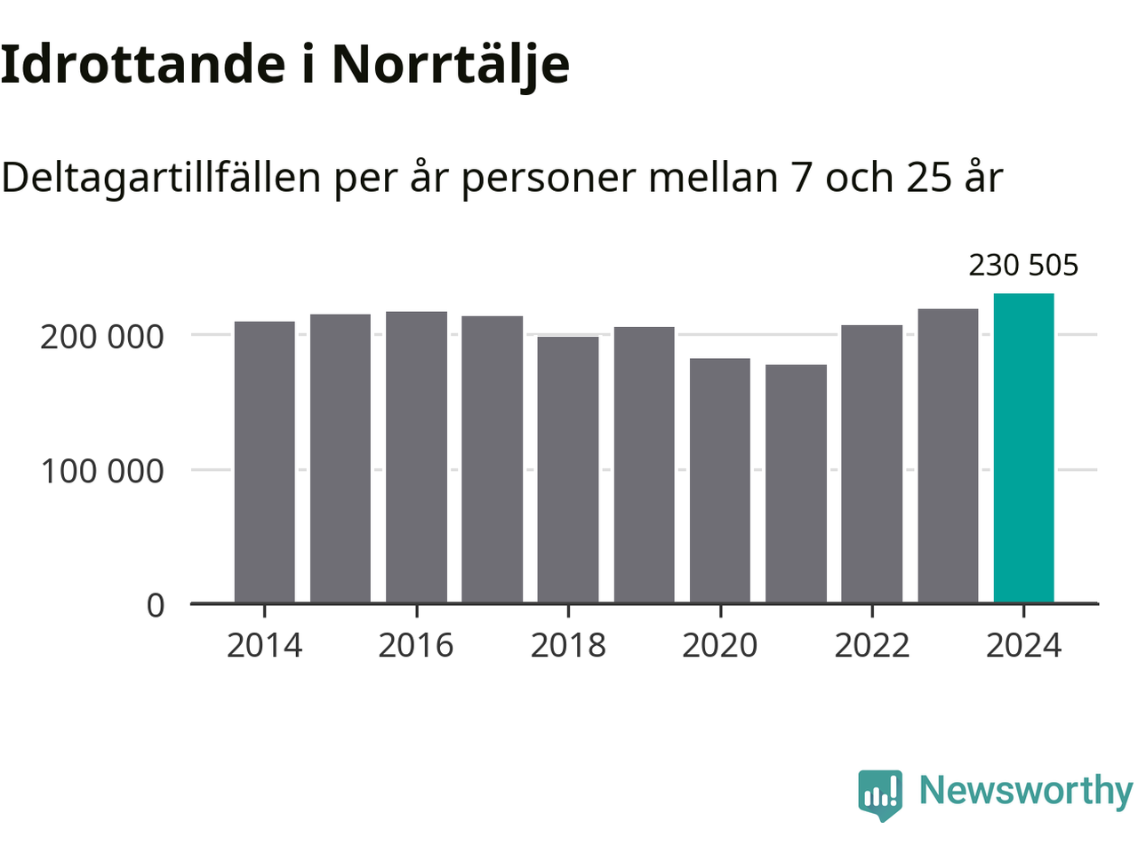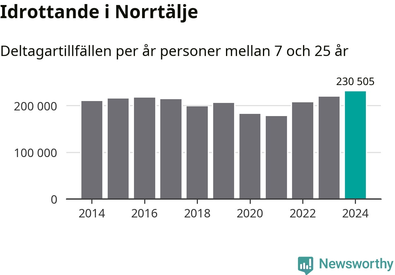 De 231 000 deltagartillfällen innebär att varje invånare i Norrtälje mellan 7 och 25 år i snitt deltog i 19 träningar, matcher eller turneringar under 2024. Det är den näst lägsta siffran i Stockholms län. Flest deltagartillfällen per invånare i Stockholms län hade Danderyds kommun med 51 deltagartillfällen per invånare. I andra änden av listan finns Upplands-Bro kommun, 17 deltagartillfällen per invånare. Värt att nämna är att deltagartillfällena räknas i den kommun föreningen finns, det kan alltså vara ungdomar från en annan kommun som deltar.