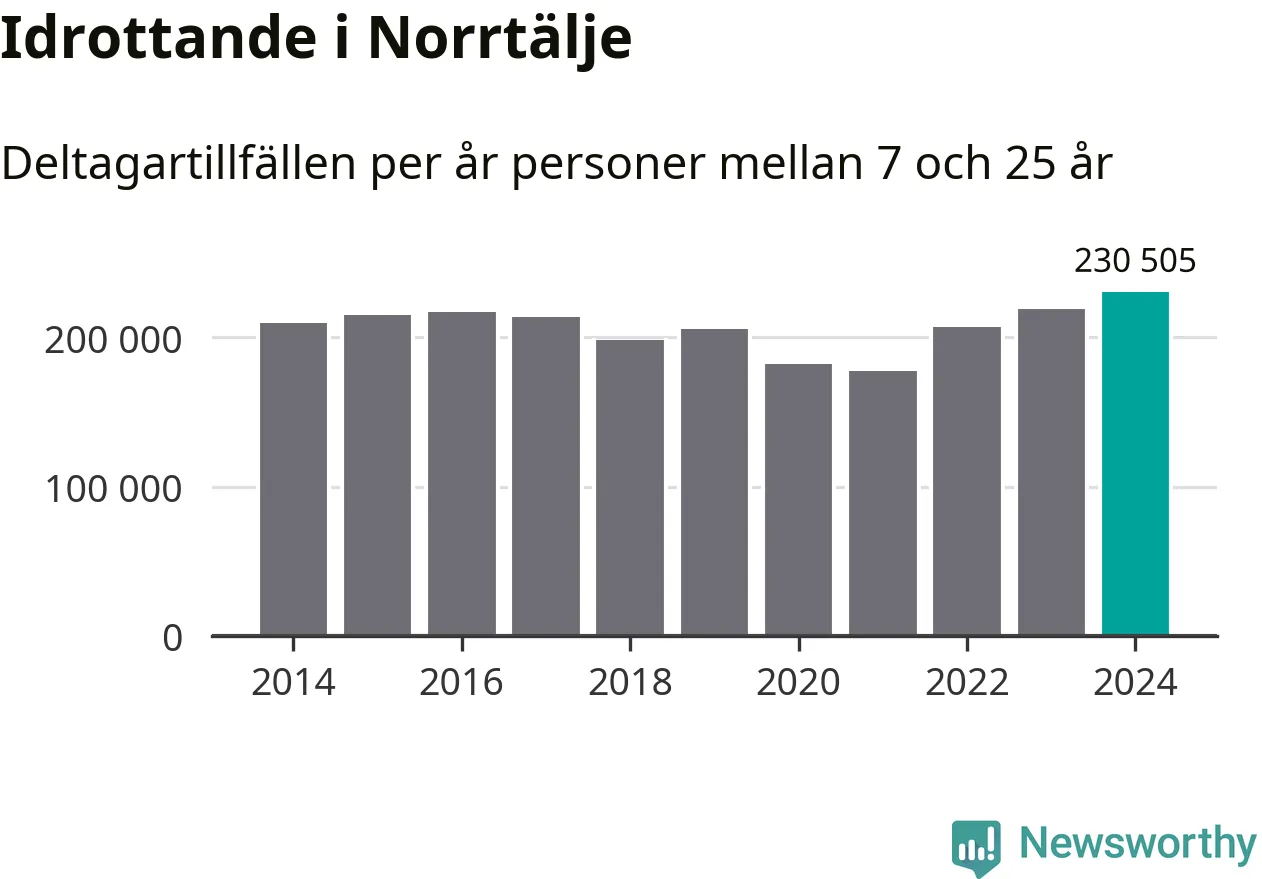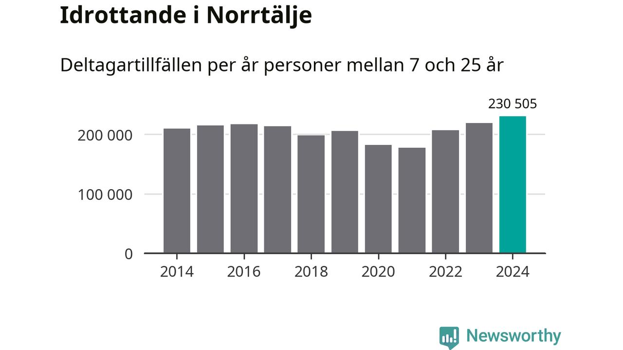 För tredje året i rad ökade aktiviteten inom ungdomsidrotten i Norrtälje under 2024. Det visar nya siffror om utbetalt Lok-stöd, som delas ut till föreningar anslutna till Riksidrottsförbundet specialidrottsförbund. Stödet riktar sig till föreningar som bedriver verksamhet för deltagare i åldern 7-25 år. Under året rapporterade föreningarna i Norrtälje runt 231 000 deltagartillfällen, vilket är en ökning med fem procent jämfört med 2023, och den högsta siffran i kommunen sedan åtminstone 2014. I riket som helhet ökade antalet deltagartillfällen med fem procent under 2024.