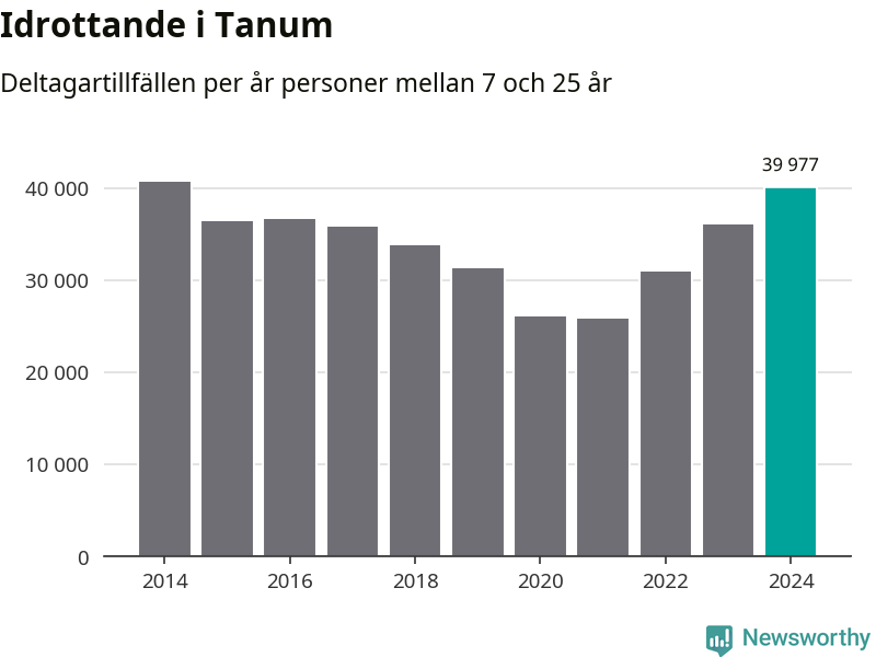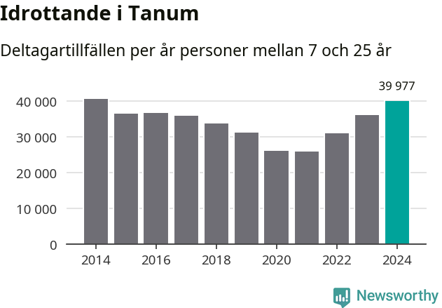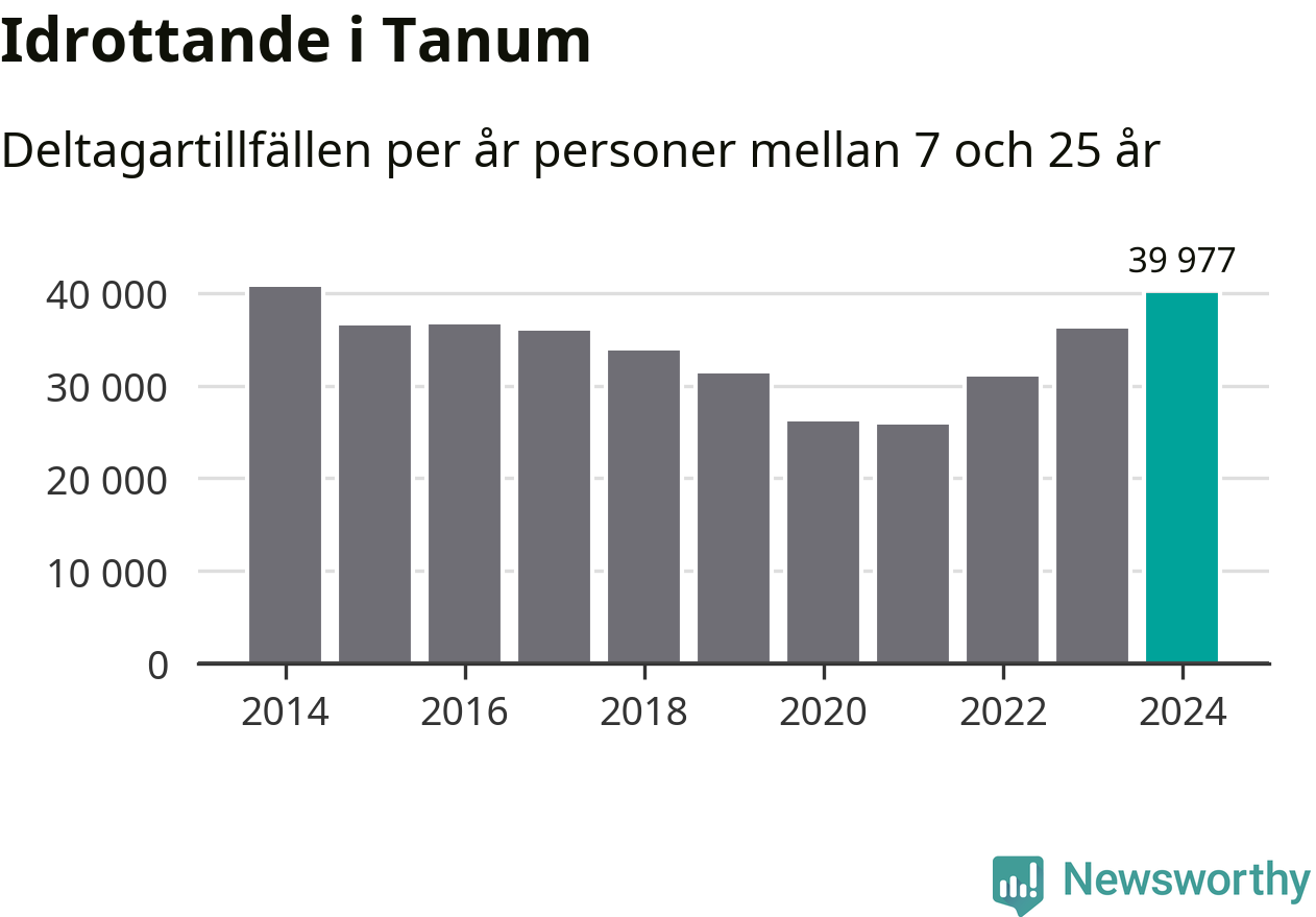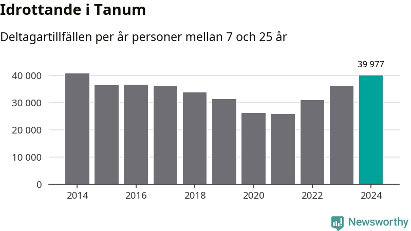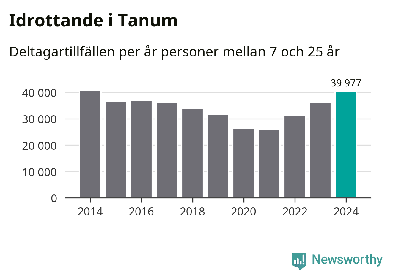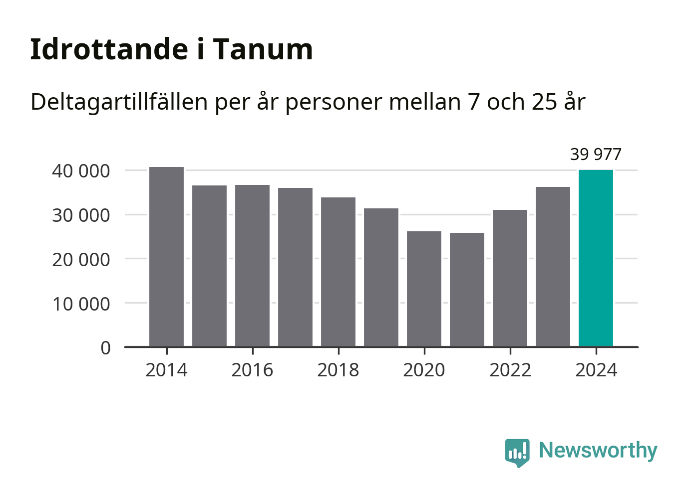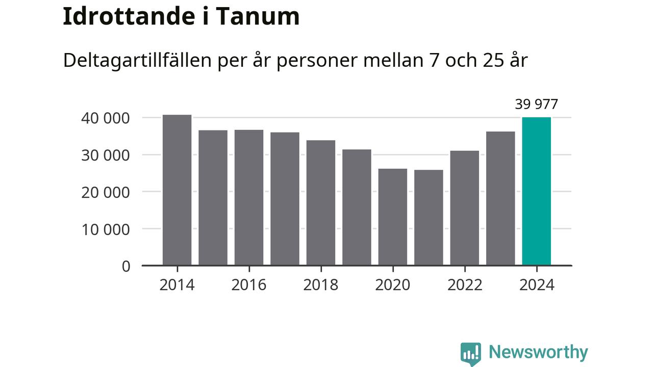 För tredje året i rad ökade aktiviteten inom ungdomsidrotten i Tanum under 2024. Det visar nya siffror om utbetalt Lok-stöd, som delas ut till föreningar anslutna till Riksidrottsförbundet specialidrottsförbund. Stödet riktar sig till föreningar som bedriver verksamhet för deltagare i åldern 7-25 år. Under året rapporterade föreningarna i Tanum runt 40 000 deltagartillfällen, vilket är en ökning med elva procent jämfört med 2023 och den högsta siffran i kommunen sedan 2014. I riket som helhet ökade antalet deltagartillfällen med fem procent under 2024.