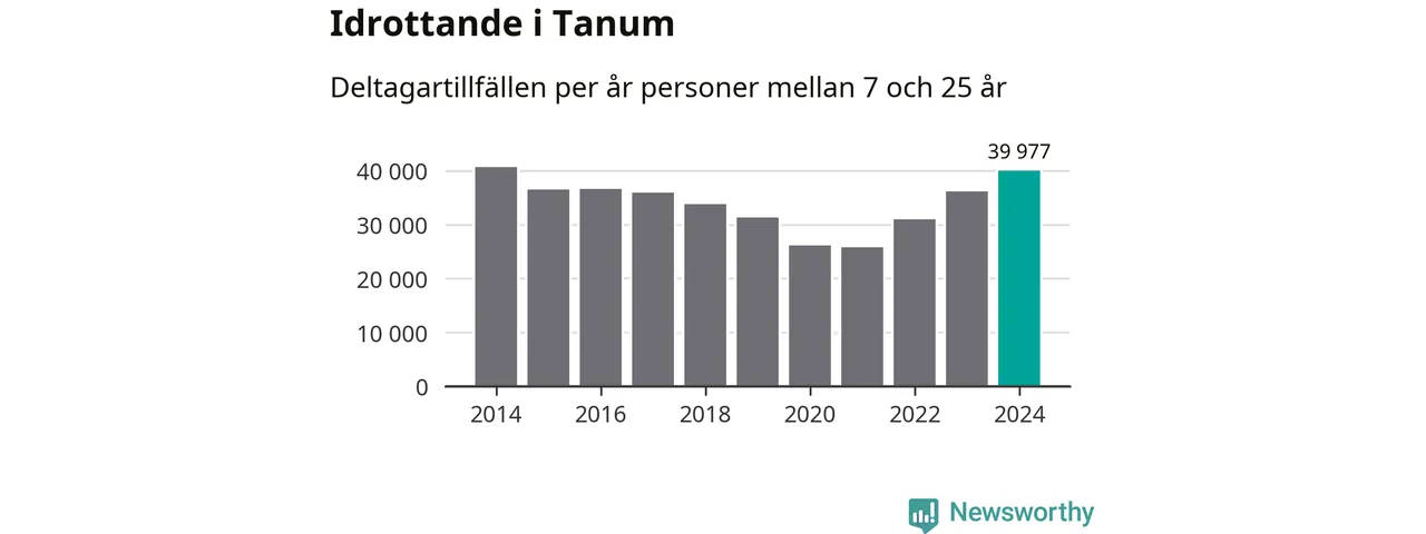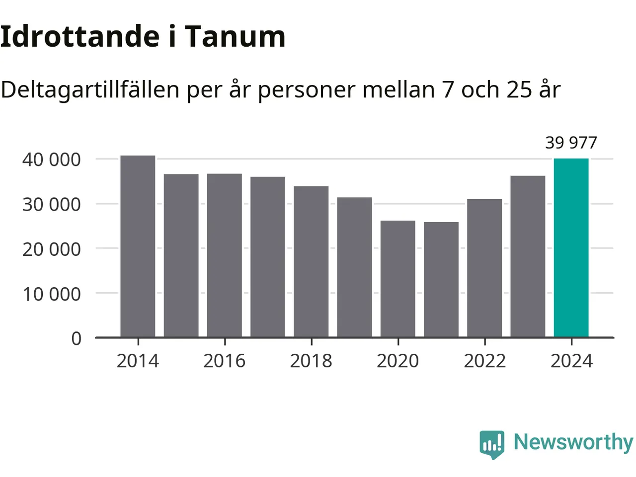 De 40 000 deltagartillfällen innebär att varje invånare i Tanum mellan 7 och 25 år i snitt deltog i 17 träningar, matcher eller turneringar under 2024. Flest deltagartillfällen per invånare i Västra Götaland hade Partille kommun med 39 deltagartillfällen per invånare. I andra änden av listan finns Svenljunga kommun, 11 deltagartillfällen per invånare. Värt att nämna är att deltagartillfällena räknas i den kommun föreningen finns, det kan alltså vara ungdomar från en annan kommun som deltar.