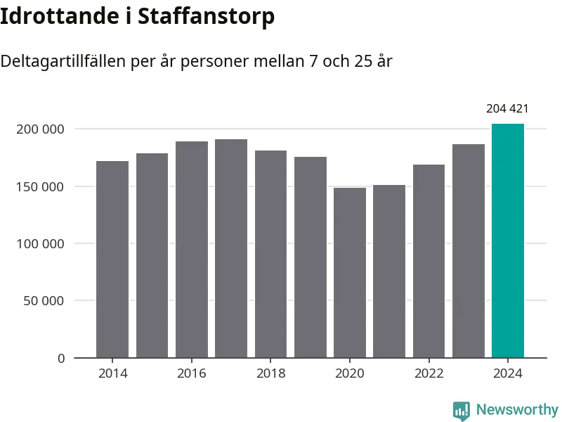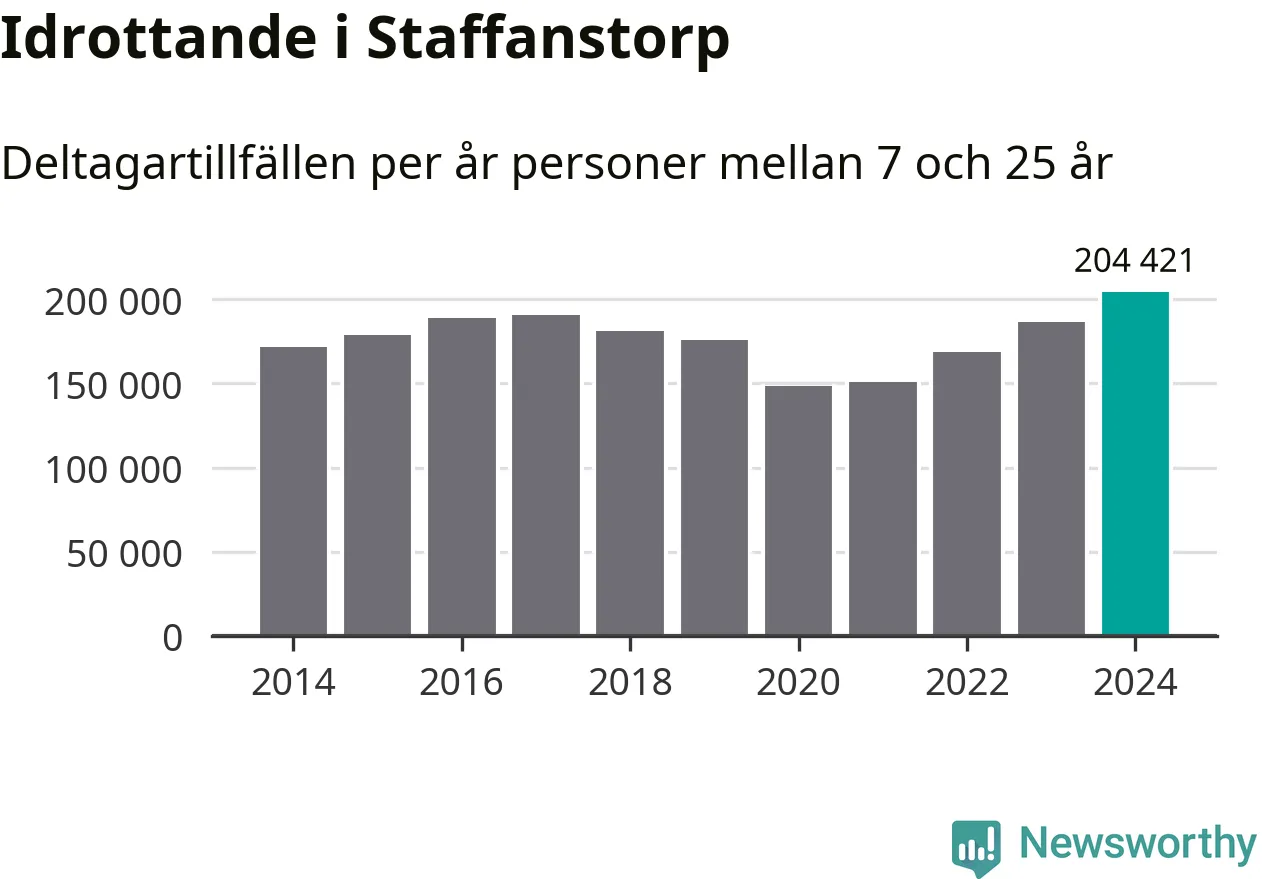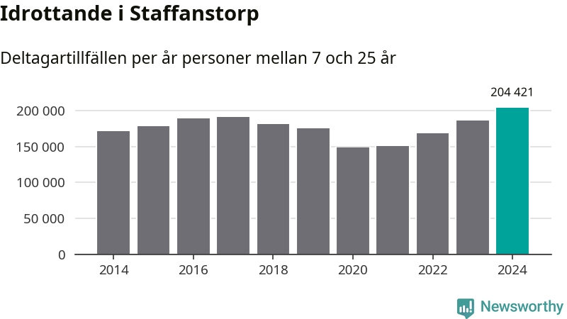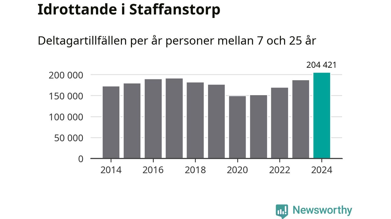 För tredje året i rad ökade aktiviteten inom ungdomsidrotten i Staffanstorp under 2024. Det visar nya siffror om utbetalt Lok-stöd, som delas ut till föreningar anslutna till Riksidrottsförbundet specialidrottsförbund. Stödet riktar sig till föreningar som bedriver verksamhet för deltagare i åldern 7-25 år. Under året rapporterade föreningarna i Staffanstorp runt 204 000 deltagartillfällen, vilket är en ökning med tio procent jämfört med 2023, och den högsta siffran i kommunen sedan åtminstone 2014. I riket som helhet ökade antalet deltagartillfällen med fem procent under 2024.