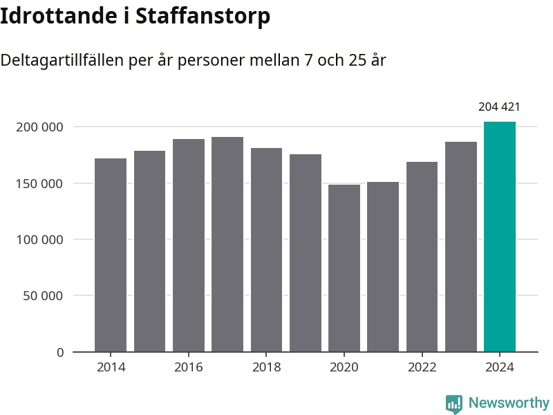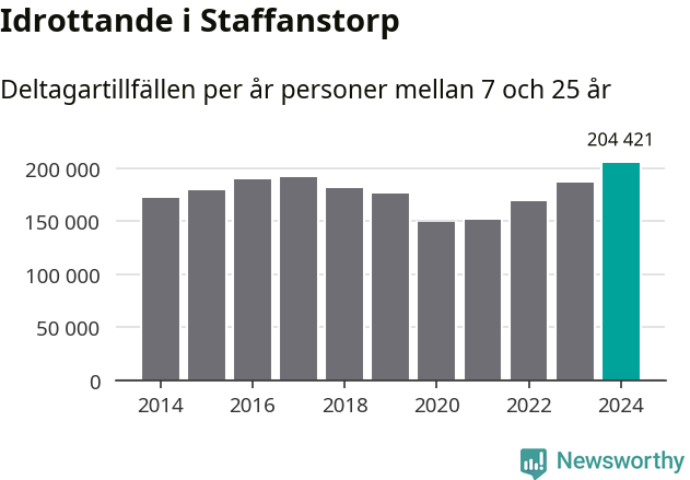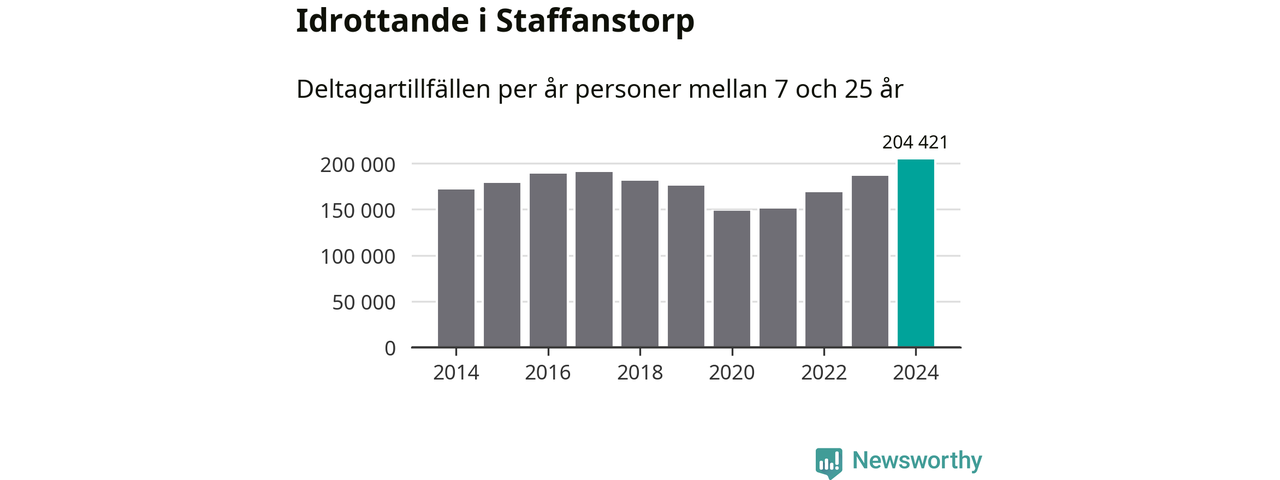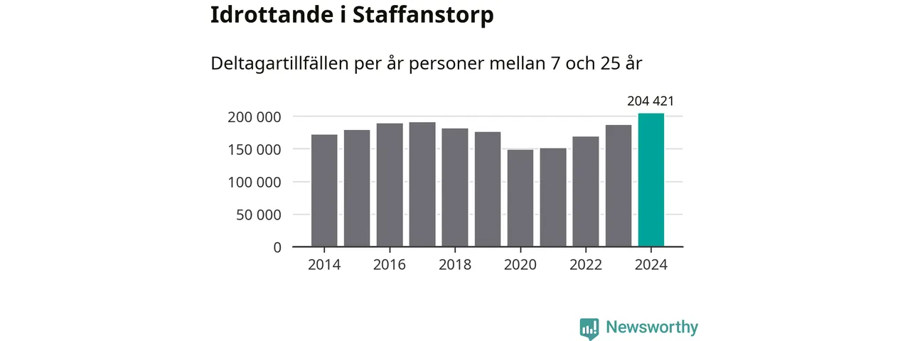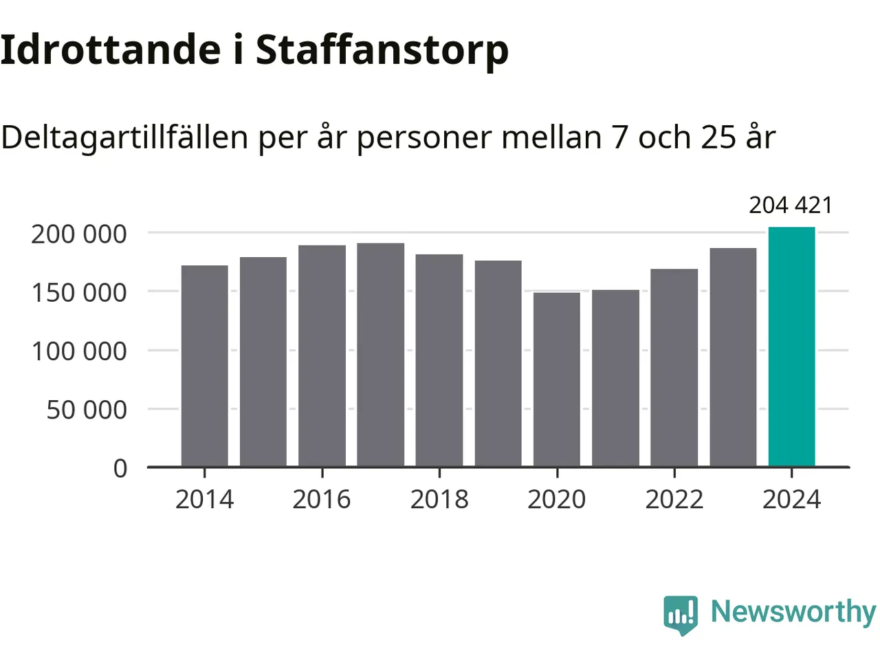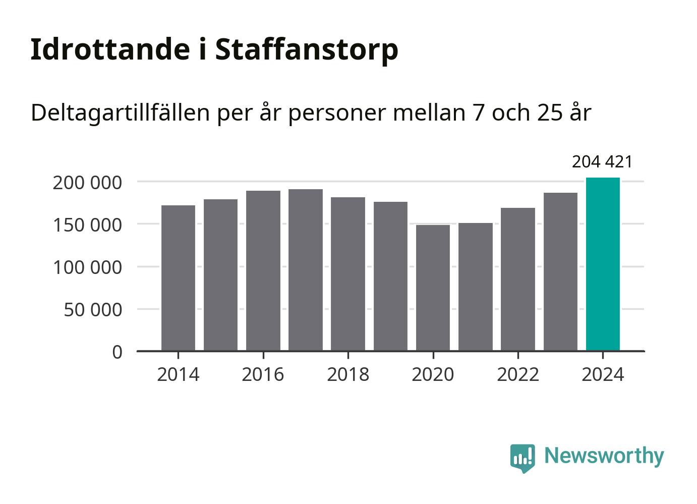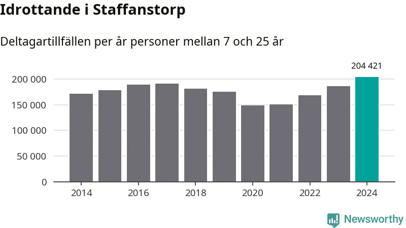 De 204 000 deltagartillfällen innebär att varje invånare i Staffanstorp mellan 7 och 25 år i snitt deltog i 31 träningar, matcher eller turneringar under 2024. Det är en relativt hög siffra, nationellt sett. Flest deltagartillfällen per invånare i Skåne hade Lomma kommun med 46 deltagartillfällen per invånare. I andra änden av listan finns Perstorps kommun, 12 deltagartillfällen per invånare. Värt att nämna är att deltagartillfällena räknas i den kommun föreningen finns, det kan alltså vara ungdomar från en annan kommun som deltar.