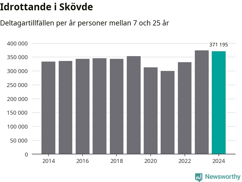 Idrottande Skövdeungdomar registrerades för omkring 371 000 deltagartillfällen under 2024. Det är något färre än året innan. Det visar nya siffror om utbetalt Lok-stöd, som delas ut till föreningar anslutna till Riksidrottsförbundet specialidrottsförbund. Stödet riktar sig till föreningar som bedriver verksamhet för deltagare i åldern 7-25 år. I riket som helhet ökade antalet deltagartillfällen med fem procent under 2024.
