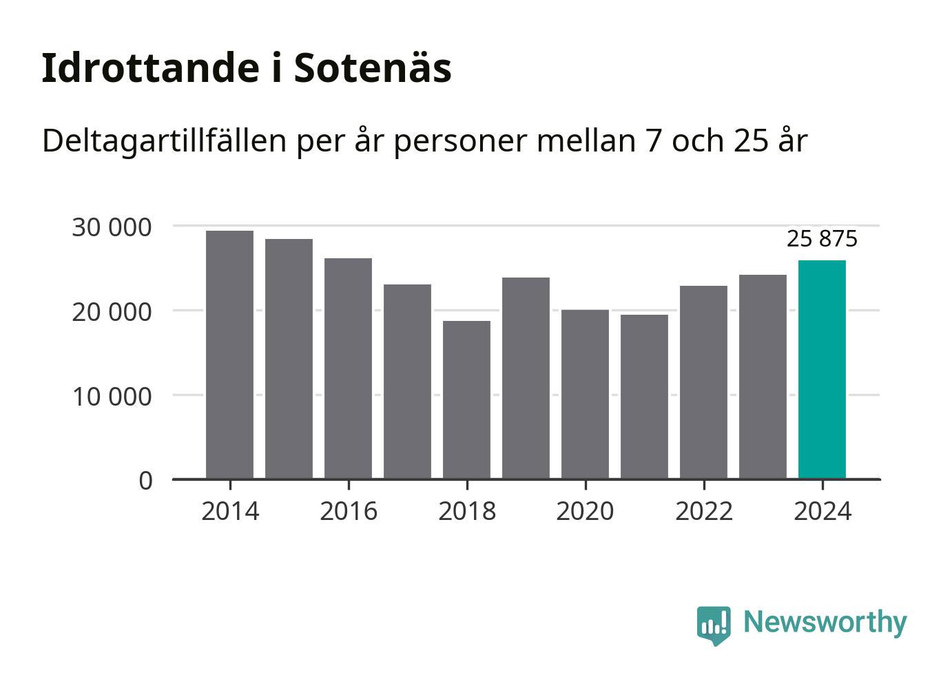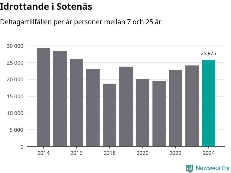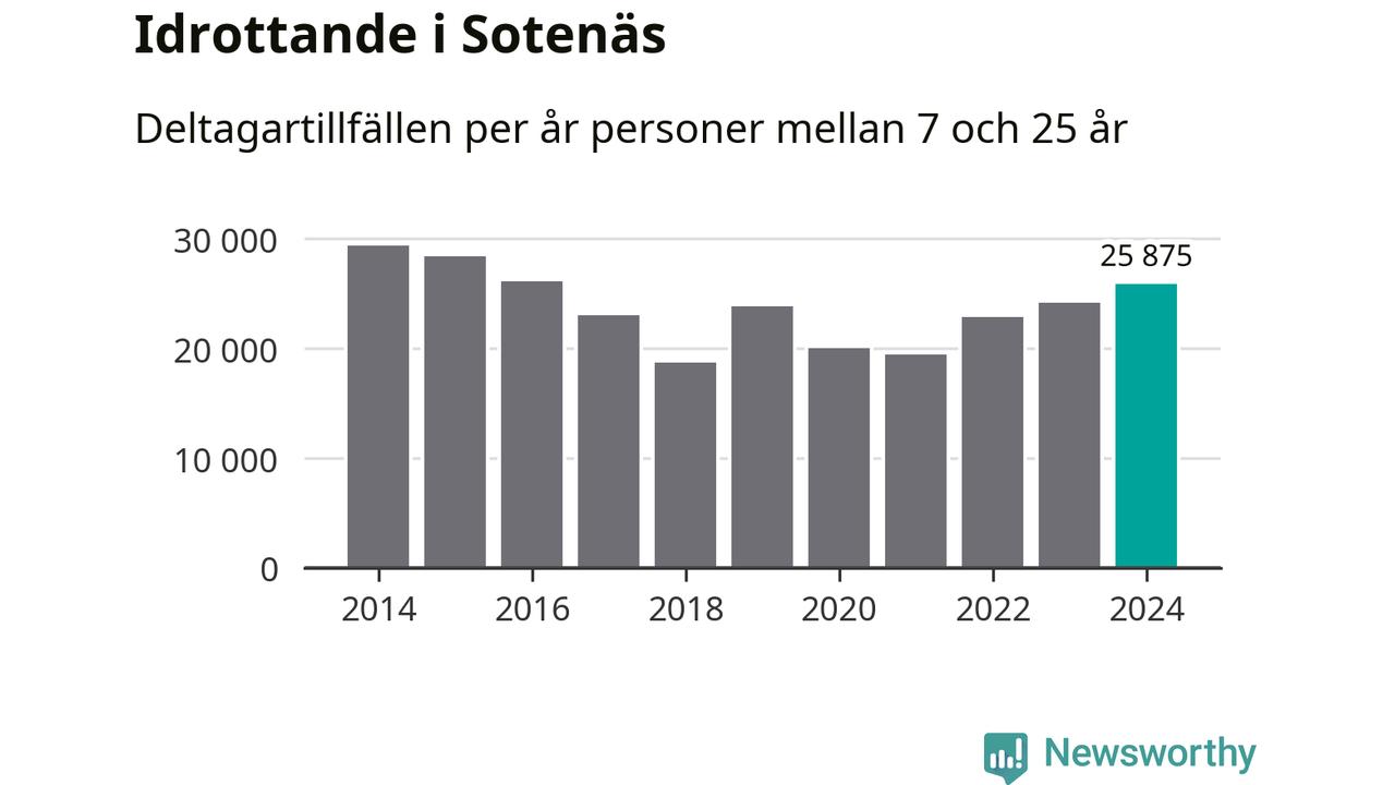 De 26 000 deltagartillfällen innebär att varje invånare i Sotenäs mellan 7 och 25 år i snitt deltog i 19 träningar, matcher eller turneringar under 2024. Flest deltagartillfällen per invånare i Västra Götaland hade Partille kommun med 39 deltagartillfällen per invånare. I andra änden av listan finns Svenljunga kommun, 11 deltagartillfällen per invånare. Värt att nämna är att deltagartillfällena räknas i den kommun föreningen finns, det kan alltså vara ungdomar från en annan kommun som deltar.