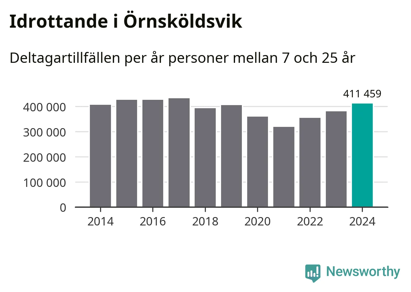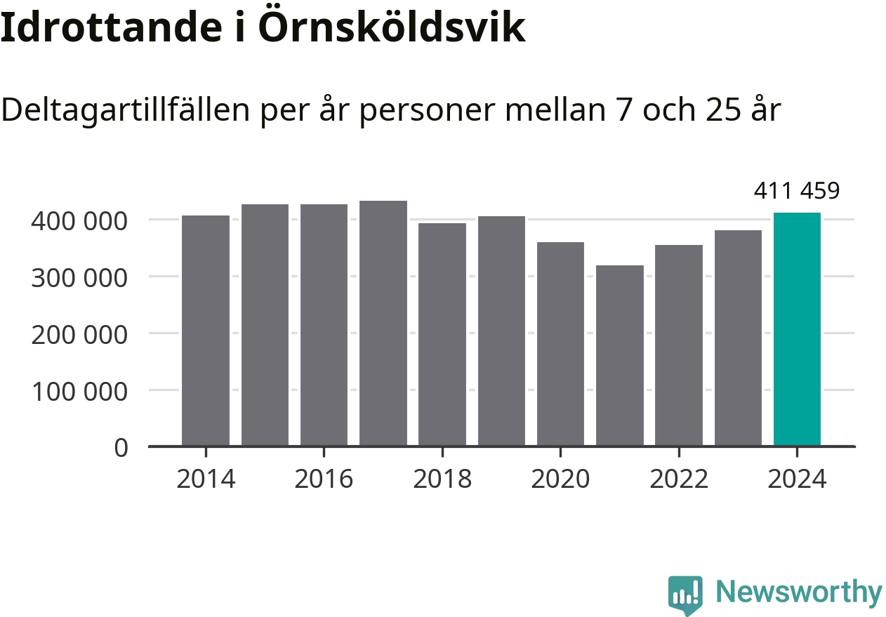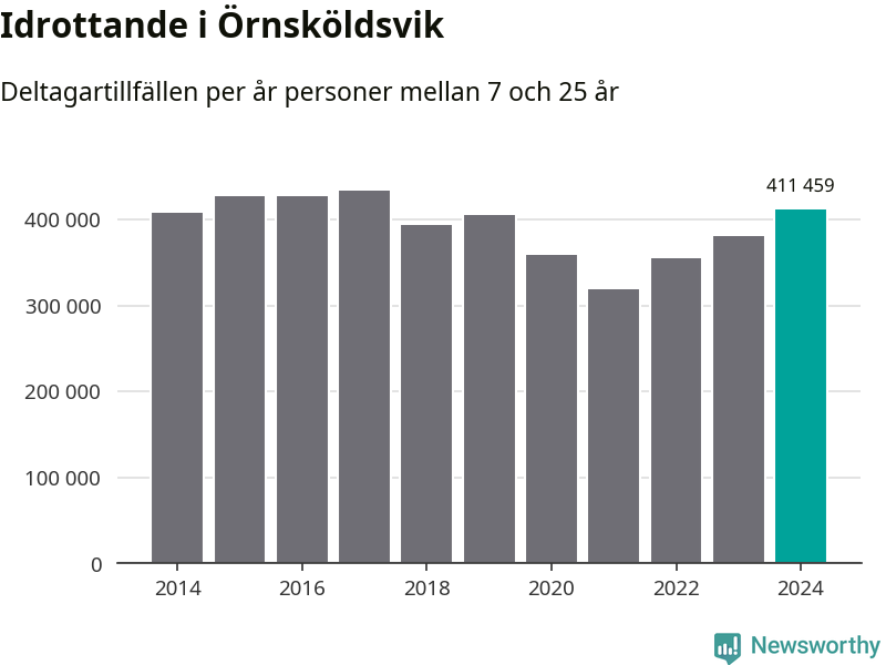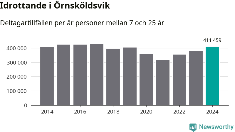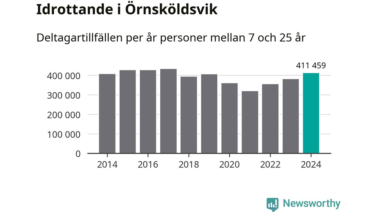 De 411 000 deltagartillfällen innebär att varje invånare i Örnsköldsvik mellan 7 och 25 år i snitt deltog i 36 träningar, matcher eller turneringar under 2024. Det är den högsta siffran i Västernorrland. Minst deltagartillfällen per invånare i länet hade Kramfors kommun med 20 deltagartillfällen per invånare. Värt att nämna är att deltagartillfällena räknas i den kommun föreningen finns, det kan alltså vara ungdomar från en annan kommun som deltar.