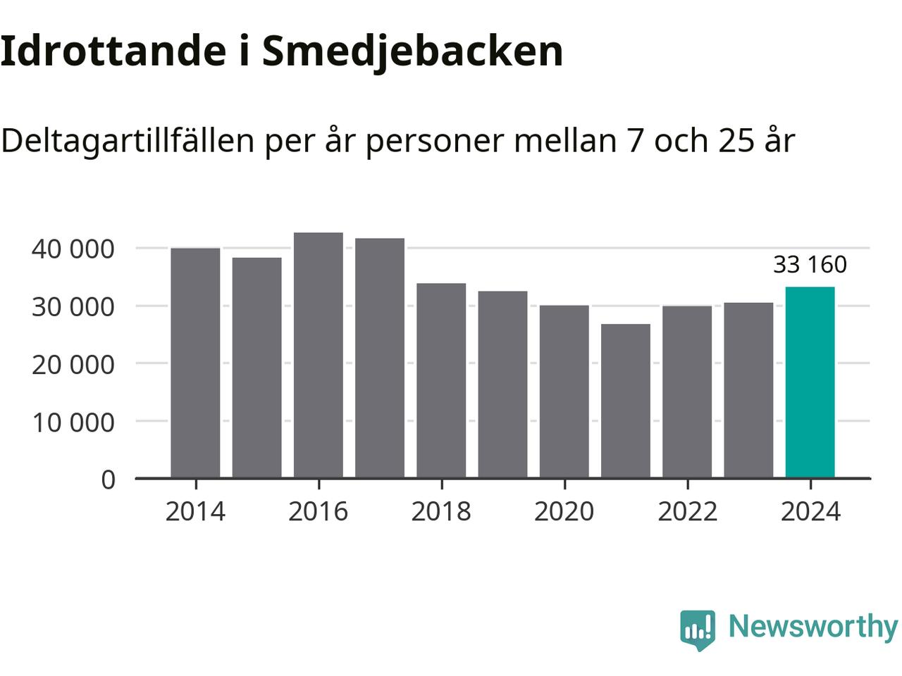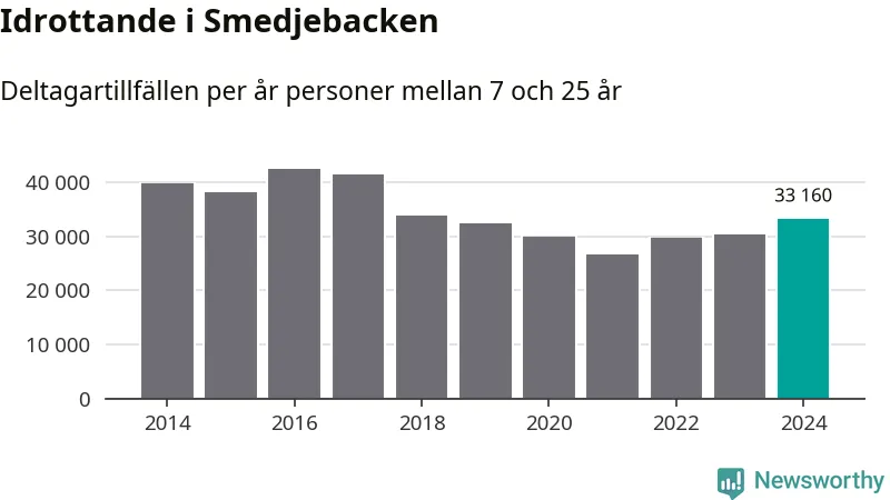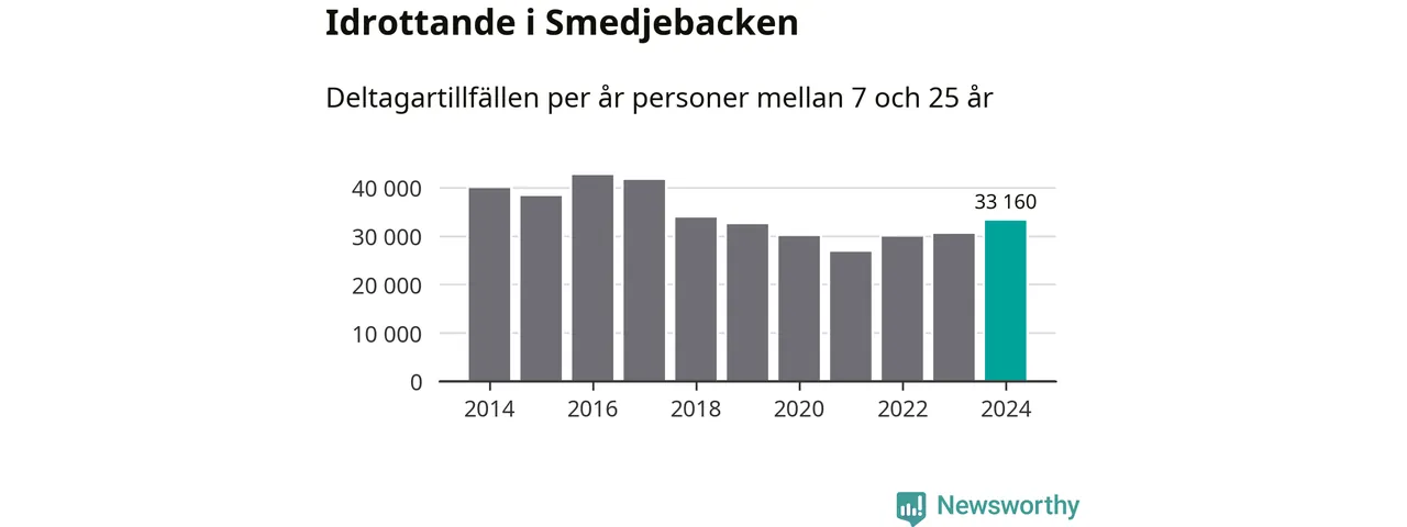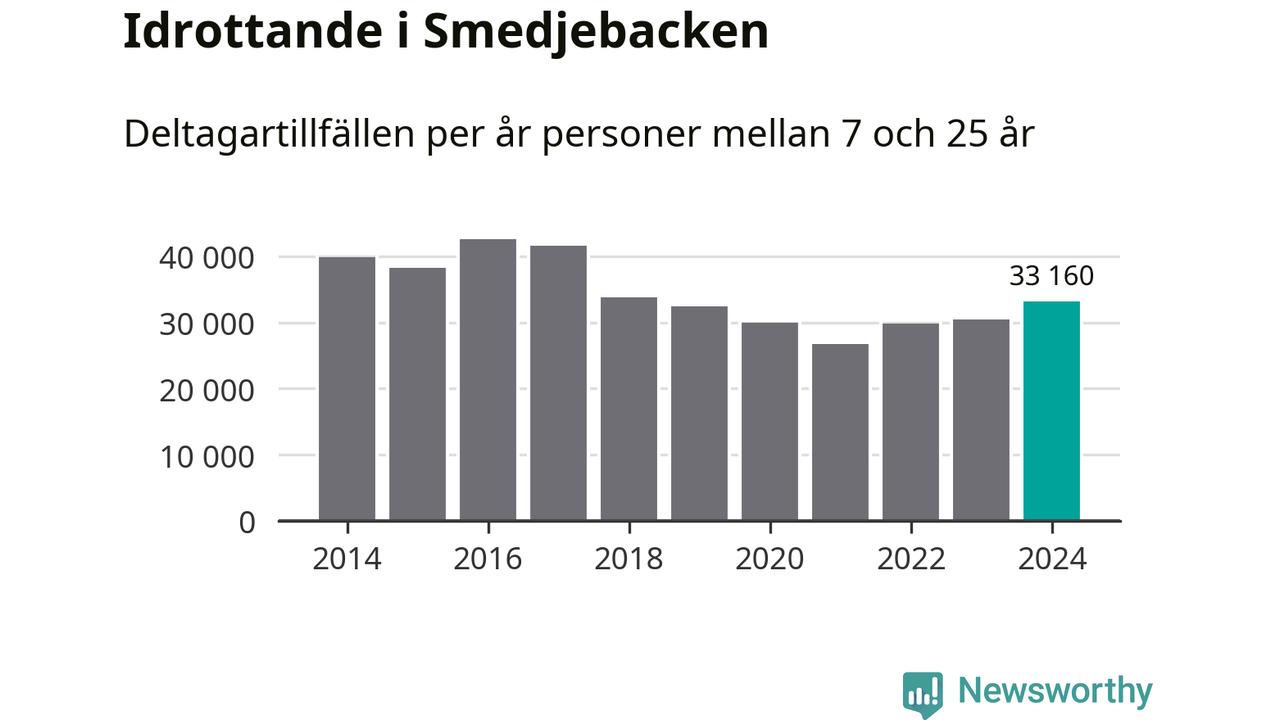 För tredje året i rad ökade aktiviteten inom ungdomsidrotten i Smedjebacken under 2024. Det visar nya siffror om utbetalt Lok-stöd, som delas ut till föreningar anslutna till Riksidrottsförbundet specialidrottsförbund. Stödet riktar sig till föreningar som bedriver verksamhet för deltagare i åldern 7-25 år. Under året rapporterade föreningarna i Smedjebacken runt 33 000 deltagartillfällen, vilket är en ökning med nio procent jämfört med 2023. I riket som helhet ökade antalet deltagartillfällen med fem procent under 2024.