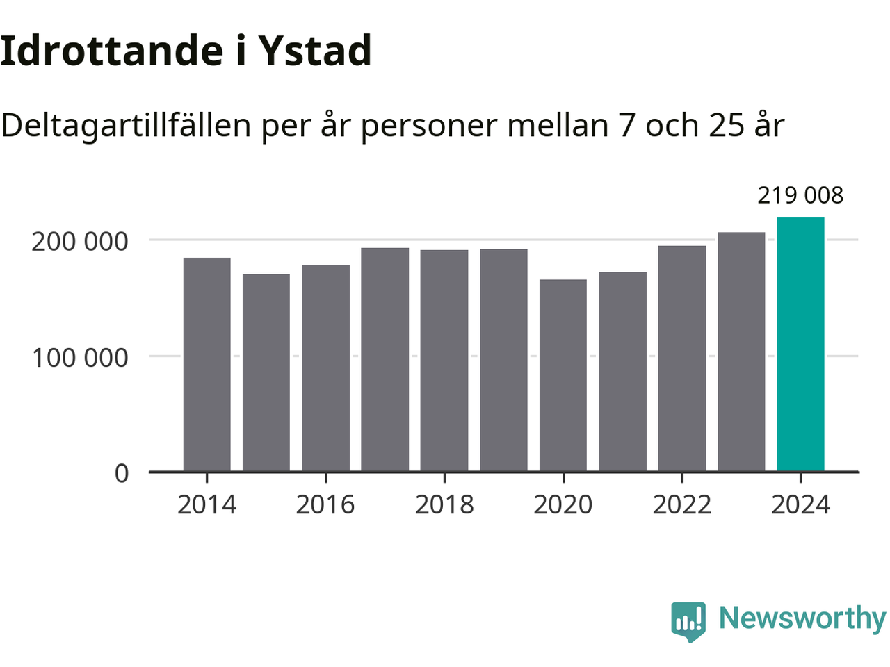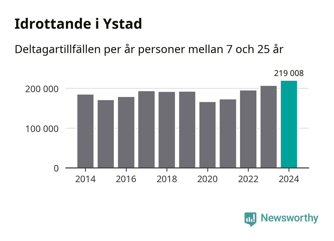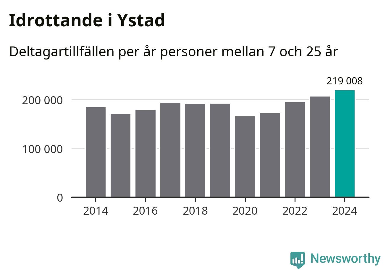 För fjärde året i rad ökade aktiviteten inom ungdomsidrotten i Ystad under 2024. Det visar nya siffror om utbetalt Lok-stöd, som delas ut till föreningar anslutna till Riksidrottsförbundet specialidrottsförbund. Stödet riktar sig till föreningar som bedriver verksamhet för deltagare i åldern 7-25 år. Under året rapporterade föreningarna i Ystad runt 219 000 deltagartillfällen, vilket är en ökning med sex procent jämfört med 2023, och den högsta siffran i kommunen sedan åtminstone 2014. I riket som helhet ökade antalet deltagartillfällen med fem procent under 2024.