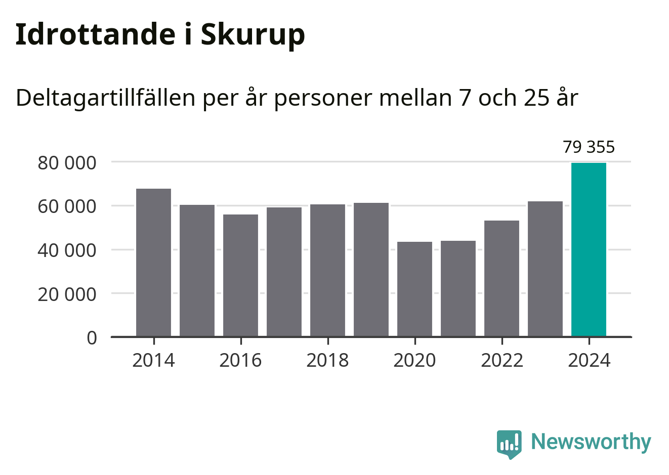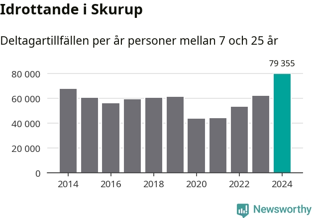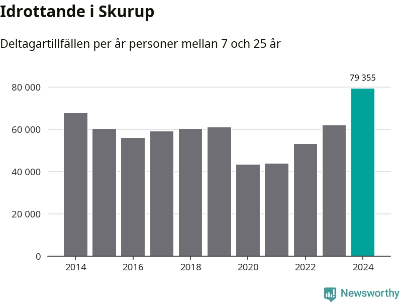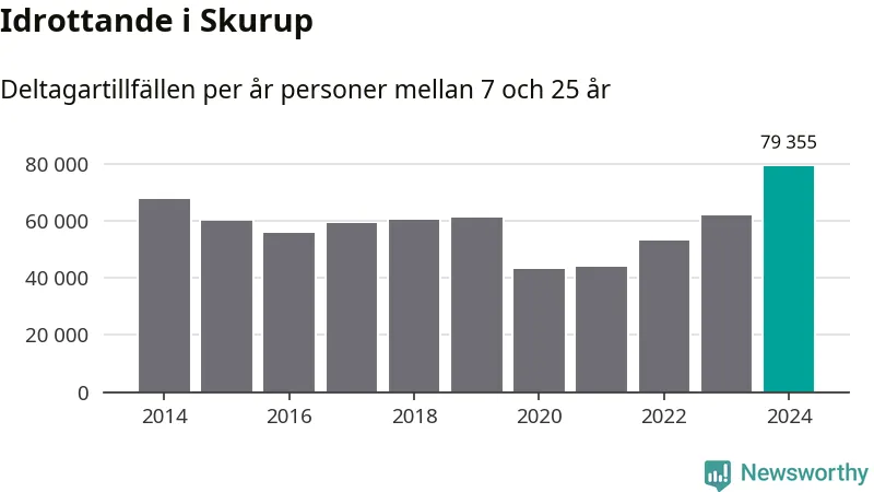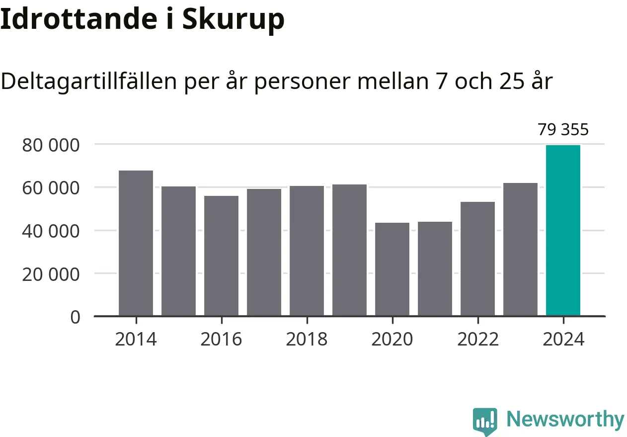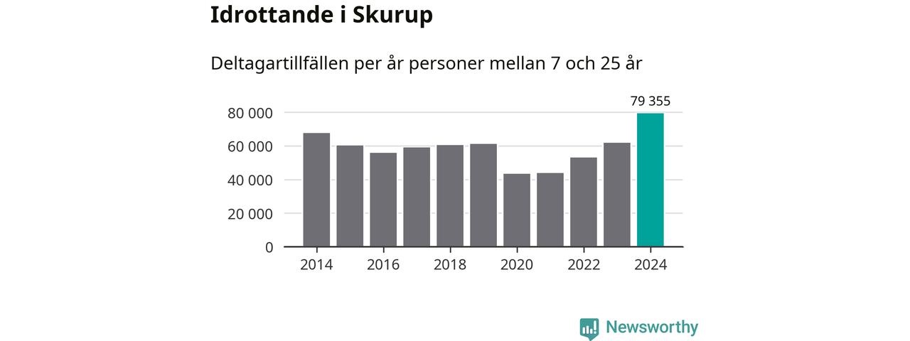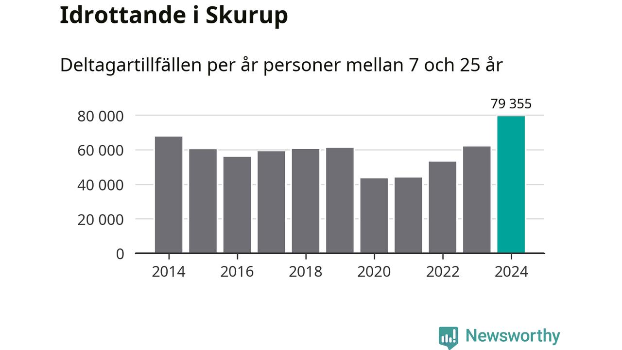 För tredje året i rad ökade aktiviteten inom ungdomsidrotten i Skurup under 2024. Det visar nya siffror om utbetalt Lok-stöd, som delas ut till föreningar anslutna till Riksidrottsförbundet specialidrottsförbund. Stödet riktar sig till föreningar som bedriver verksamhet för deltagare i åldern 7-25 år. Under året rapporterade föreningarna i Skurup runt 79 000 deltagartillfällen, vilket är en ökning med 28 procent jämfört med 2023, och den högsta siffran i kommunen sedan åtminstone 2014. I riket som helhet ökade antalet deltagartillfällen med fem procent under 2024.