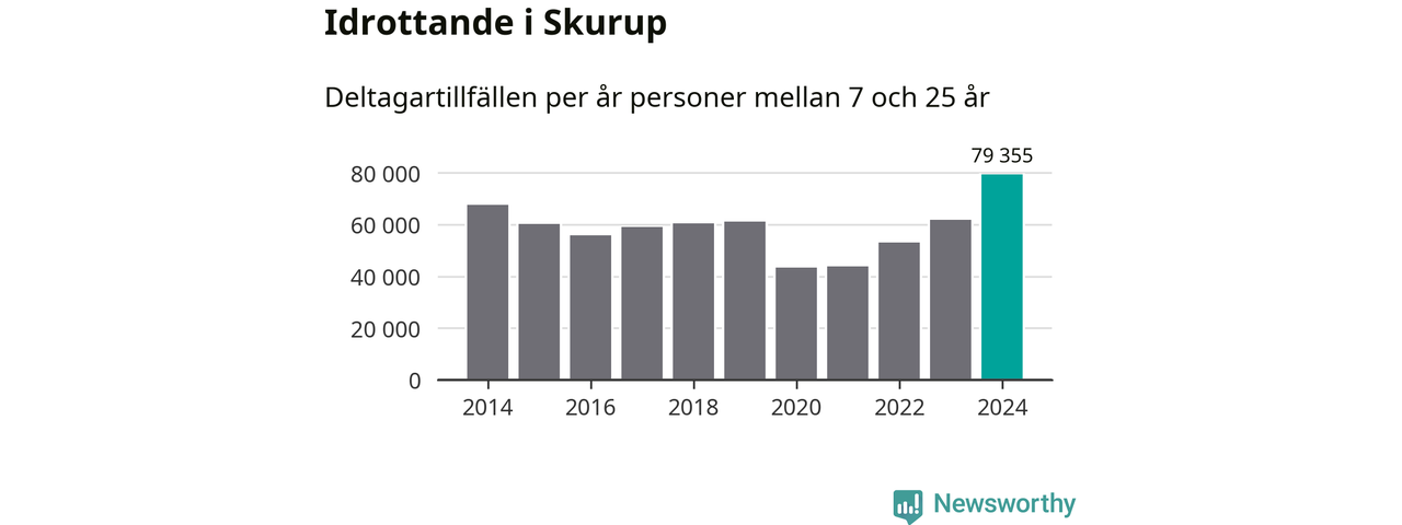 De 79 000 deltagartillfällen innebär att varje invånare i Skurup mellan 7 och 25 år i snitt deltog i 22 träningar, matcher eller turneringar under 2024. Flest deltagartillfällen per invånare i Skåne hade Lomma kommun med 46 deltagartillfällen per invånare. I andra änden av listan finns Perstorps kommun, 12 deltagartillfällen per invånare. Värt att nämna är att deltagartillfällena räknas i den kommun föreningen finns, det kan alltså vara ungdomar från en annan kommun som deltar.