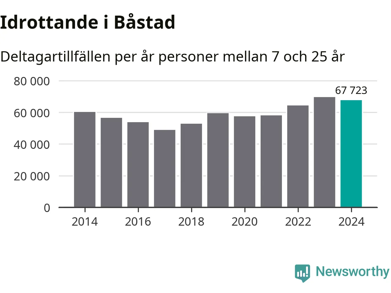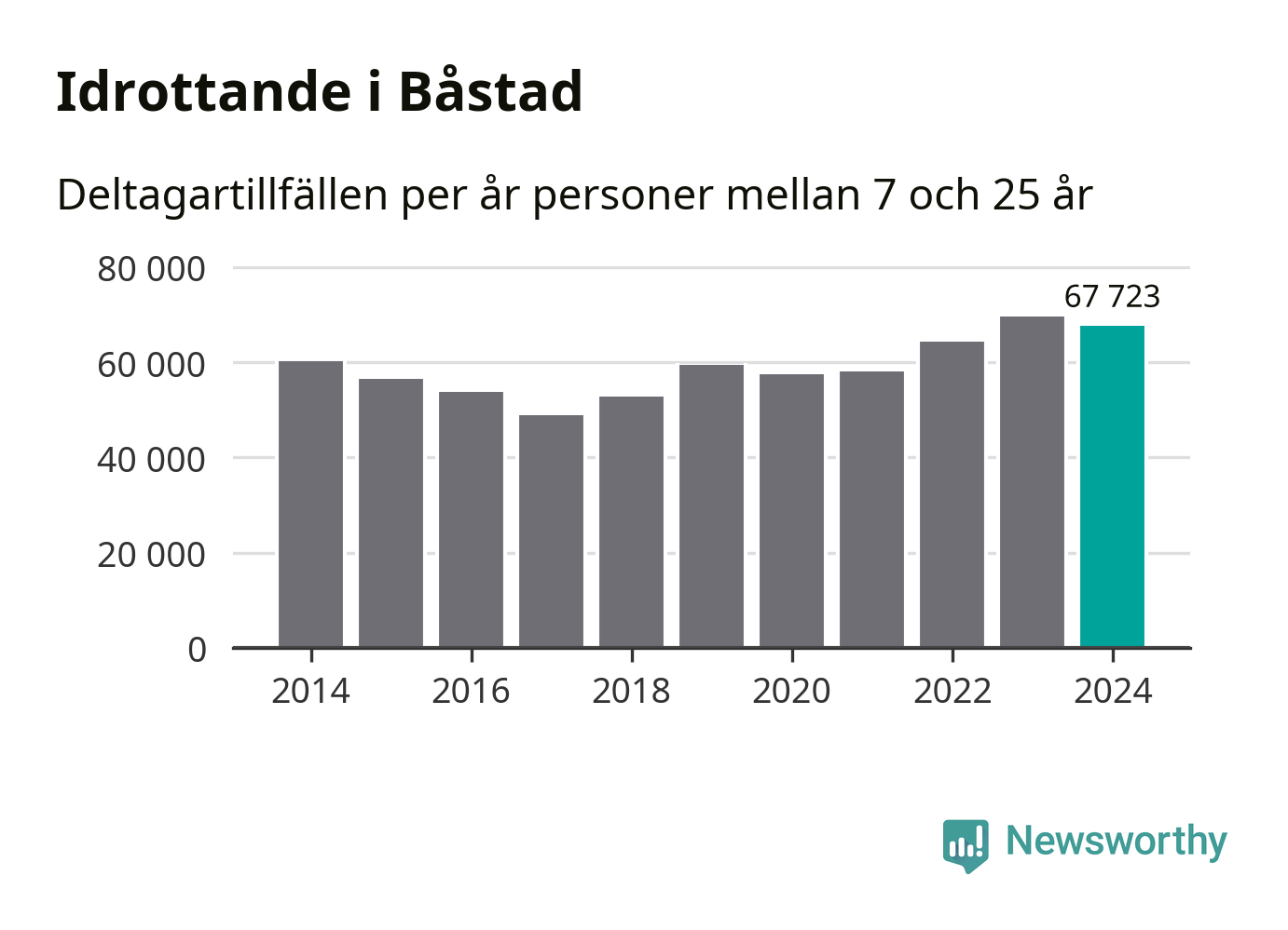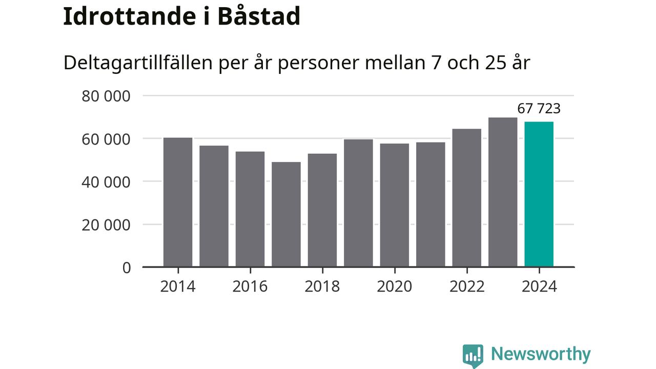 Båstads-ungdomarna idrottade mindre under 2024. Det visar nya siffror om utbetalt Lok-stöd, som delas ut till föreningar anslutna till Riksidrottsförbundet specialidrottsförbund. Stödet riktar sig till föreningar som bedriver verksamhet för deltagare i åldern 7-25 år. Under året rapporterade föreningarna i Båstad runt 68 000 deltagartillfällen, vilket är en minskning med tre procent jämfört med 2023. I riket som helhet ökade antalet deltagartillfällen med fem procent under 2024.