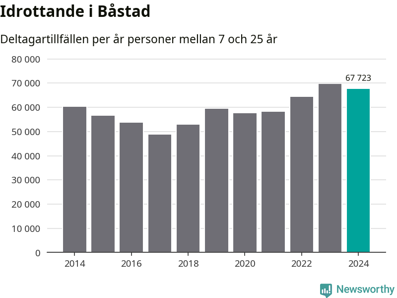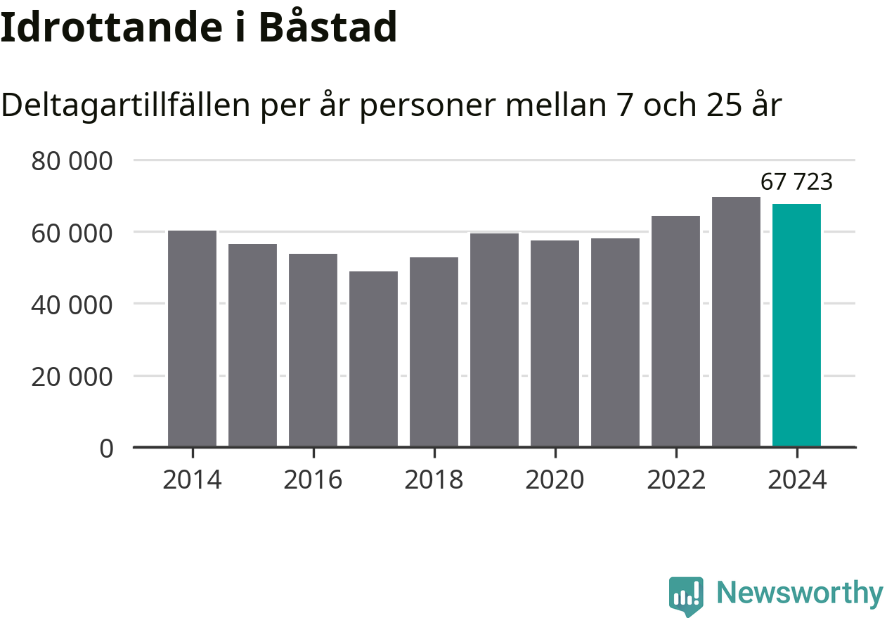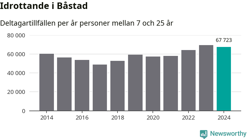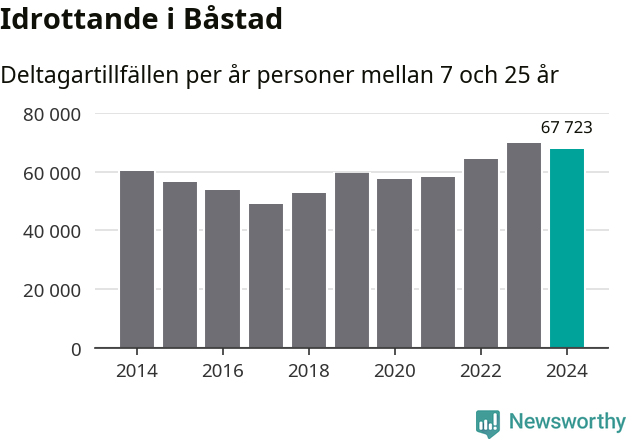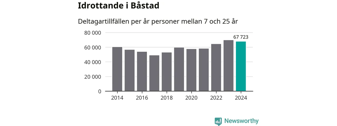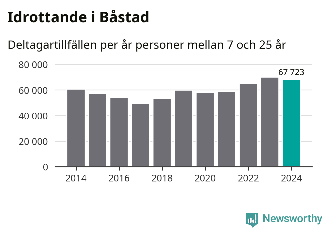 Båstads-ungdomarna idrottade mindre under 2024. Det visar nya siffror om utbetalt Lok-stöd, som delas ut till föreningar anslutna till Riksidrottsförbundet specialidrottsförbund. Stödet riktar sig till föreningar som bedriver verksamhet för deltagare i åldern 7-25 år. Under året rapporterade föreningarna i Båstad runt 68 000 deltagartillfällen, vilket är en minskning med tre procent jämfört med 2023. I riket som helhet ökade antalet deltagartillfällen med fem procent under 2024.