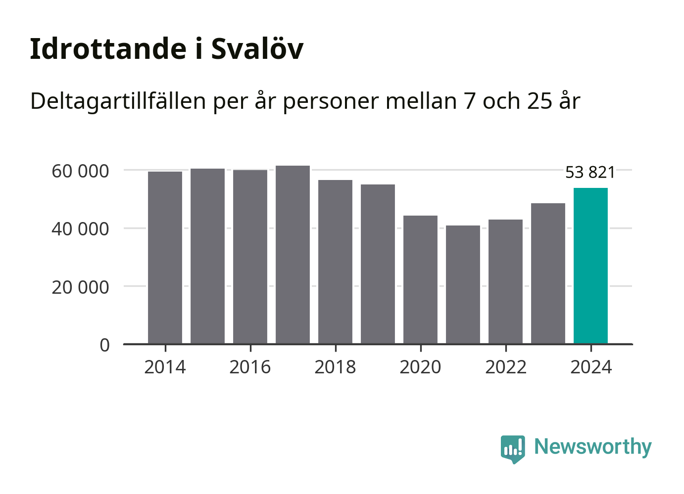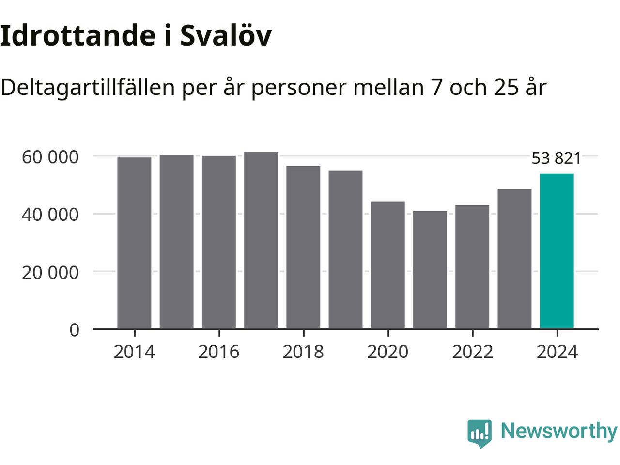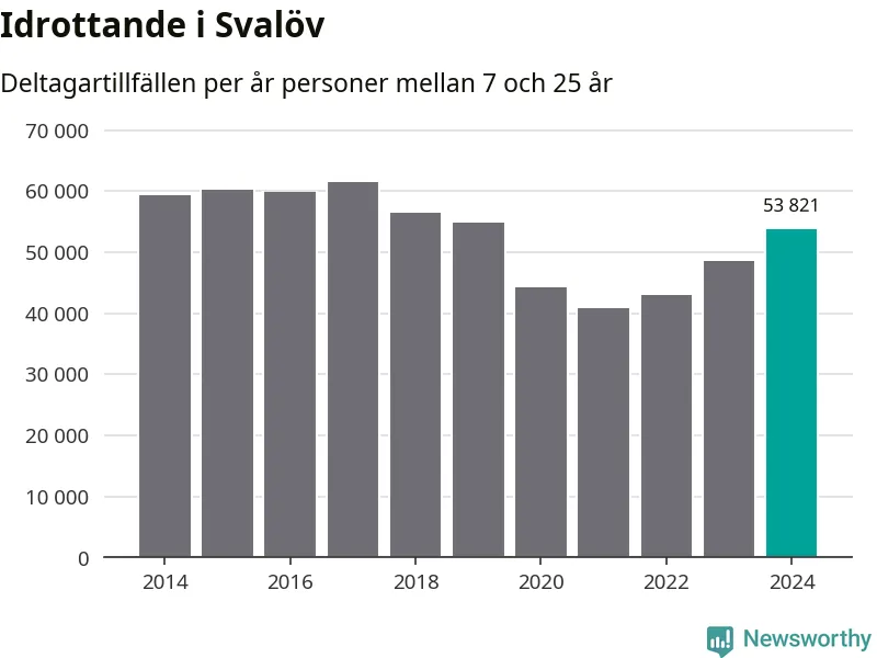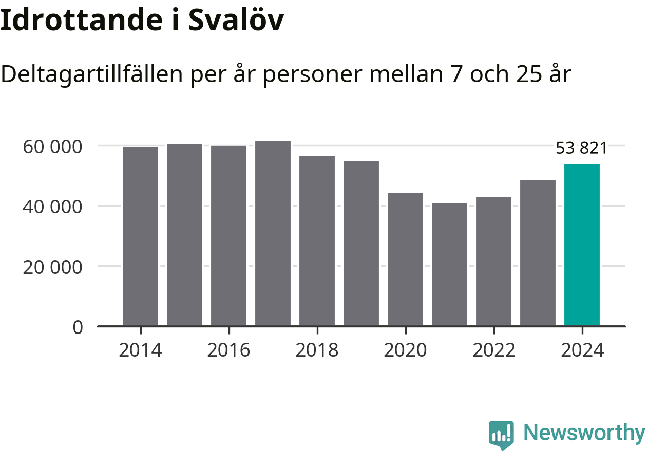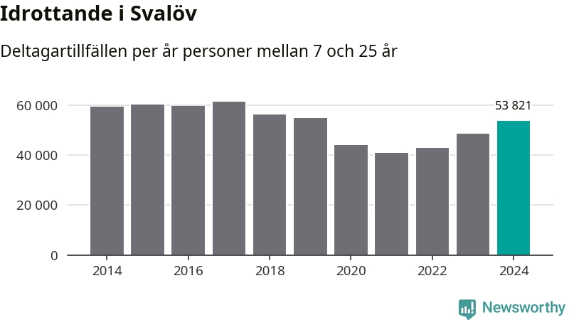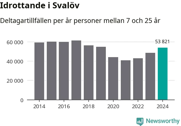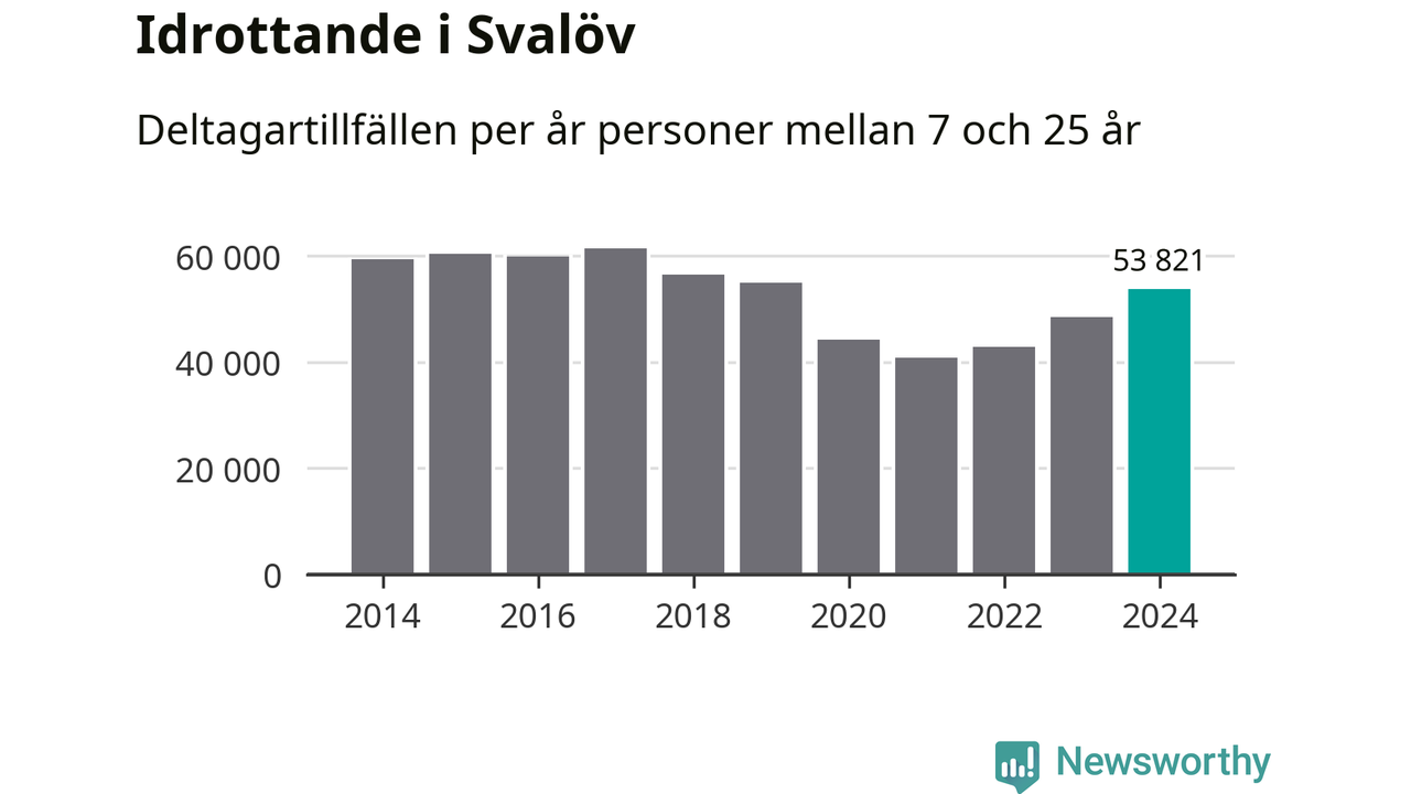 För tredje året i rad ökade aktiviteten inom ungdomsidrotten i Svalöv under 2024. Det visar nya siffror om utbetalt Lok-stöd, som delas ut till föreningar anslutna till Riksidrottsförbundet specialidrottsförbund. Stödet riktar sig till föreningar som bedriver verksamhet för deltagare i åldern 7-25 år. Under året rapporterade föreningarna i Svalöv runt 54 000 deltagartillfällen, vilket är en ökning med elva procent jämfört med 2023. I riket som helhet ökade antalet deltagartillfällen med fem procent under 2024.