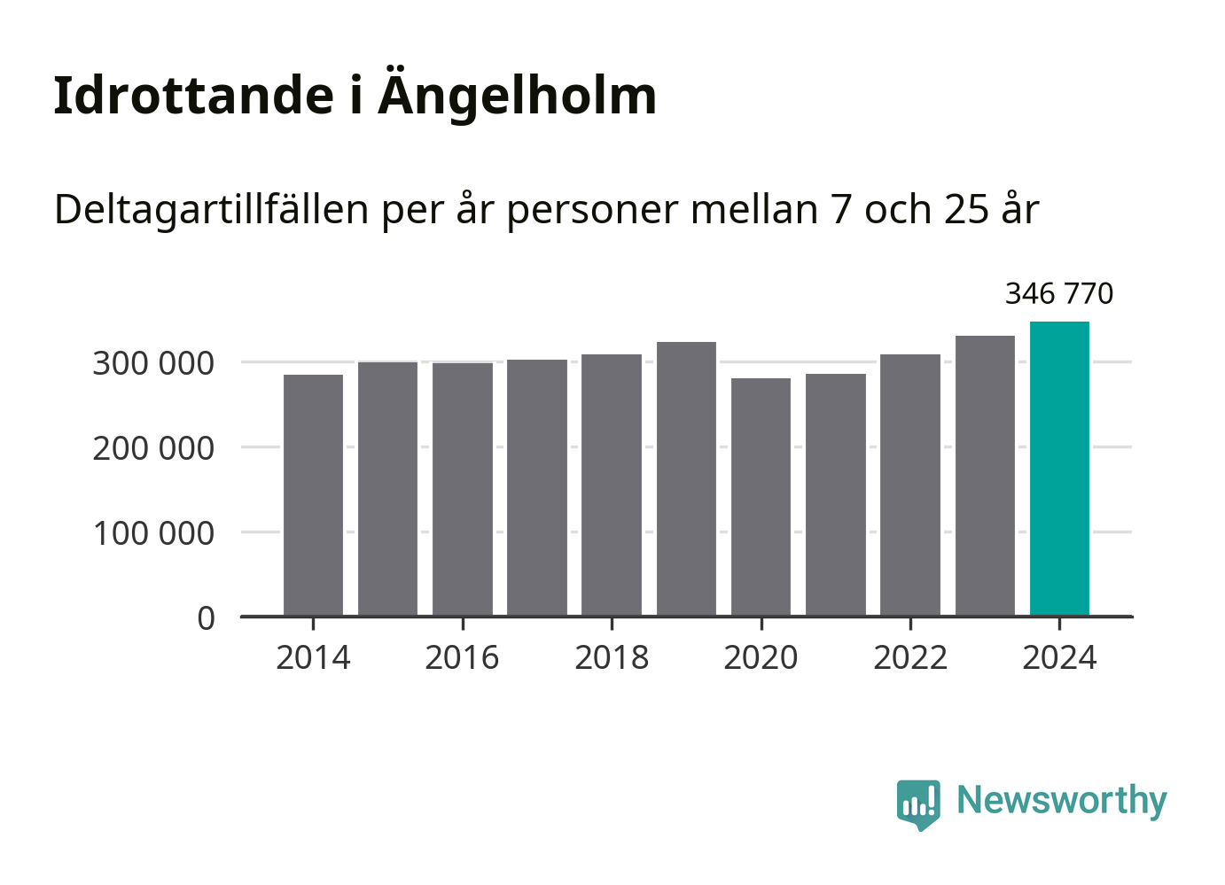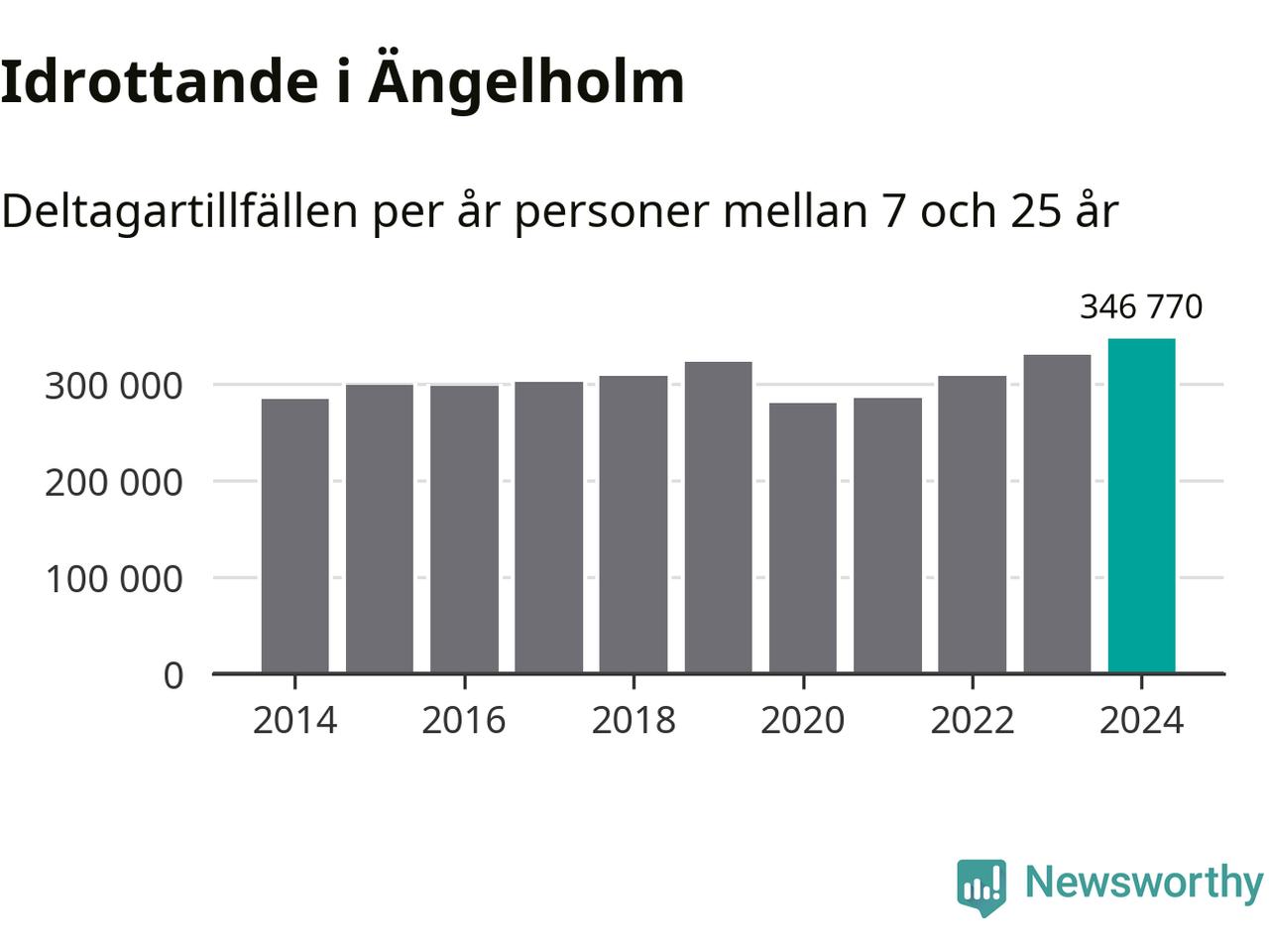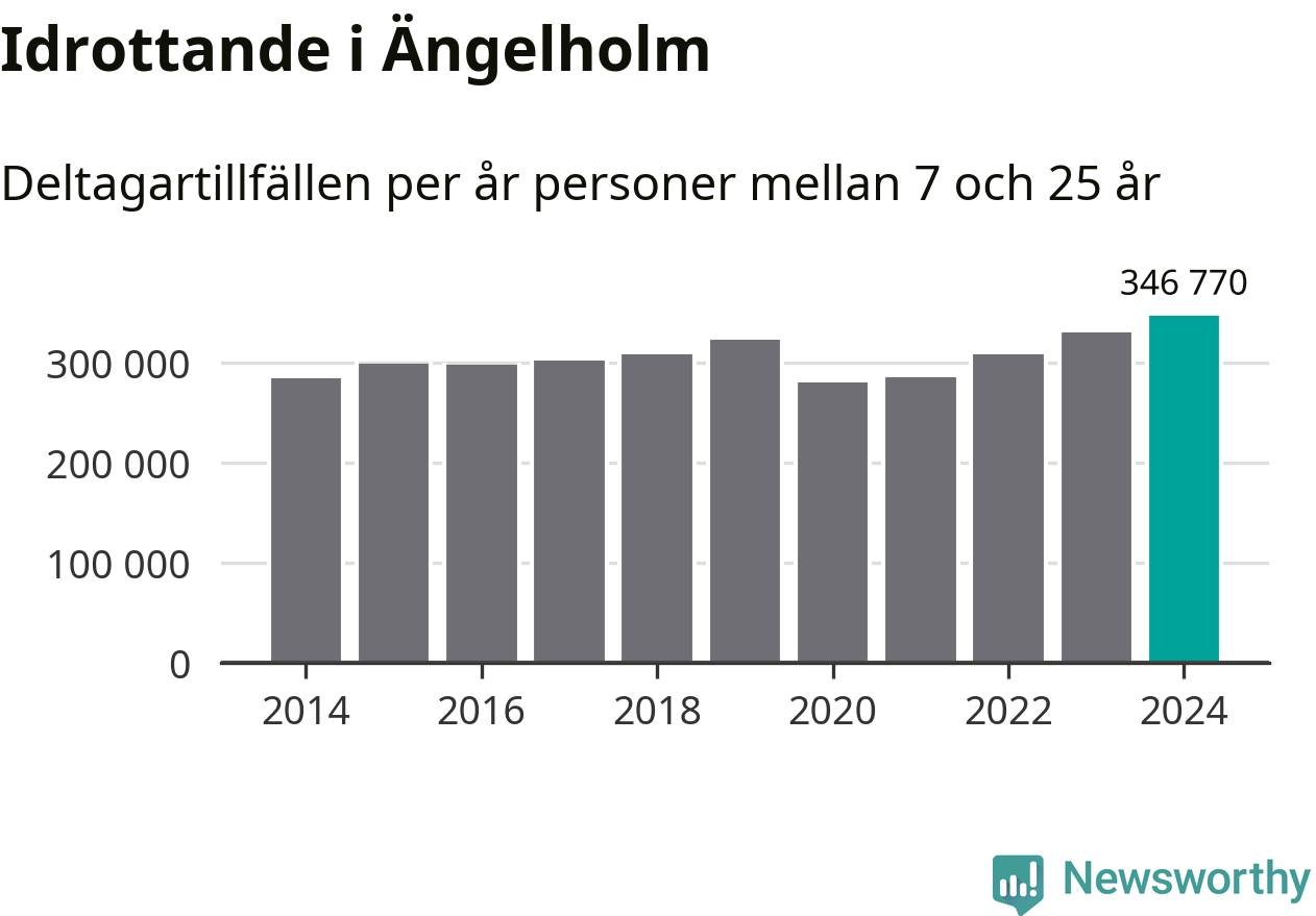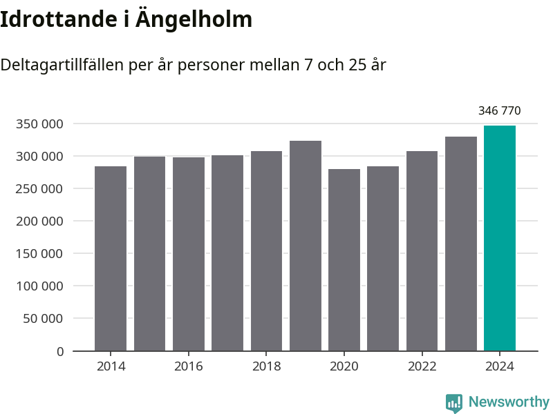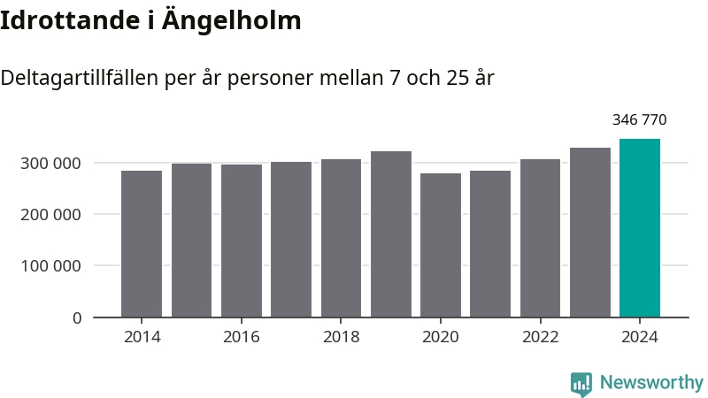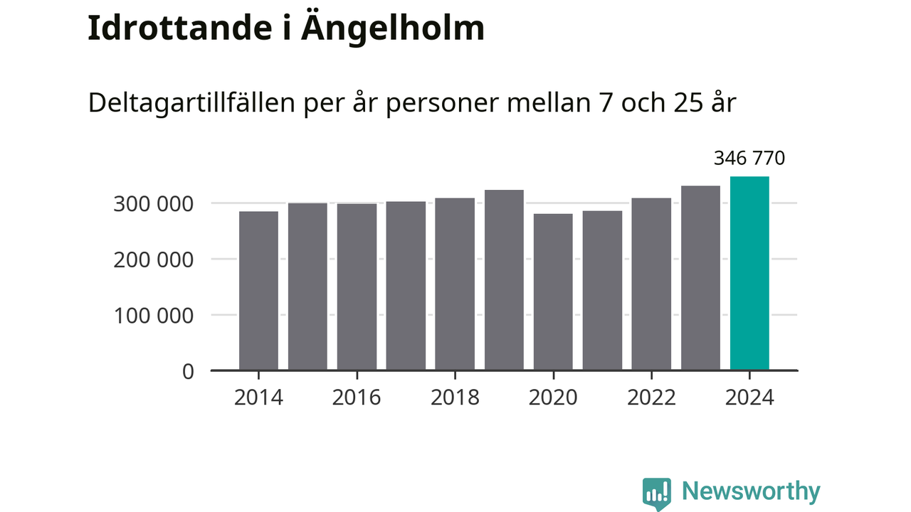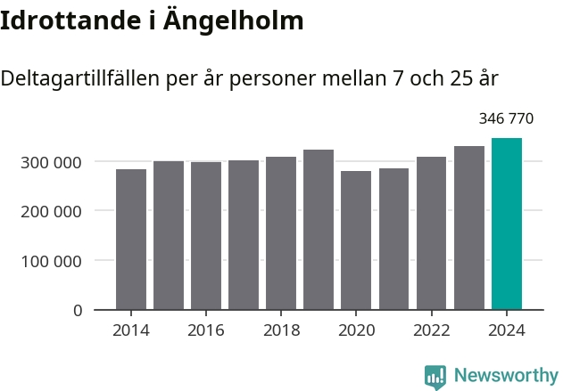 För tredje året i rad ökade aktiviteten inom ungdomsidrotten i Ängelholm under 2024. Det visar nya siffror om utbetalt Lok-stöd, som delas ut till föreningar anslutna till Riksidrottsförbundet specialidrottsförbund. Stödet riktar sig till föreningar som bedriver verksamhet för deltagare i åldern 7-25 år. Under året rapporterade föreningarna i Ängelholm runt 347 000 deltagartillfällen, vilket är en ökning med fem procent jämfört med 2023, och den högsta siffran i kommunen sedan åtminstone 2014. I riket som helhet ökade antalet deltagartillfällen med fem procent under 2024.