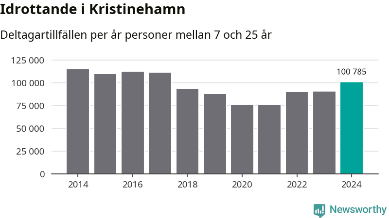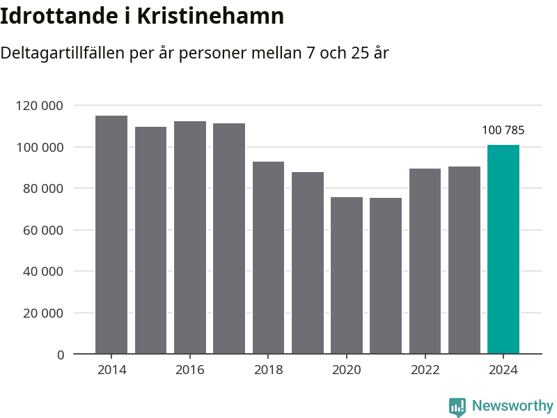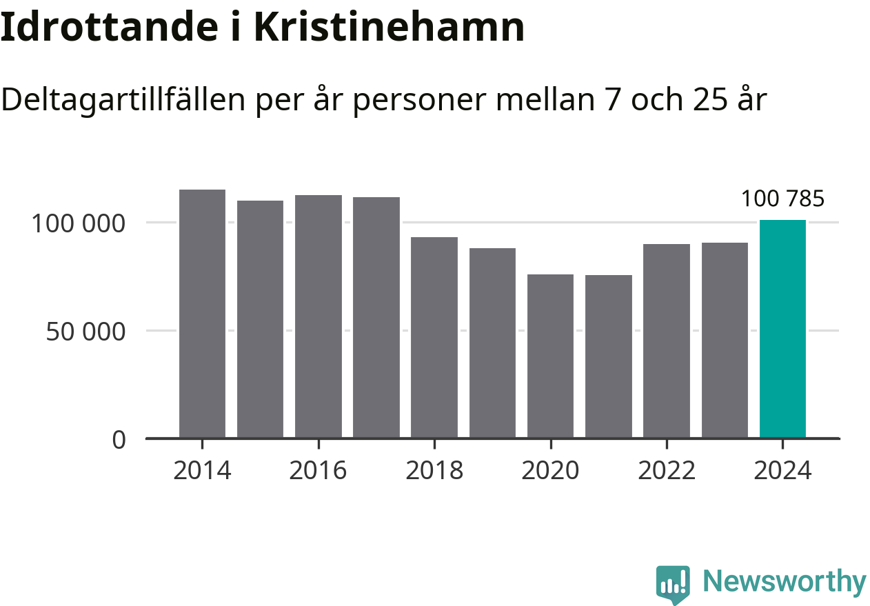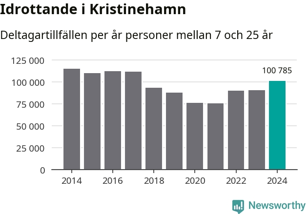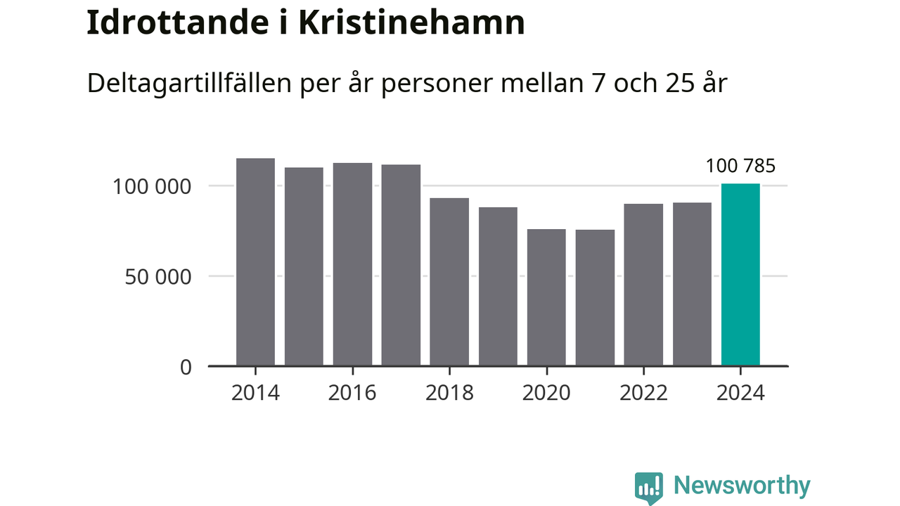 Kristinehamns-ungdomarna idrottade mer under 2024. Det visar nya siffror om utbetalt Lok-stöd, som delas ut till föreningar anslutna till Riksidrottsförbundet specialidrottsförbund. Stödet riktar sig till föreningar som bedriver verksamhet för deltagare i åldern 7-25 år. Under året rapporterade föreningarna i Kristinehamn runt 101 000 deltagartillfällen, vilket är en ökning med elva procent jämfört med 2023 och den högsta siffran i kommunen sedan 2017. I riket som helhet ökade antalet deltagartillfällen med fem procent under 2024.