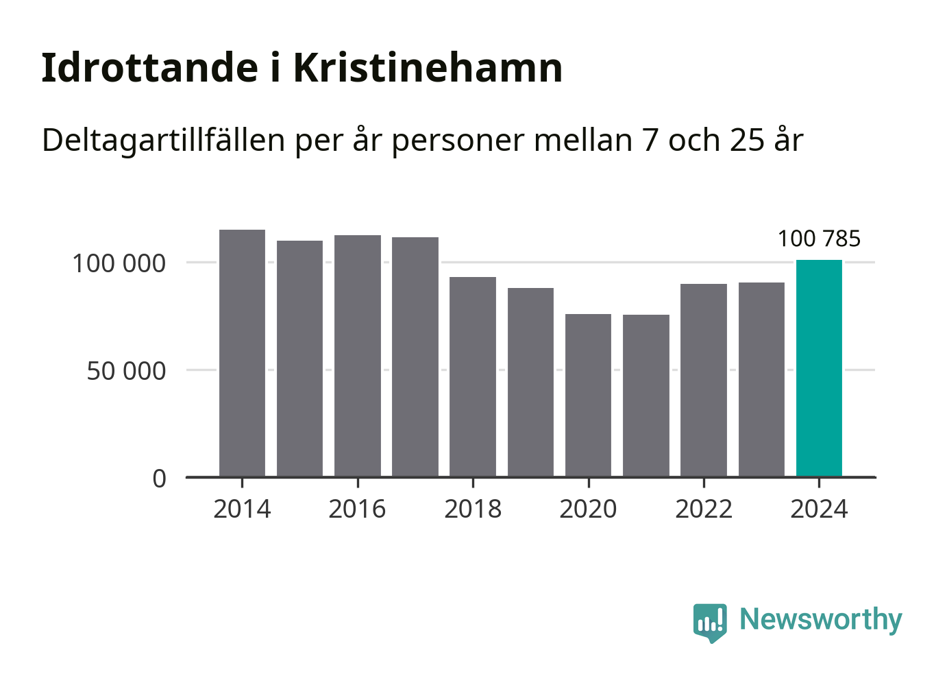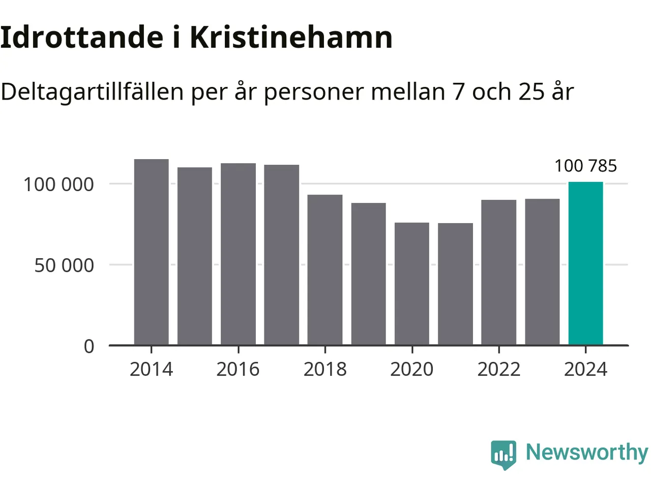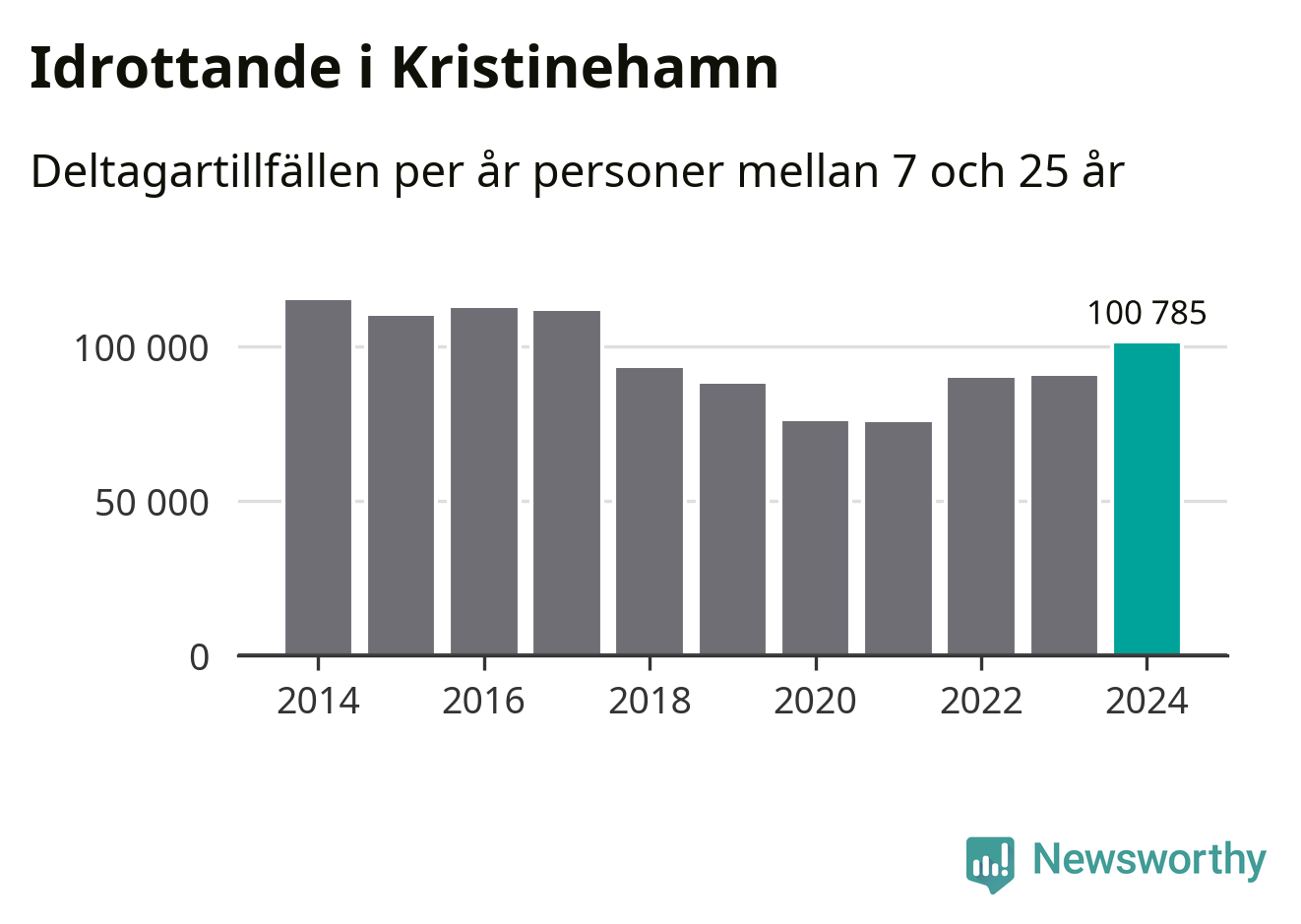 Kristinehamns-ungdomarna idrottade mer under 2024. Det visar nya siffror om utbetalt Lok-stöd, som delas ut till föreningar anslutna till Riksidrottsförbundet specialidrottsförbund. Stödet riktar sig till föreningar som bedriver verksamhet för deltagare i åldern 7-25 år. Under året rapporterade föreningarna i Kristinehamn runt 101 000 deltagartillfällen, vilket är en ökning med elva procent jämfört med 2023 och den högsta siffran i kommunen sedan 2017. I riket som helhet ökade antalet deltagartillfällen med fem procent under 2024.