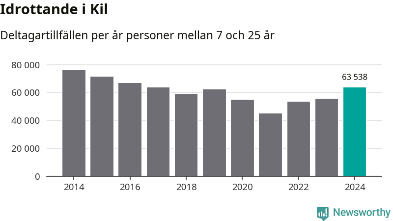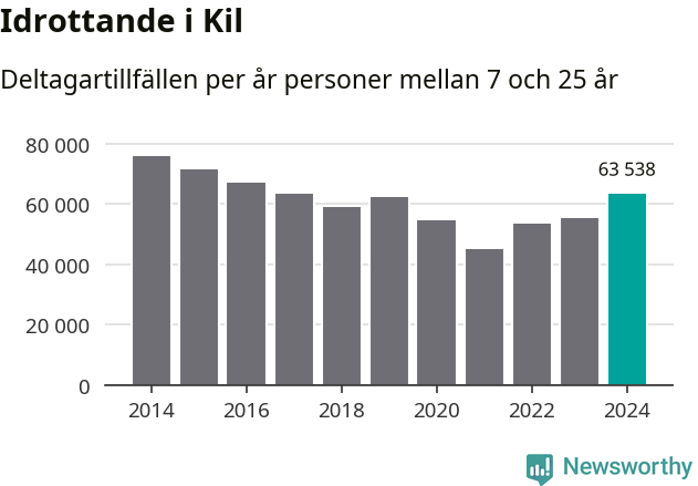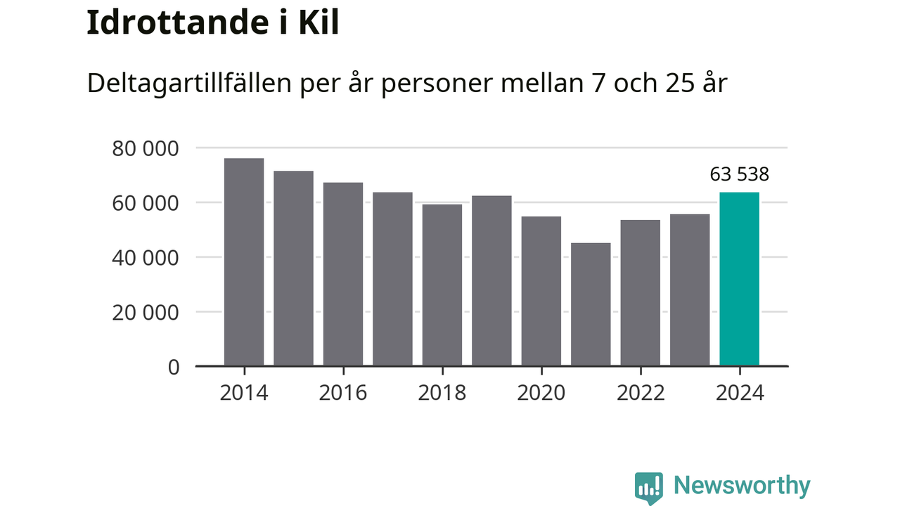 För tredje året i rad ökade aktiviteten inom ungdomsidrotten i Kil under 2024. Det visar nya siffror om utbetalt Lok-stöd, som delas ut till föreningar anslutna till Riksidrottsförbundet specialidrottsförbund. Stödet riktar sig till föreningar som bedriver verksamhet för deltagare i åldern 7-25 år. Under året rapporterade föreningarna i Kil runt 64 000 deltagartillfällen, vilket är en ökning med 15 procent jämfört med 2023 och den högsta siffran i kommunen sedan 2016. I riket som helhet ökade antalet deltagartillfällen med fem procent under 2024.
