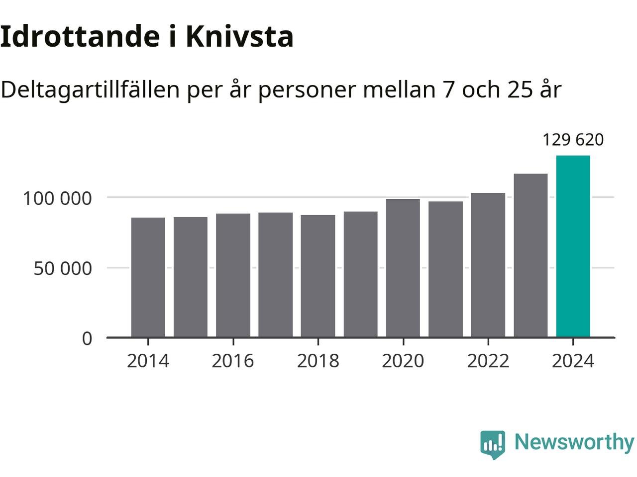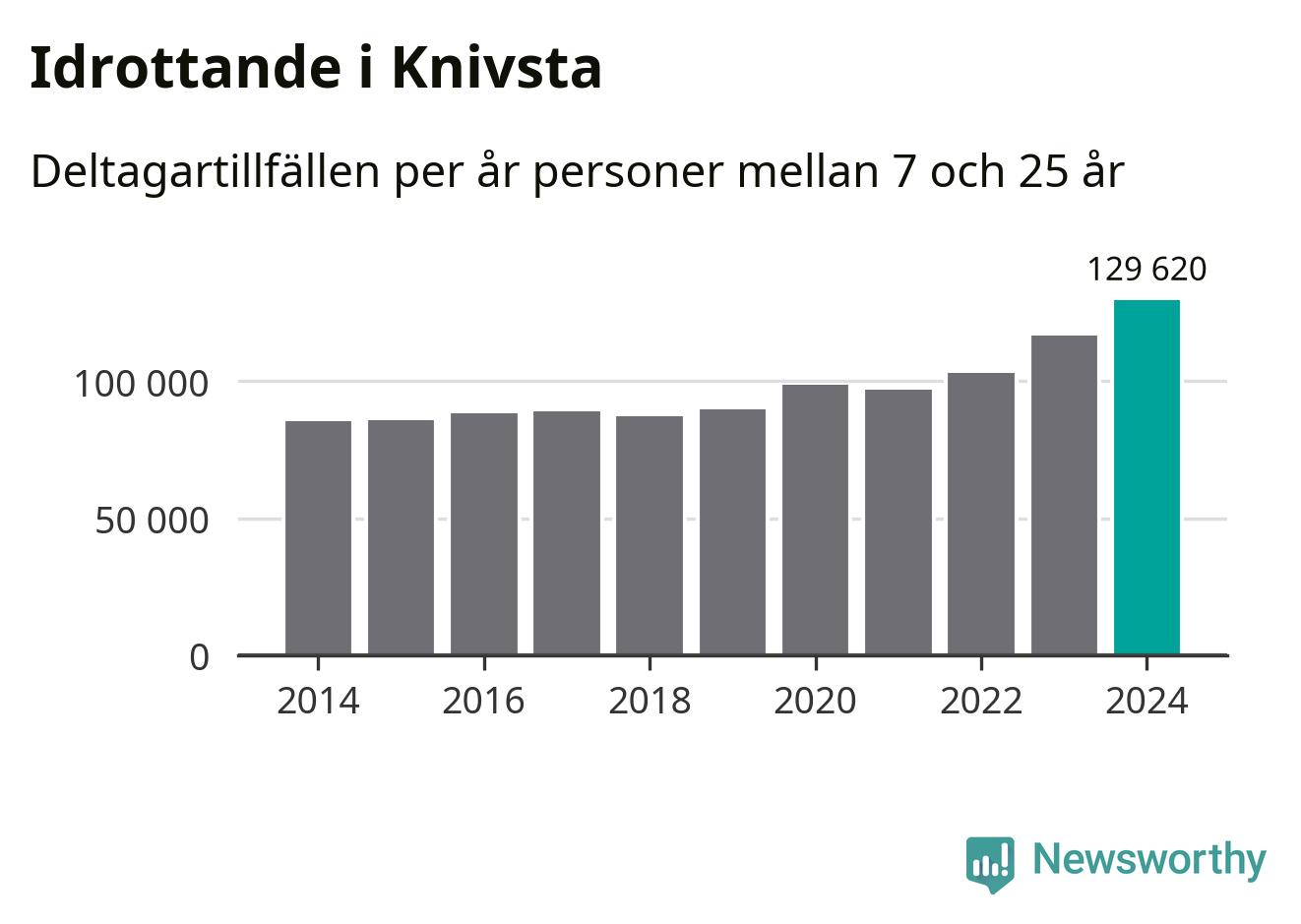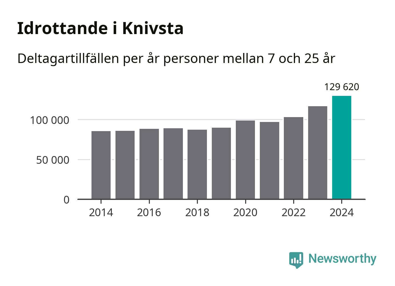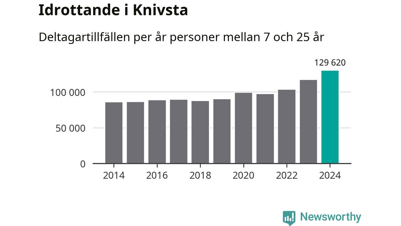 För tredje året i rad ökade aktiviteten inom ungdomsidrotten i Knivsta under 2024. Det visar nya siffror om utbetalt Lok-stöd, som delas ut till föreningar anslutna till Riksidrottsförbundet specialidrottsförbund. Stödet riktar sig till föreningar som bedriver verksamhet för deltagare i åldern 7-25 år. Under året rapporterade föreningarna i Knivsta runt 130 000 deltagartillfällen, vilket är en ökning med elva procent jämfört med 2023, och den högsta siffran i kommunen sedan åtminstone 2014. I riket som helhet ökade antalet deltagartillfällen med fem procent under 2024.