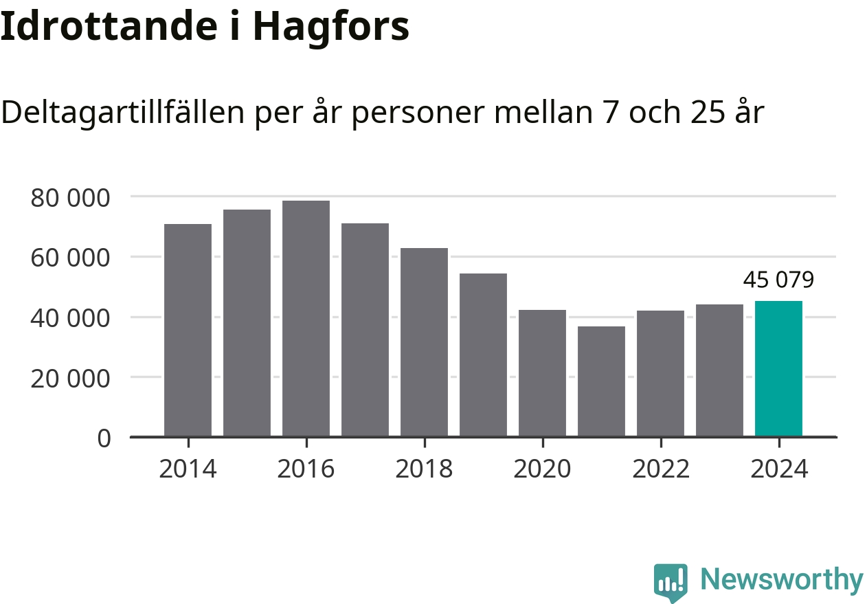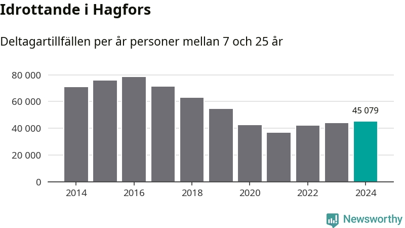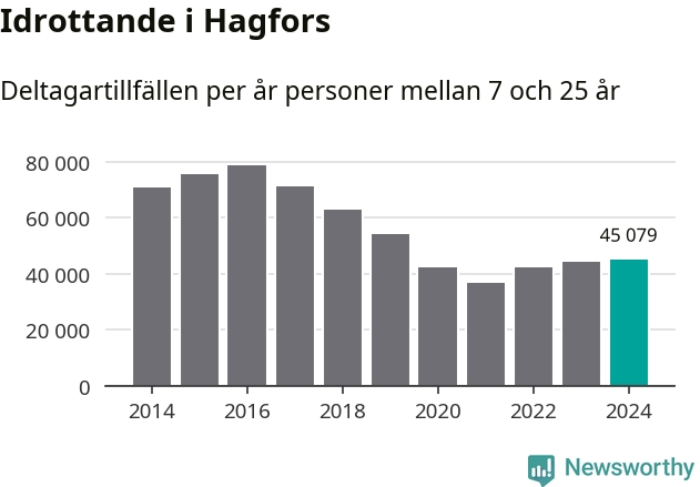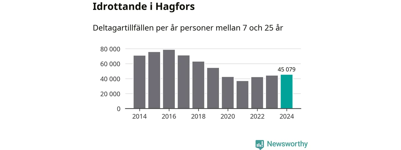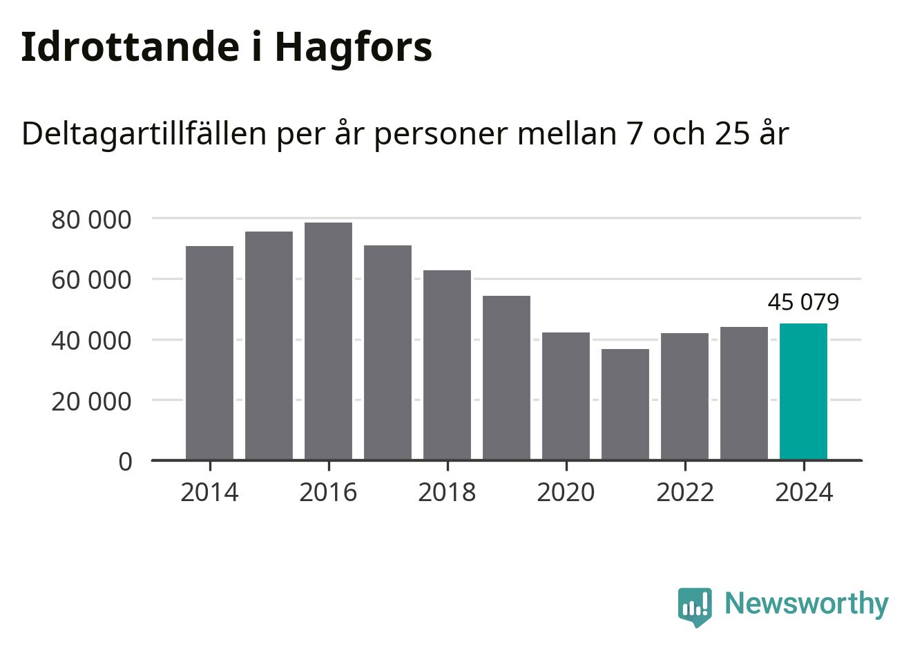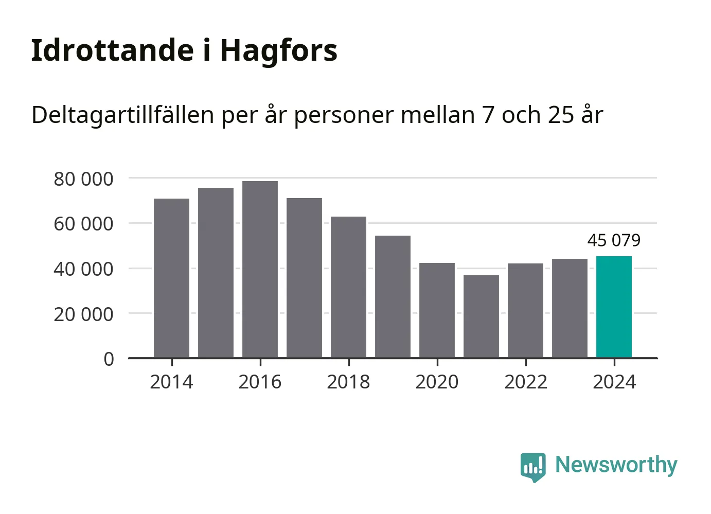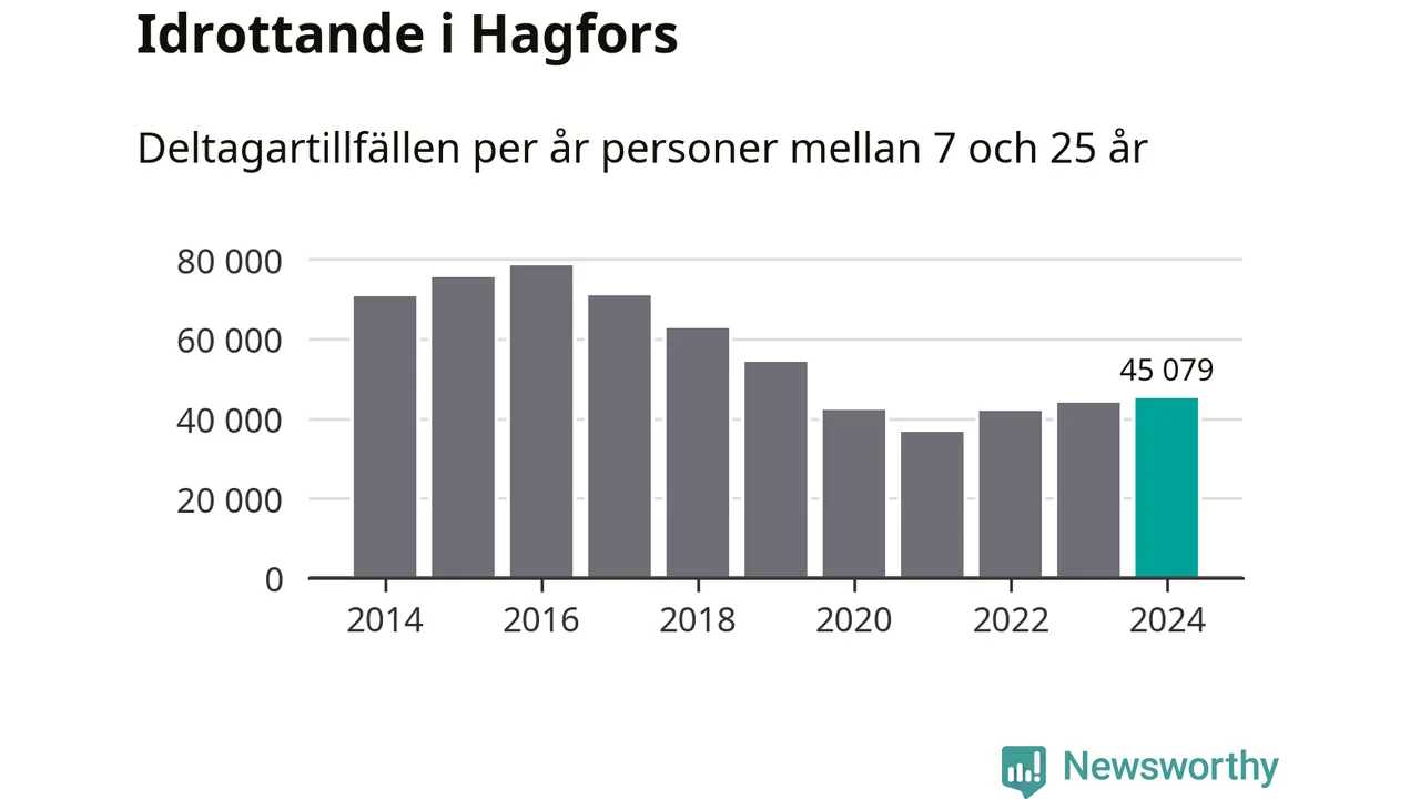 För tredje året i rad ökade aktiviteten inom ungdomsidrotten i Hagfors under 2024. Det visar nya siffror om utbetalt Lok-stöd, som delas ut till föreningar anslutna till Riksidrottsförbundet specialidrottsförbund. Stödet riktar sig till föreningar som bedriver verksamhet för deltagare i åldern 7-25 år. Under året rapporterade föreningarna i Hagfors runt 45 000 deltagartillfällen, vilket är en ökning med två procent jämfört med 2023. I riket som helhet ökade antalet deltagartillfällen med fem procent under 2024.