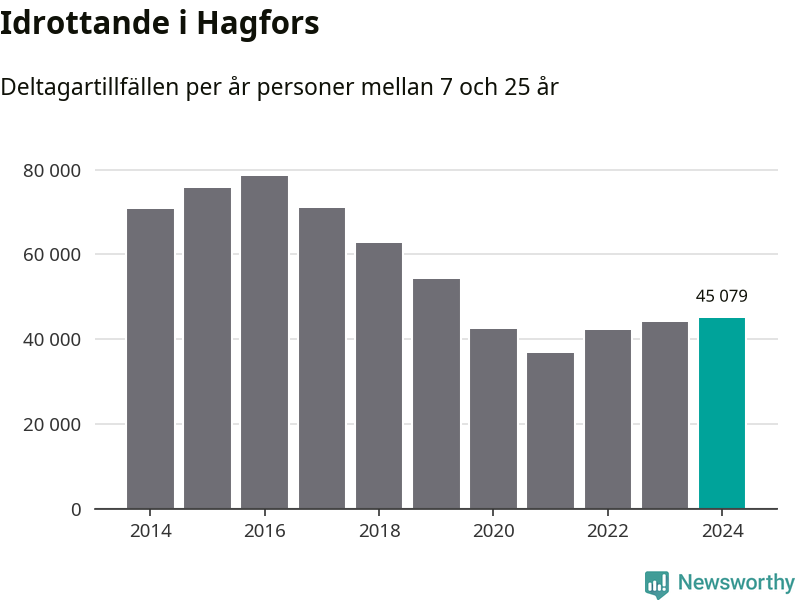 Under 2024 minskade aktiviteten inom ishockeyn i Hagfors med 21 procent, från ungefär 7 600 till runt 6 000 deltagartillfällen.