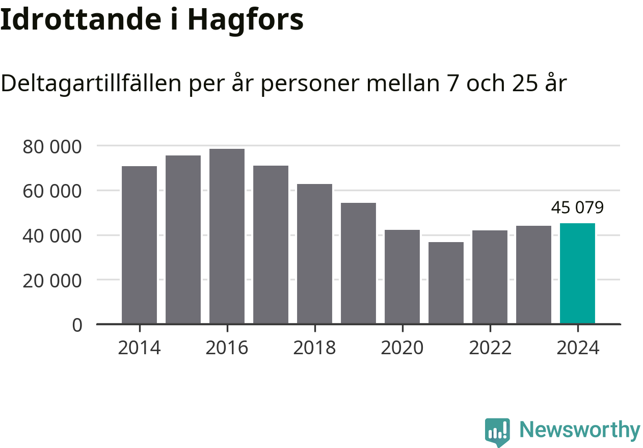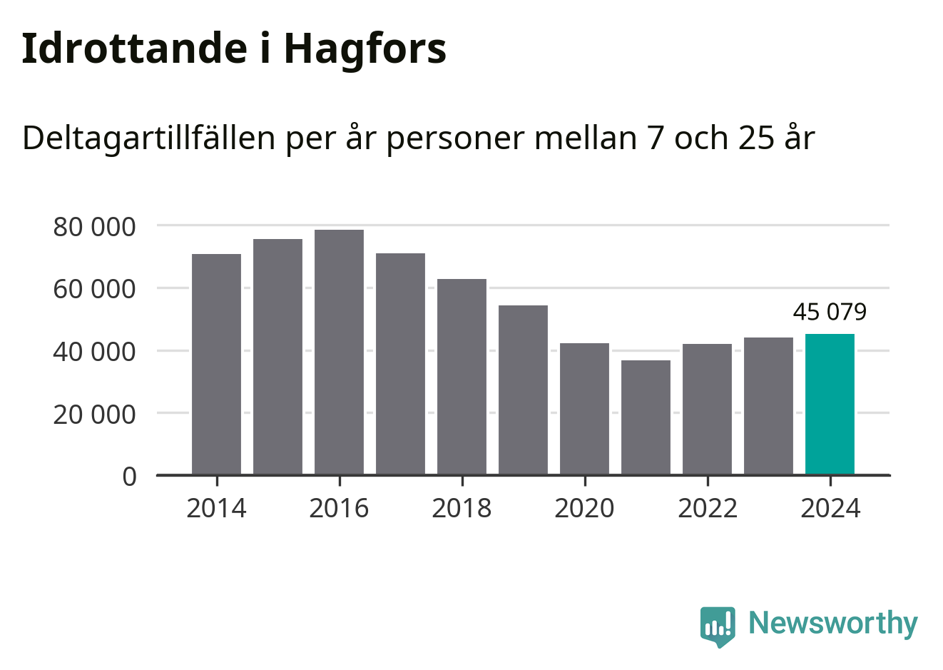 De 45 000 deltagartillfällen innebär att varje invånare i Hagfors mellan 7 och 25 år i snitt deltog i 24 träningar, matcher eller turneringar under 2024. Flest deltagartillfällen per invånare i Värmland hade Hammarö kommun med 44 deltagartillfällen per invånare. I andra änden av listan finns Storfors kommun, 6 deltagartillfällen per invånare. Värt att nämna är att deltagartillfällena räknas i den kommun föreningen finns, det kan alltså vara ungdomar från en annan kommun som deltar.