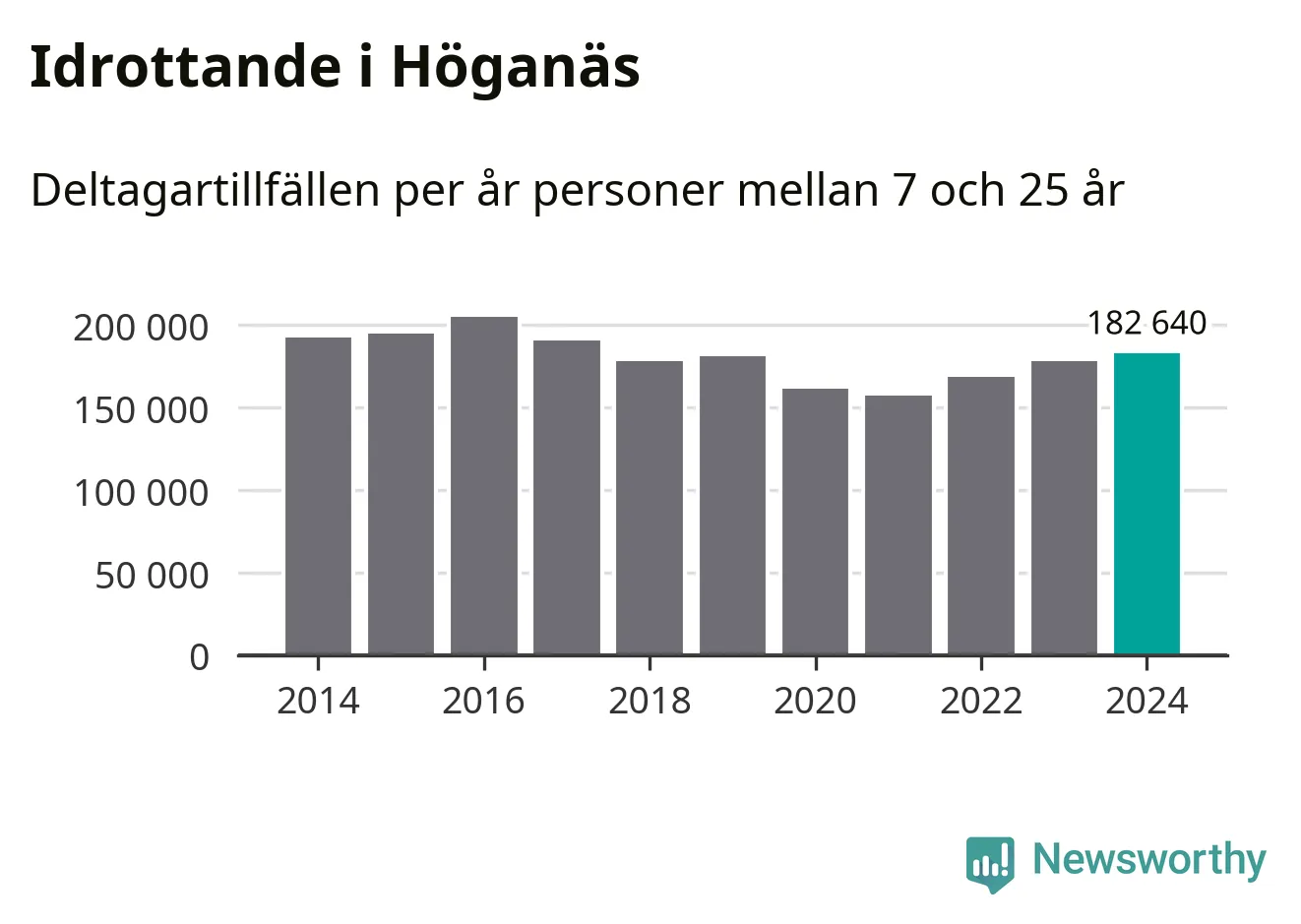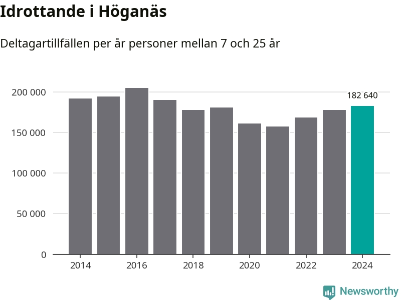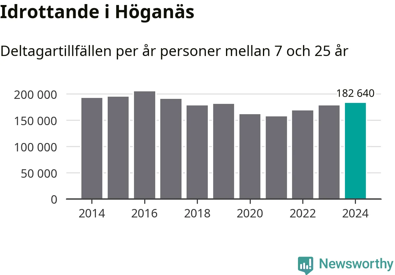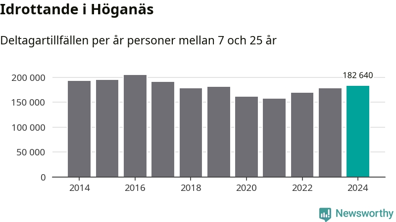 De 183 000 deltagartillfällen innebär att varje invånare i Höganäs mellan 7 och 25 år i snitt deltog i 32 träningar, matcher eller turneringar under 2024. Det är en relativt hög siffra, nationellt sett. Flest deltagartillfällen per invånare i Skåne hade Lomma kommun med 46 deltagartillfällen per invånare. I andra änden av listan finns Perstorps kommun, 12 deltagartillfällen per invånare. Värt att nämna är att deltagartillfällena räknas i den kommun föreningen finns, det kan alltså vara ungdomar från en annan kommun som deltar.