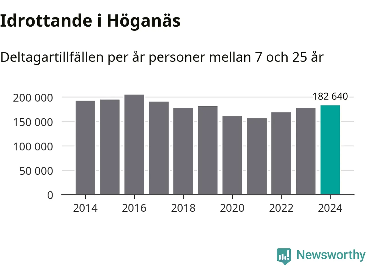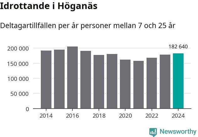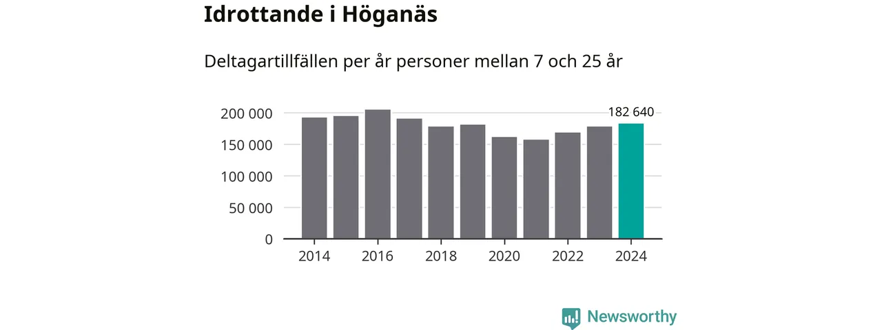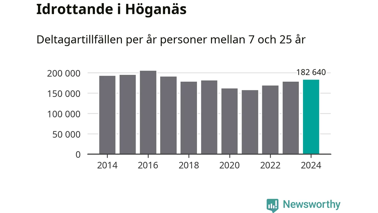 För tredje året i rad ökade aktiviteten inom ungdomsidrotten i Höganäs under 2024. Det visar nya siffror om utbetalt Lok-stöd, som delas ut till föreningar anslutna till Riksidrottsförbundet specialidrottsförbund. Stödet riktar sig till föreningar som bedriver verksamhet för deltagare i åldern 7-25 år. Under året rapporterade föreningarna i Höganäs runt 183 000 deltagartillfällen, vilket är en ökning med två procent jämfört med 2023 och den högsta siffran i kommunen sedan 2017. I riket som helhet ökade antalet deltagartillfällen med fem procent under 2024.