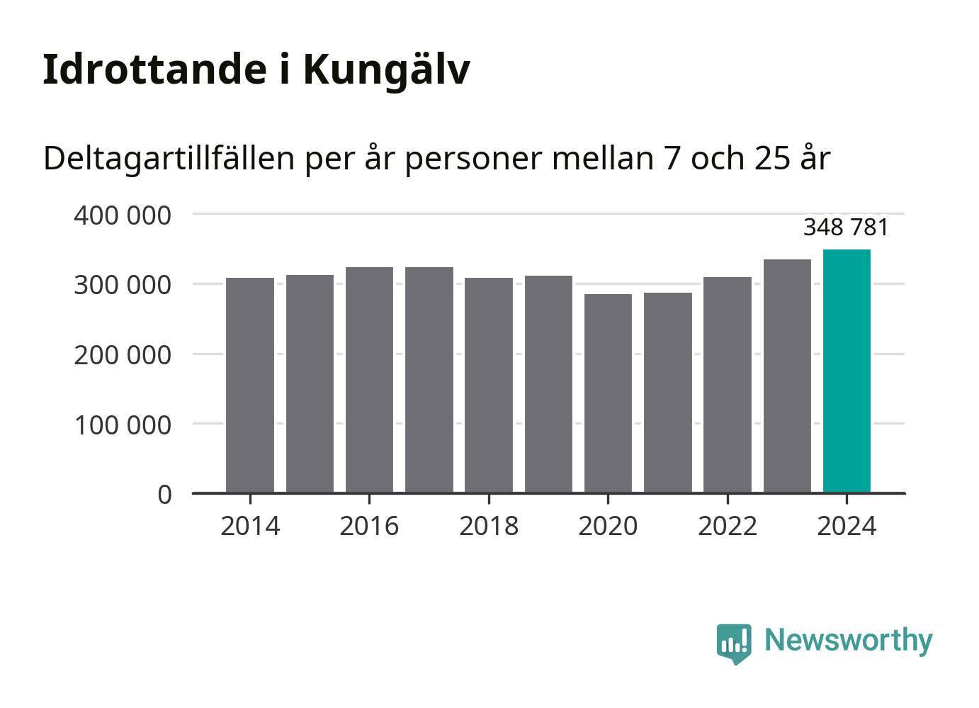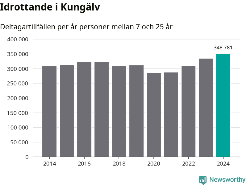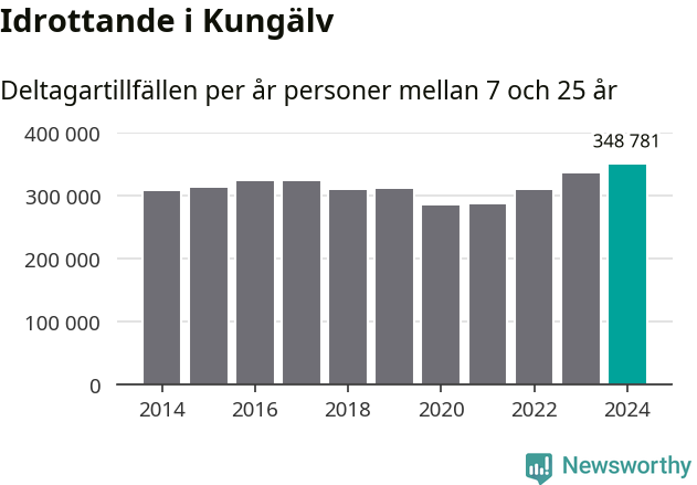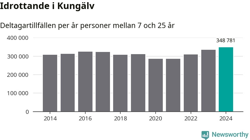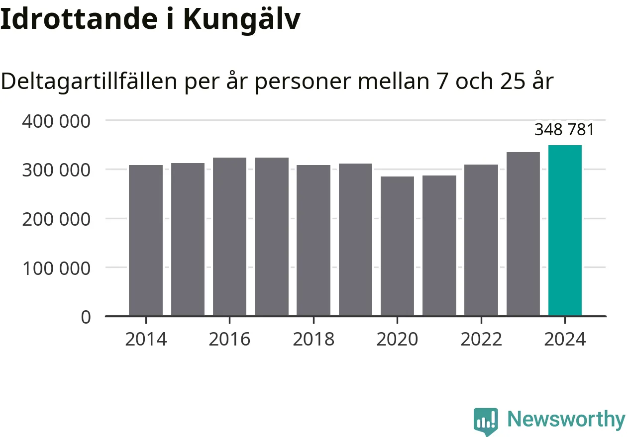 För tredje året i rad ökade aktiviteten inom ungdomsidrotten i Kungälv under 2024. Det visar nya siffror om utbetalt Lok-stöd, som delas ut till föreningar anslutna till Riksidrottsförbundet specialidrottsförbund. Stödet riktar sig till föreningar som bedriver verksamhet för deltagare i åldern 7-25 år. Under året rapporterade föreningarna i Kungälv runt 349 000 deltagartillfällen, vilket är en ökning med fyra procent jämfört med 2023, och den högsta siffran i kommunen sedan åtminstone 2014. I riket som helhet ökade antalet deltagartillfällen med fem procent under 2024.