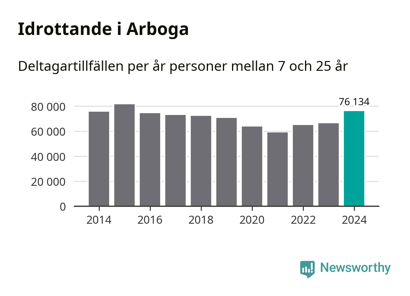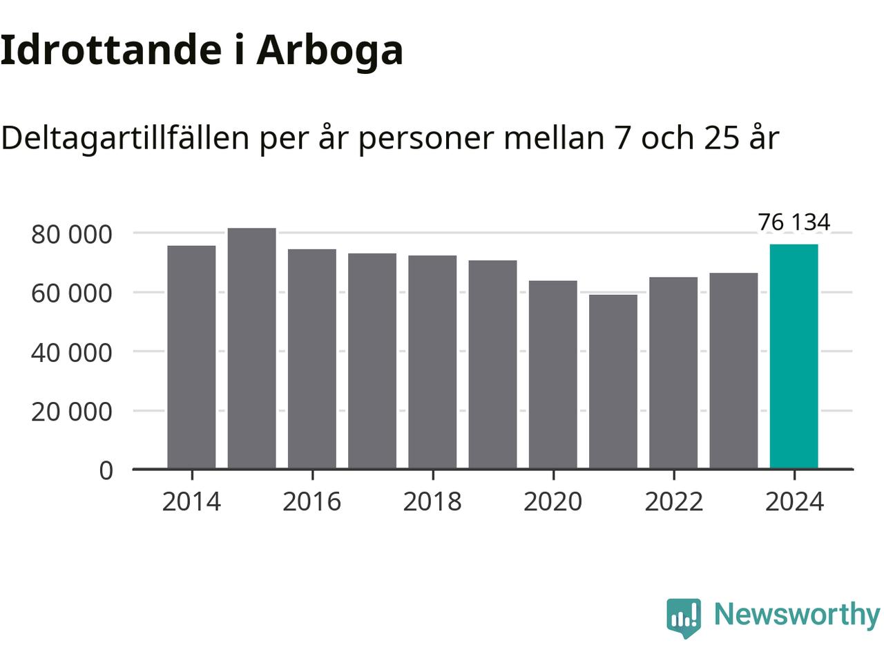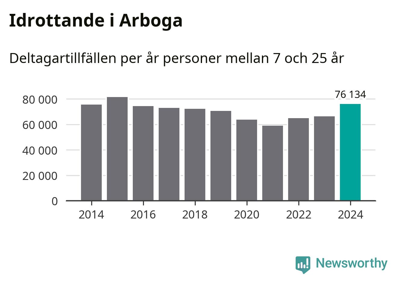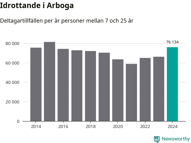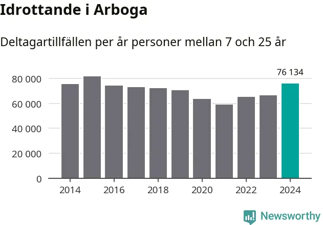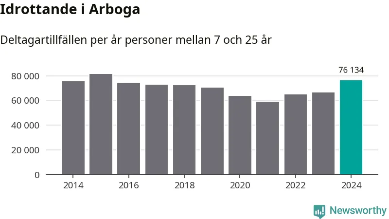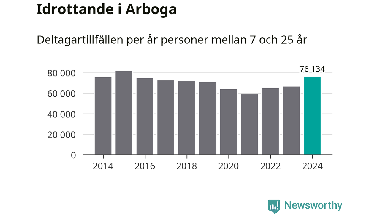 För tredje året i rad ökade aktiviteten inom ungdomsidrotten i Arboga under 2024. Det visar nya siffror om utbetalt Lok-stöd, som delas ut till föreningar anslutna till Riksidrottsförbundet specialidrottsförbund. Stödet riktar sig till föreningar som bedriver verksamhet för deltagare i åldern 7-25 år. Under året rapporterade föreningarna i Arboga runt 76 000 deltagartillfällen, vilket är en ökning med 15 procent jämfört med 2023 och den högsta siffran i kommunen sedan 2015. I riket som helhet ökade antalet deltagartillfällen med fem procent under 2024.