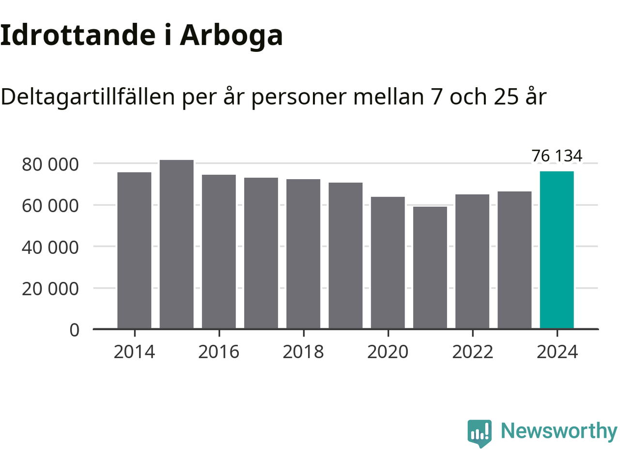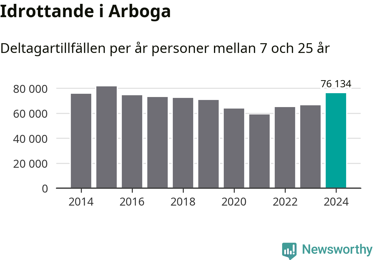 De 76 000 deltagartillfällen innebär att varje invånare i Arboga mellan 7 och 25 år i snitt deltog i 27 träningar, matcher eller turneringar under 2024. Flest deltagartillfällen per invånare i Västmanland hade Surahammars kommun med 28 deltagartillfällen per invånare. I andra änden av listan finns Skinnskattebergs kommun, 11 deltagartillfällen per invånare. Värt att nämna är att deltagartillfällena räknas i den kommun föreningen finns, det kan alltså vara ungdomar från en annan kommun som deltar.