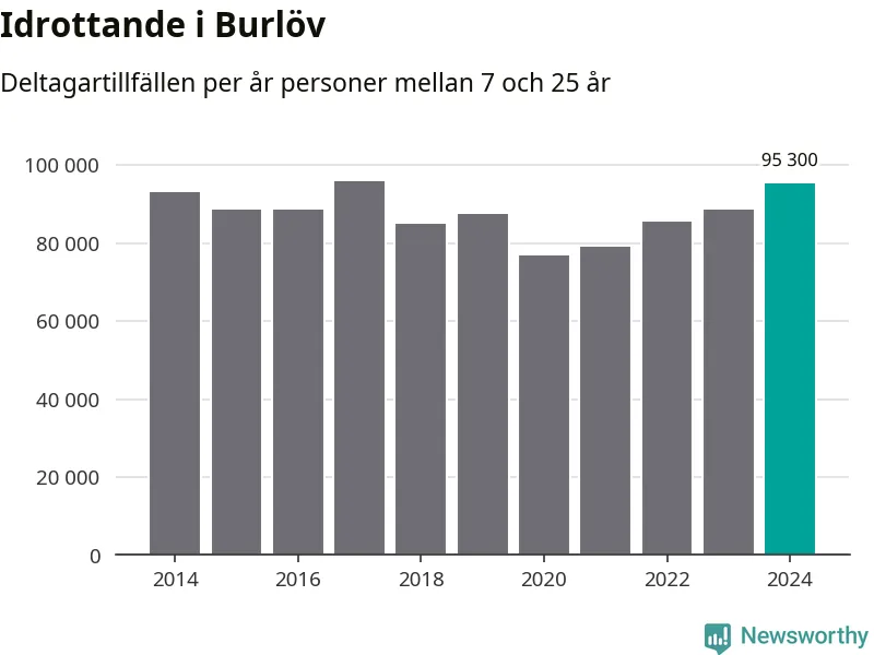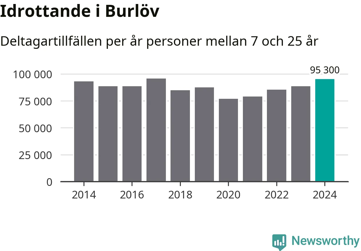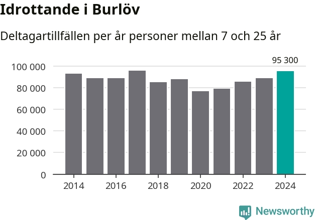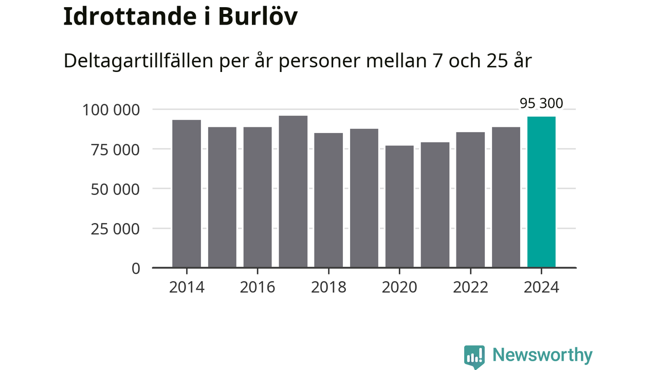 För fjärde året i rad ökade aktiviteten inom ungdomsidrotten i Burlöv under 2024. Det visar nya siffror om utbetalt Lok-stöd, som delas ut till föreningar anslutna till Riksidrottsförbundet specialidrottsförbund. Stödet riktar sig till föreningar som bedriver verksamhet för deltagare i åldern 7-25 år. Under året rapporterade föreningarna i Burlöv runt 95 000 deltagartillfällen, vilket är en ökning med sju procent jämfört med 2023 och den högsta siffran i kommunen sedan 2017. I riket som helhet ökade antalet deltagartillfällen med fem procent under 2024.