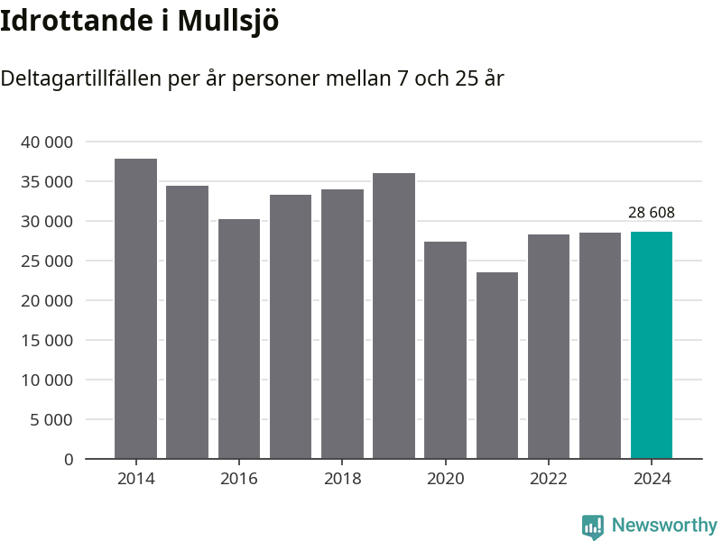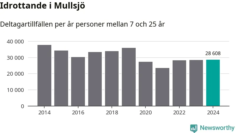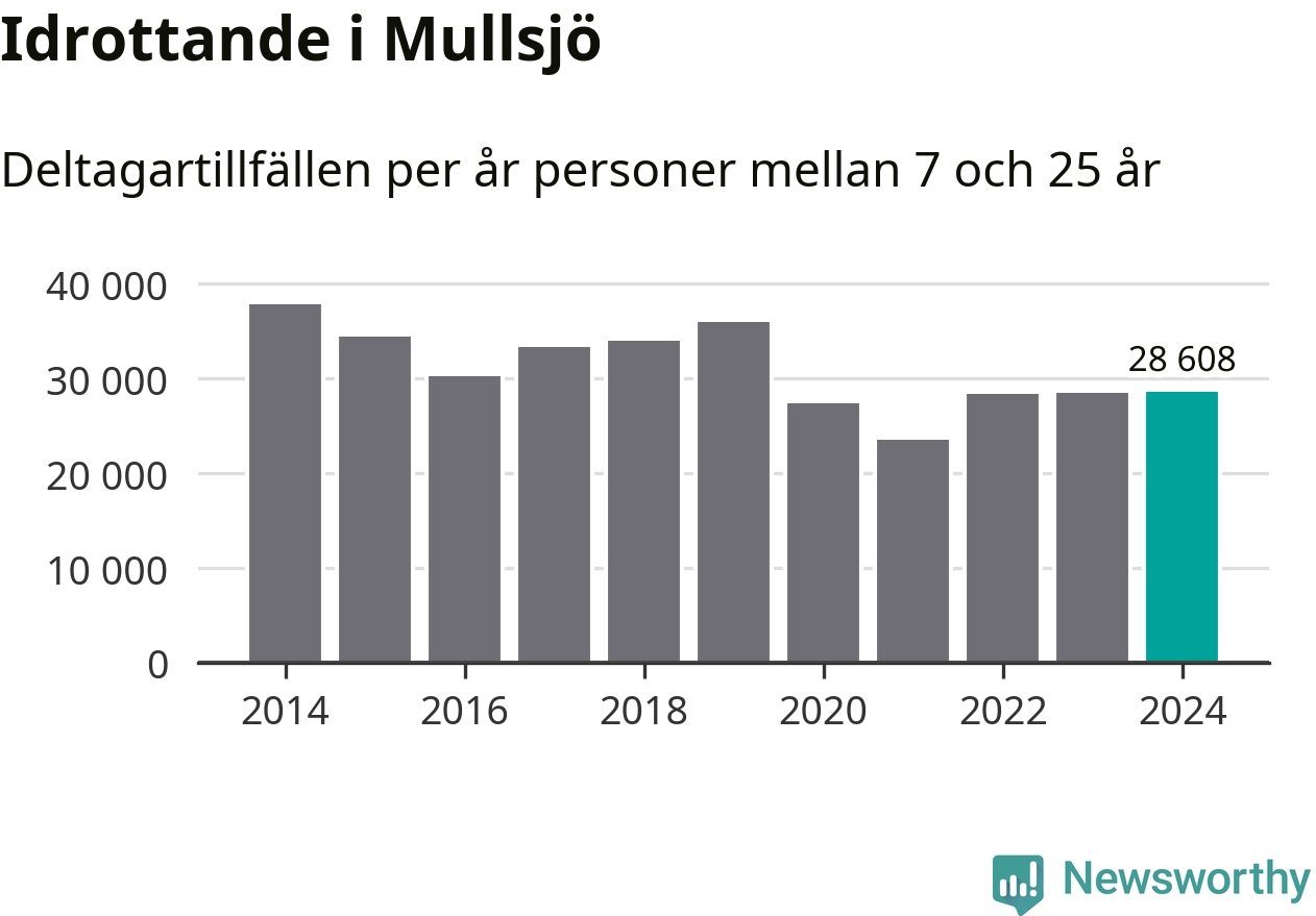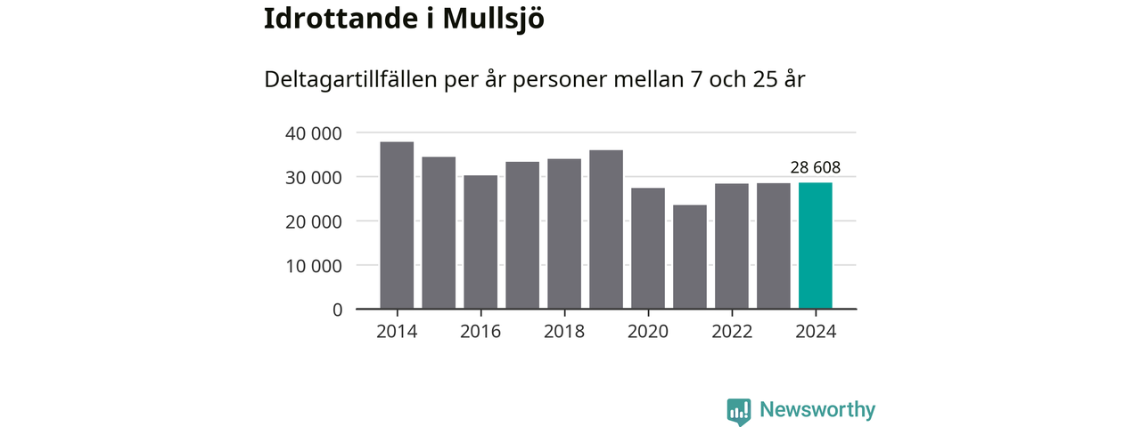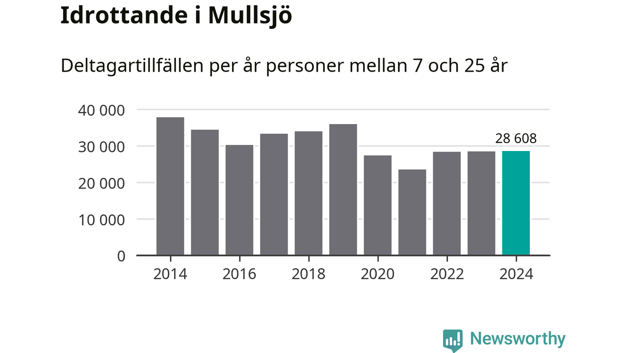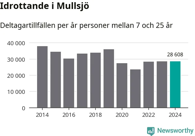 Idrottande Mullsjöungdomar registrerades för knappt 29 000 deltagartillfällen under 2024. Det är ungefär lika många som året innan. Det visar nya siffror om utbetalt Lok-stöd, som delas ut till föreningar anslutna till Riksidrottsförbundet specialidrottsförbund. Stödet riktar sig till föreningar som bedriver verksamhet för deltagare i åldern 7-25 år. I riket som helhet ökade antalet deltagartillfällen med fem procent under 2024.