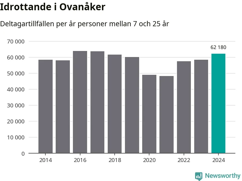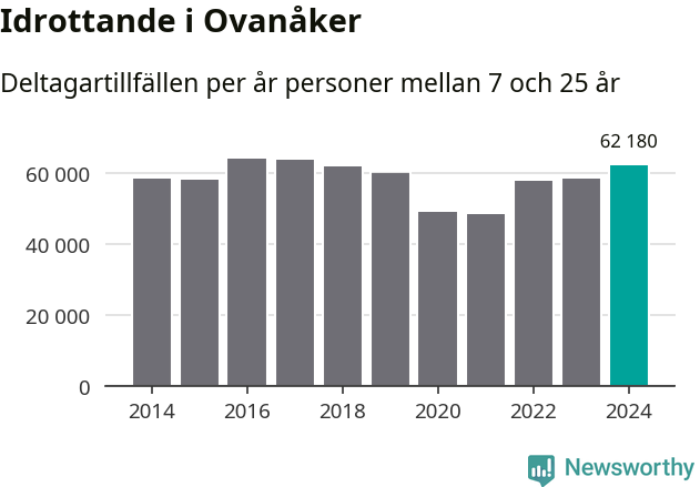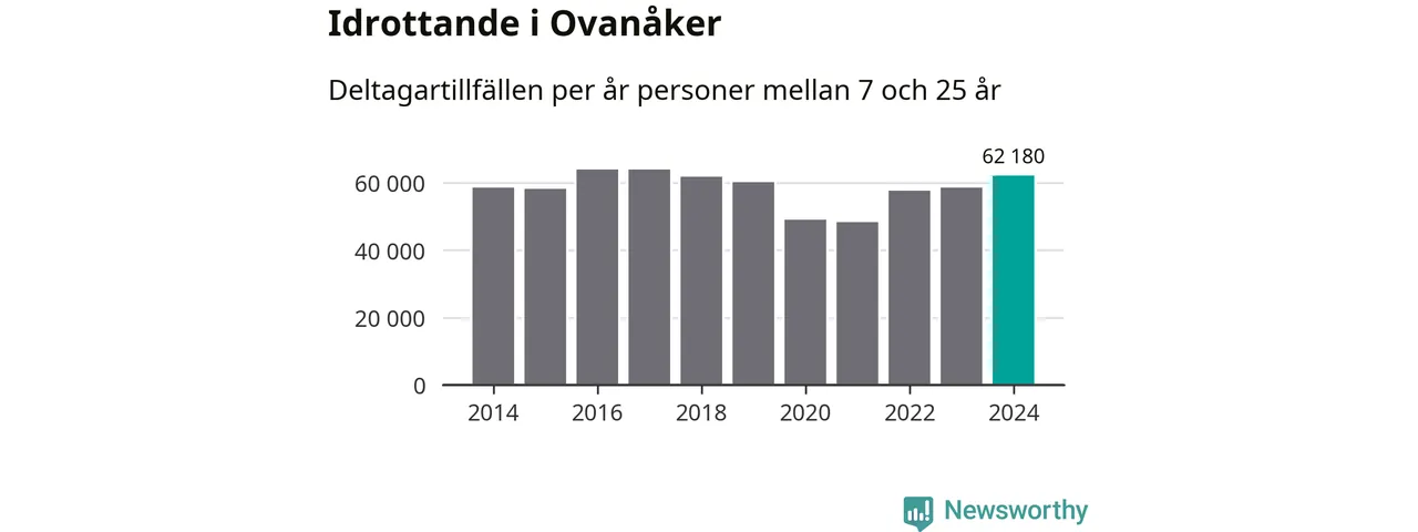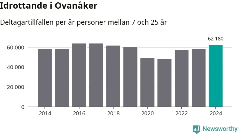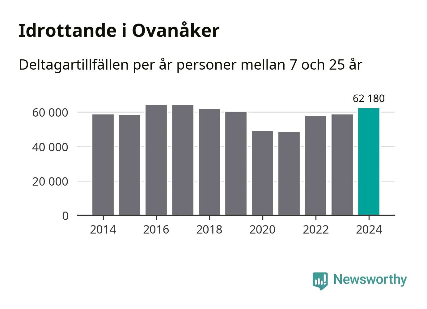 Ovanåkers-ungdomarna idrottade mer under 2024. Det visar nya siffror om utbetalt Lok-stöd, som delas ut till föreningar anslutna till Riksidrottsförbundet specialidrottsförbund. Stödet riktar sig till föreningar som bedriver verksamhet för deltagare i åldern 7-25 år. Under året rapporterade föreningarna i Ovanåker runt 62 000 deltagartillfällen, vilket är en ökning med sex procent jämfört med 2023 och den högsta siffran i kommunen sedan 2017. I riket som helhet ökade antalet deltagartillfällen med fem procent under 2024.