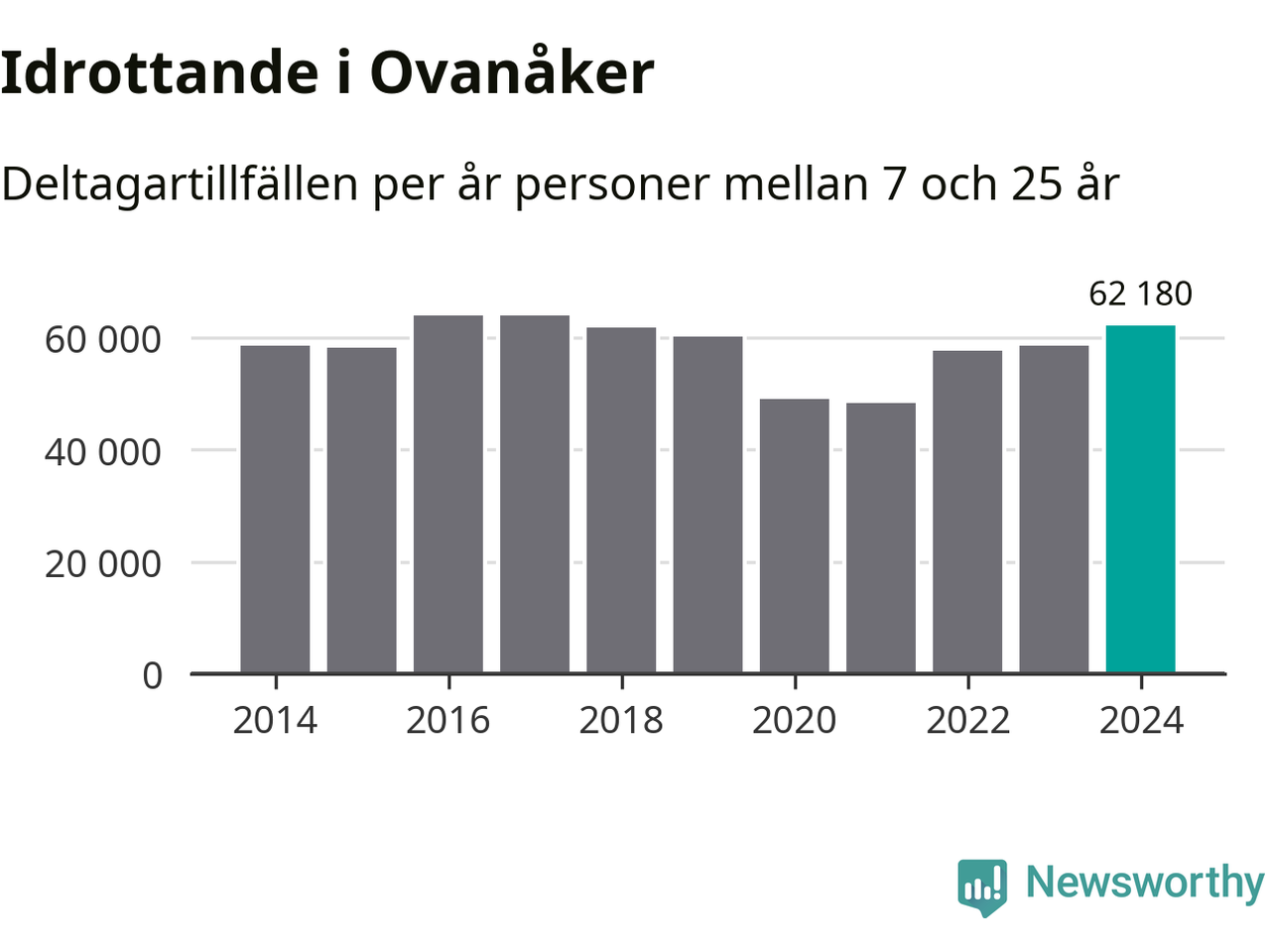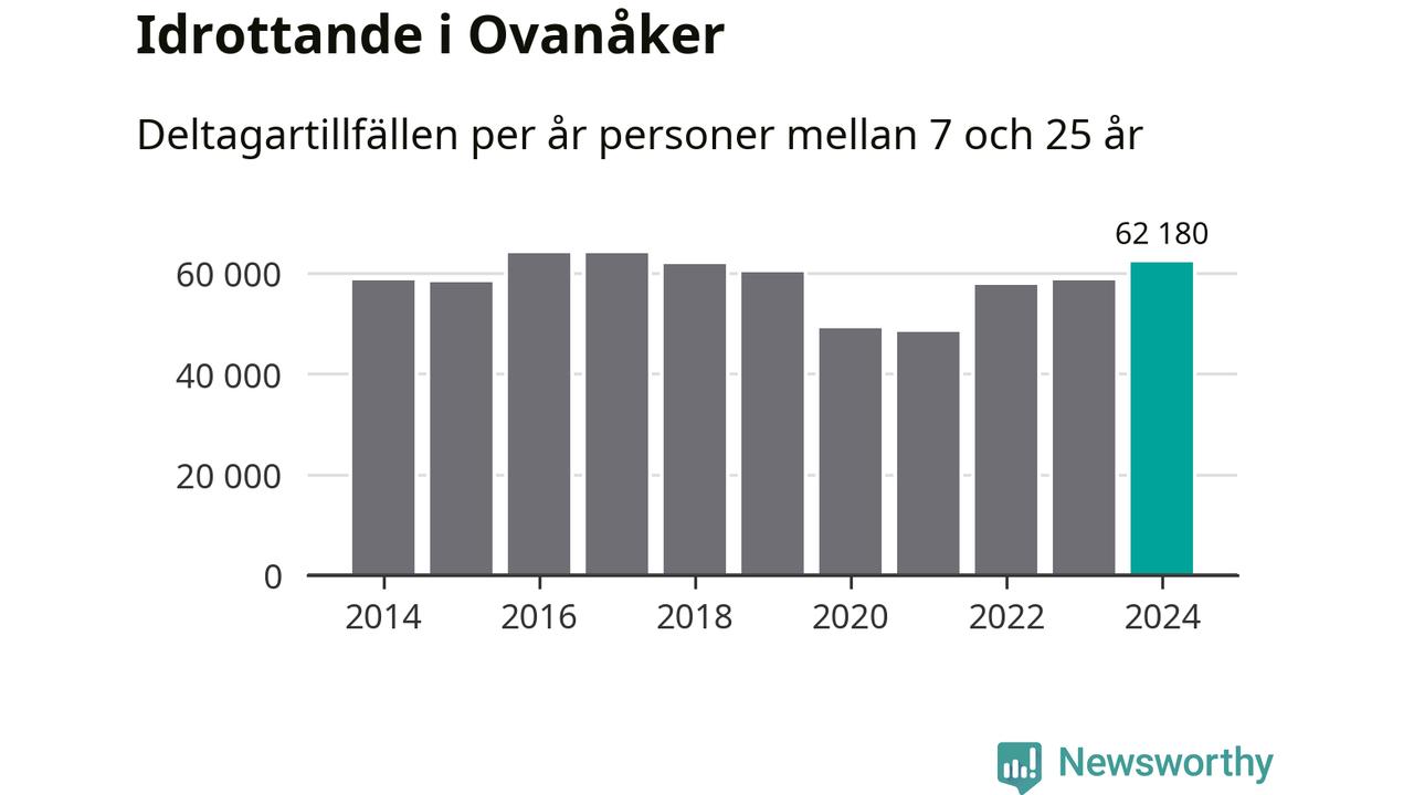 De 62 000 deltagartillfällen innebär att varje invånare i Ovanåker mellan 7 och 25 år i snitt deltog i 29 träningar, matcher eller turneringar under 2024. Det är den näst högsta siffran i Gävleborg. Flest deltagartillfällen per invånare i Gävleborg hade Gävle kommun med 32 deltagartillfällen per invånare. I andra änden av listan finns Nordanstigs kommun, 11 deltagartillfällen per invånare. Värt att nämna är att deltagartillfällena räknas i den kommun föreningen finns, det kan alltså vara ungdomar från en annan kommun som deltar.