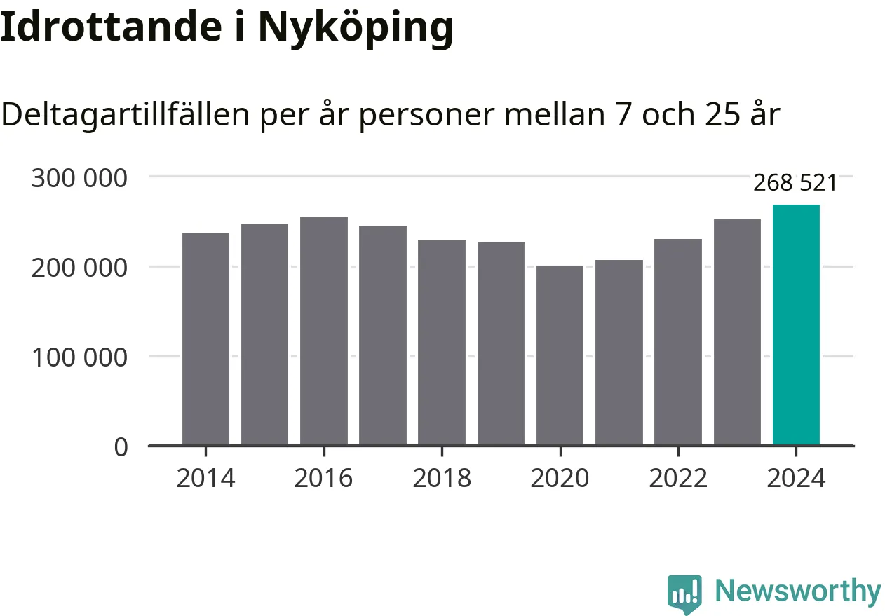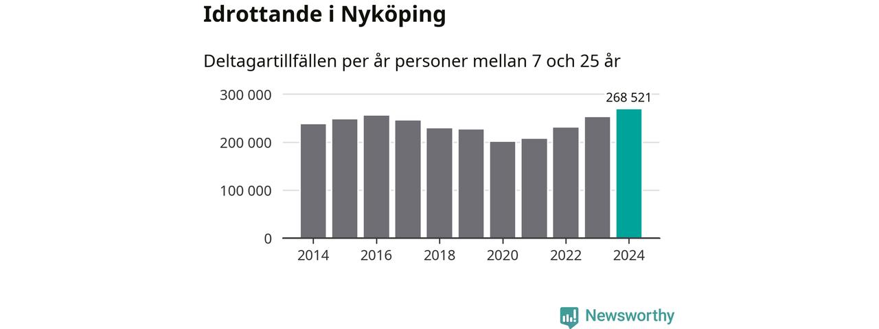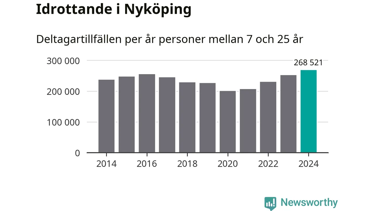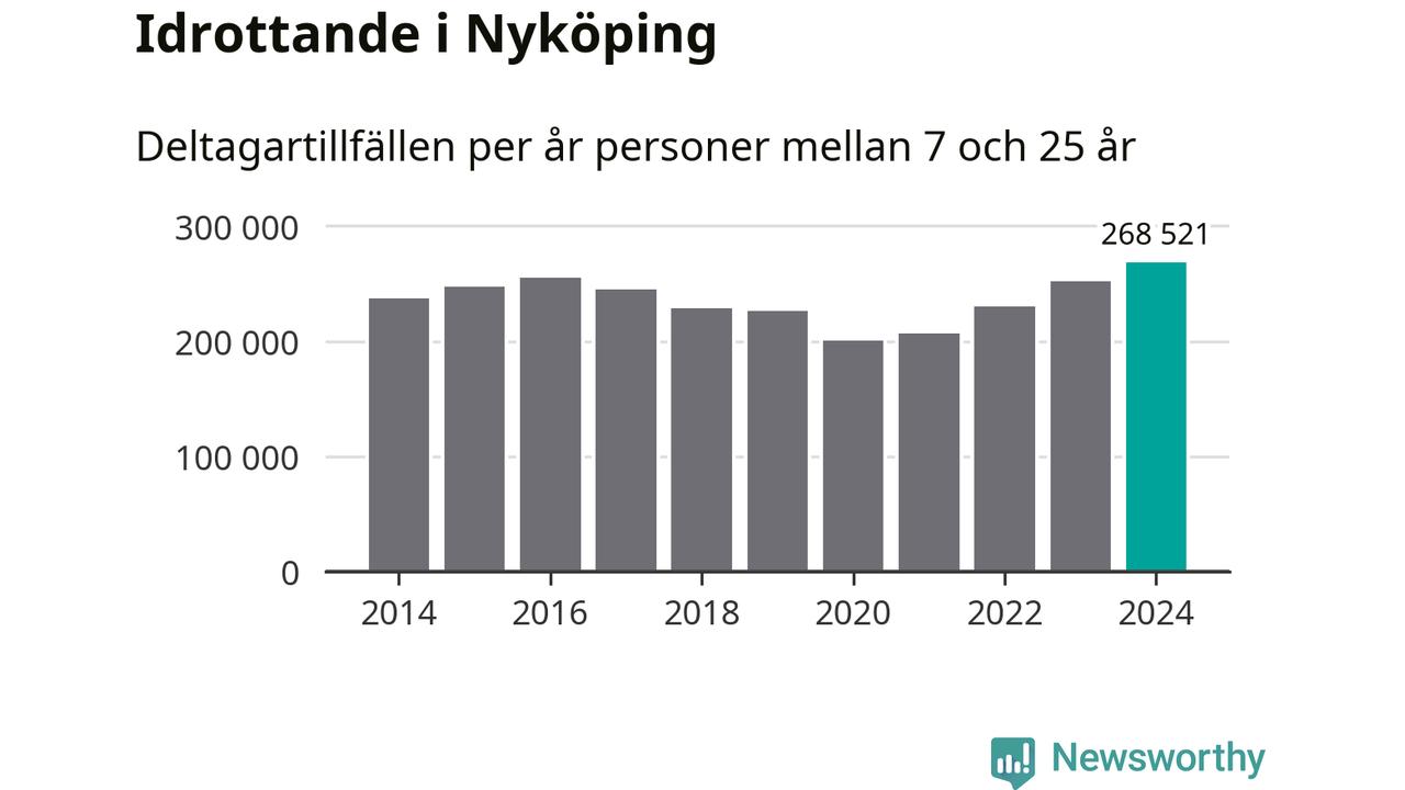 För fjärde året i rad ökade aktiviteten inom ungdomsidrotten i Nyköping under 2024. Det visar nya siffror om utbetalt Lok-stöd, som delas ut till föreningar anslutna till Riksidrottsförbundet specialidrottsförbund. Stödet riktar sig till föreningar som bedriver verksamhet för deltagare i åldern 7-25 år. Under året rapporterade föreningarna i Nyköping runt 269 000 deltagartillfällen, vilket är en ökning med sju procent jämfört med 2023, och den högsta siffran i kommunen sedan åtminstone 2014. I riket som helhet ökade antalet deltagartillfällen med fem procent under 2024.
