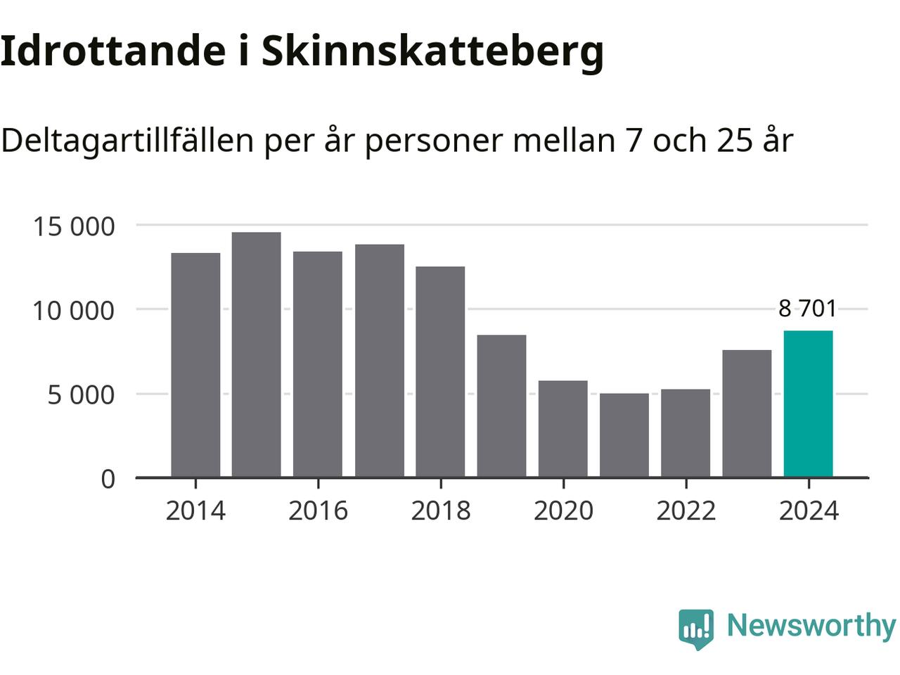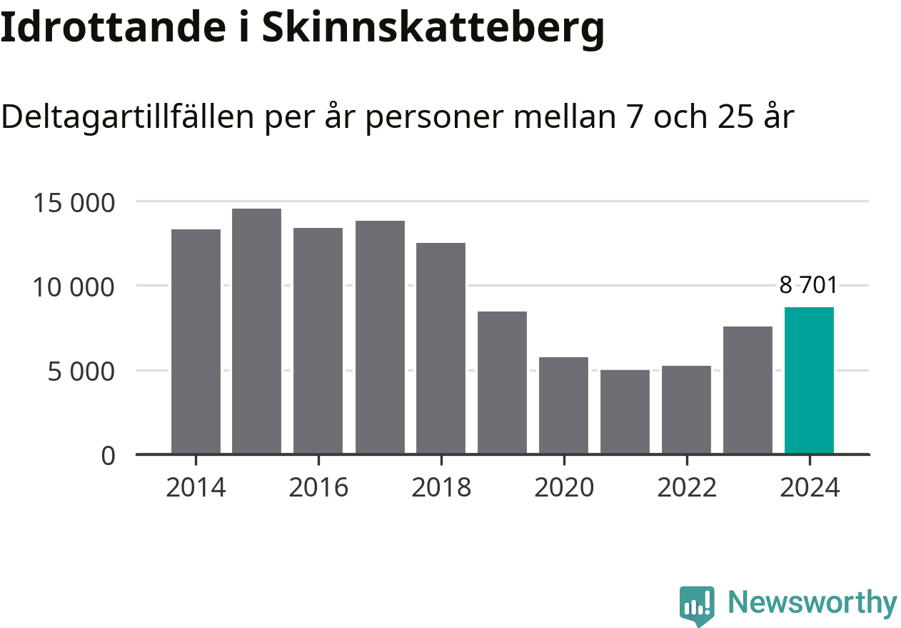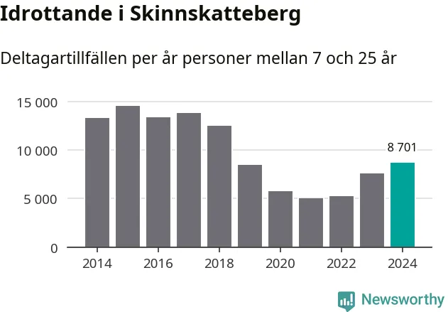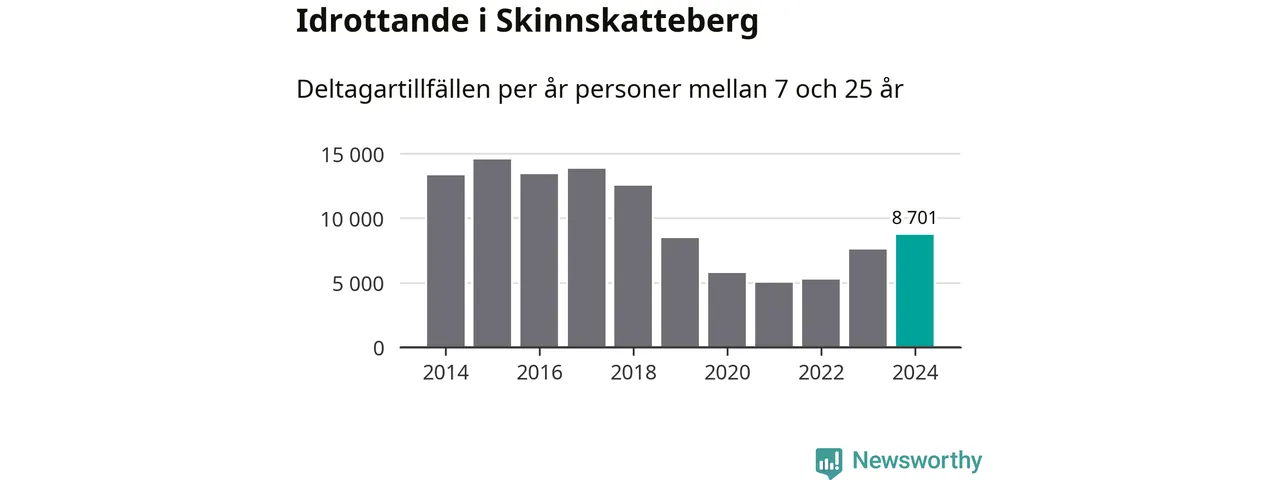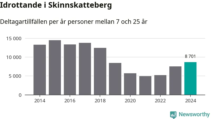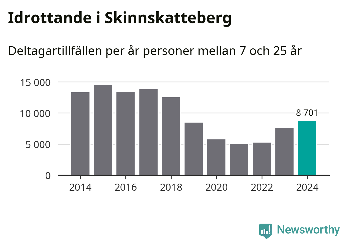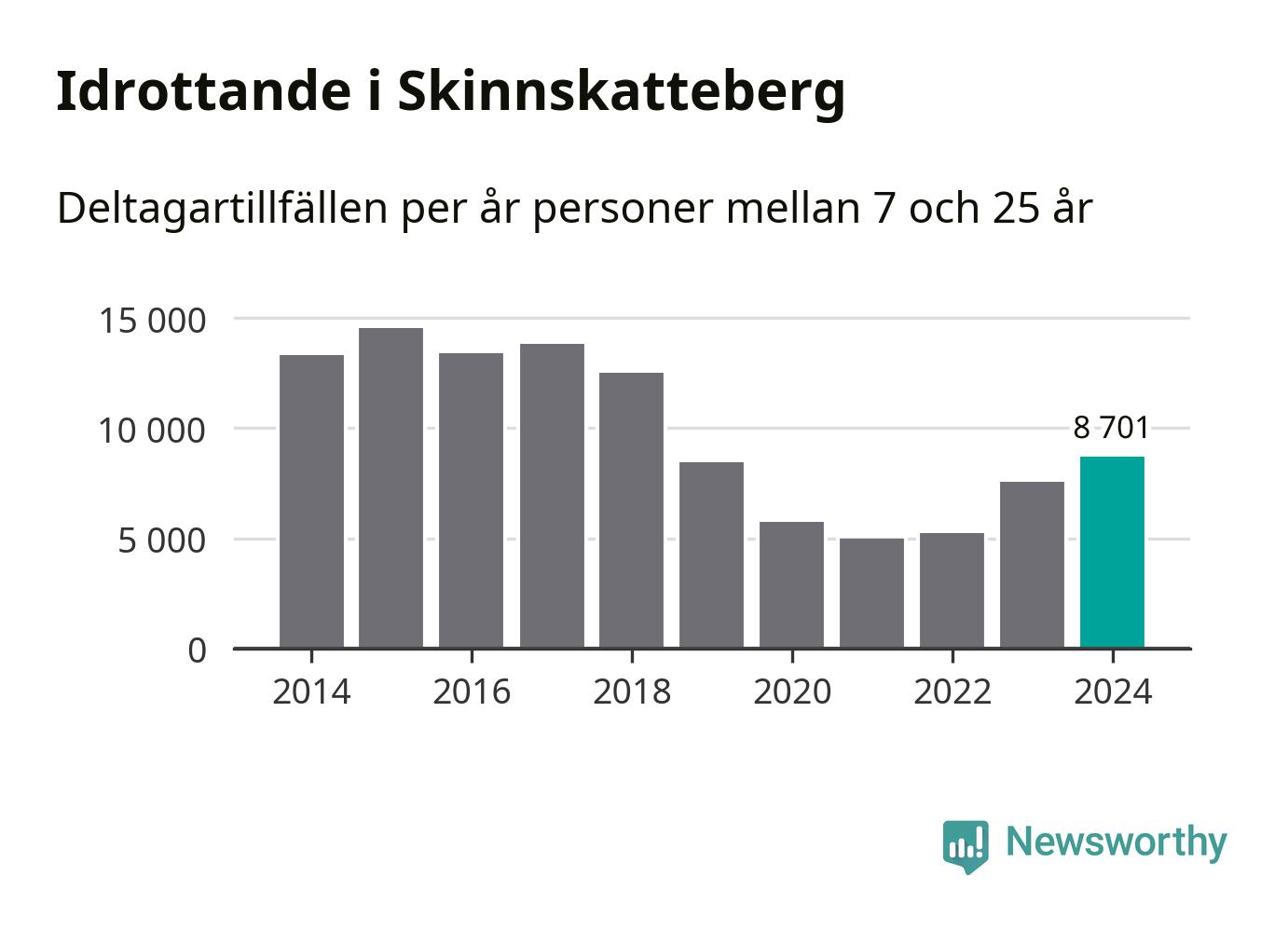 De knappt 9 000 deltagartillfällen innebär att varje invånare i Skinnskatteberg mellan 7 och 25 år i snitt deltog i 11 träningar, matcher eller turneringar under 2024. Det är den lägsta siffran i Västmanland. Flest deltagartillfällen per invånare i länet hade Surahammars kommun med 28 deltagartillfällen per invånare. Värt att nämna är att deltagartillfällena räknas i den kommun föreningen finns, det kan alltså vara ungdomar från en annan kommun som deltar.