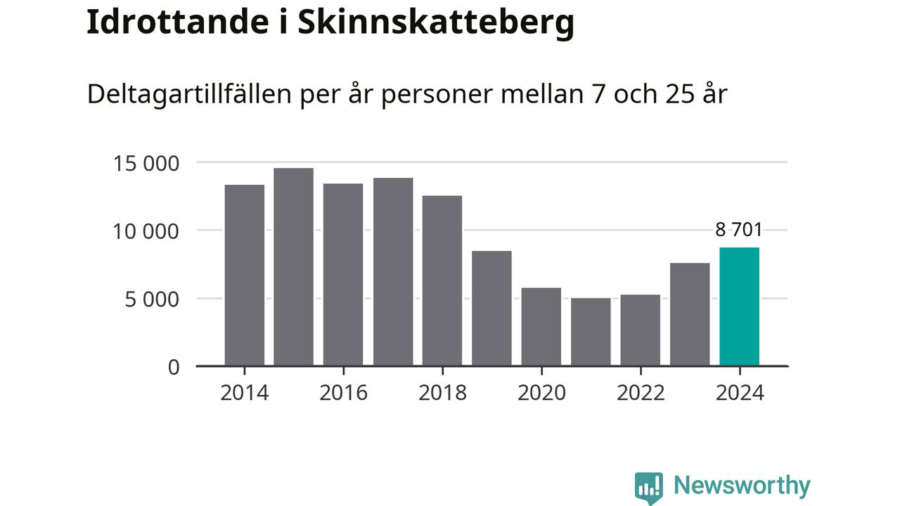 För tredje året i rad ökade aktiviteten inom ungdomsidrotten i Skinnskatteberg under 2024. Det visar nya siffror om utbetalt Lok-stöd, som delas ut till föreningar anslutna till Riksidrottsförbundet specialidrottsförbund. Stödet riktar sig till föreningar som bedriver verksamhet för deltagare i åldern 7-25 år. Under året rapporterade föreningarna i Skinnskatteberg knappt 9 000 deltagartillfällen, vilket är en ökning med 15 procent jämfört med 2023. I riket som helhet ökade antalet deltagartillfällen med fem procent under 2024.