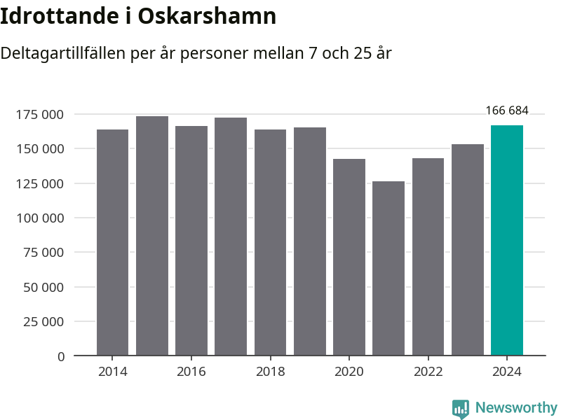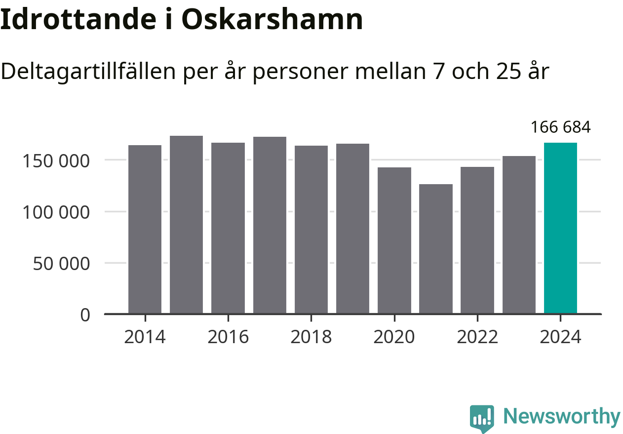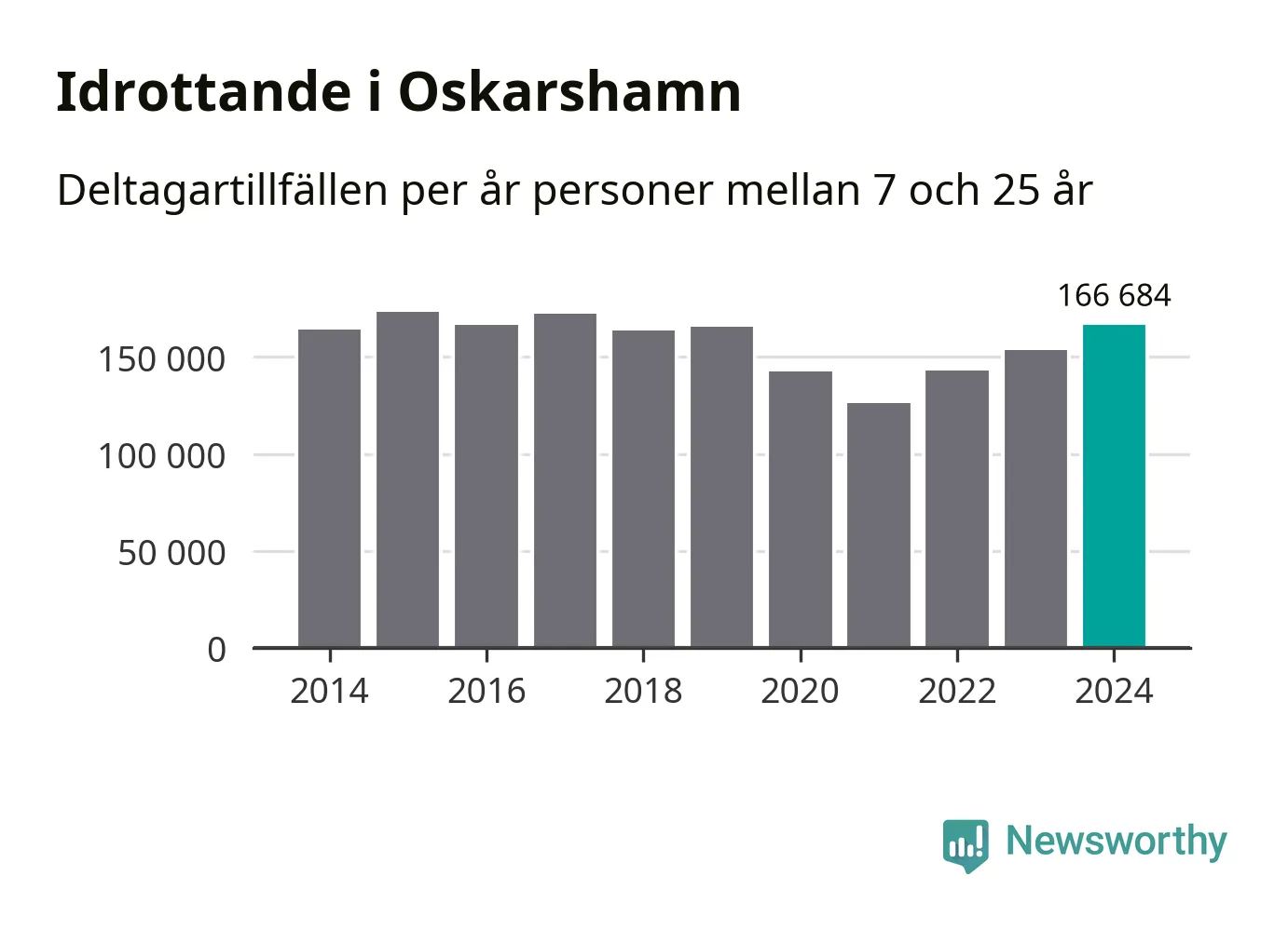 De 167 000 deltagartillfällen innebär att varje invånare i Oskarshamn mellan 7 och 25 år i snitt deltog i 30 träningar, matcher eller turneringar under 2024. Det är den näst högsta siffran i Kalmar län. Flest deltagartillfällen per invånare i Kalmar län hade Mörbylånga kommun med 32 deltagartillfällen per invånare. I andra änden av listan finns Högsby kommun, 12 deltagartillfällen per invånare. Värt att nämna är att deltagartillfällena räknas i den kommun föreningen finns, det kan alltså vara ungdomar från en annan kommun som deltar.