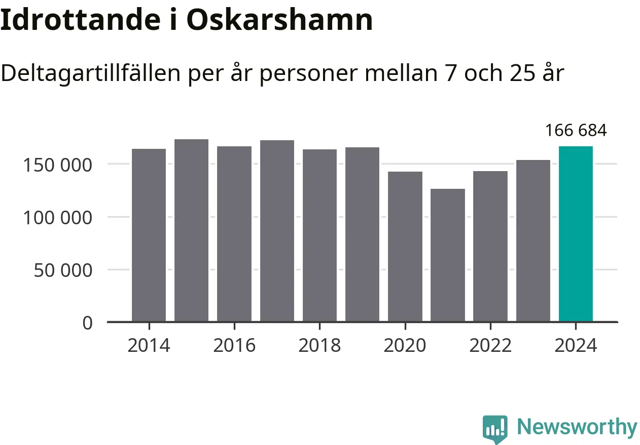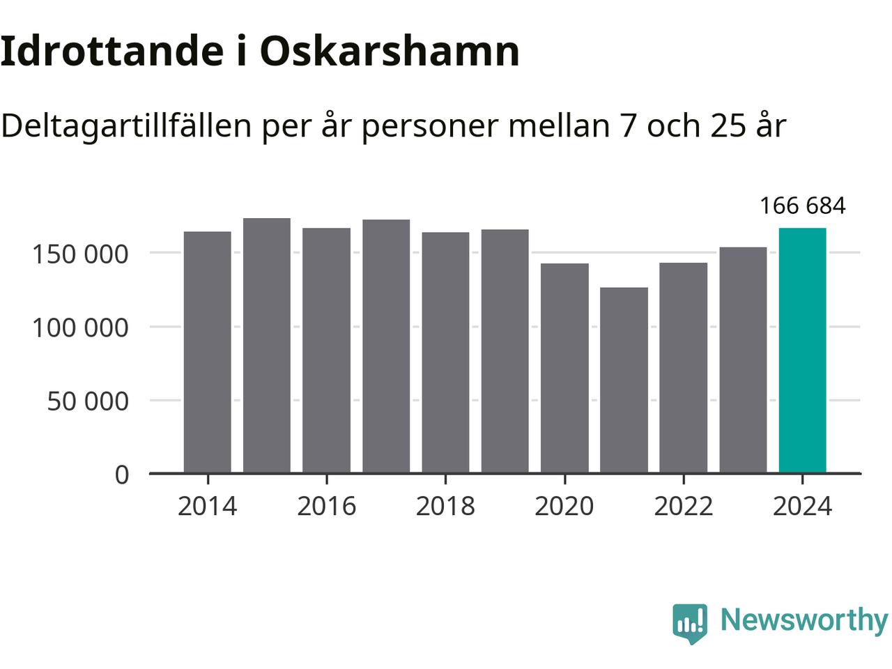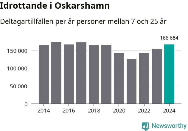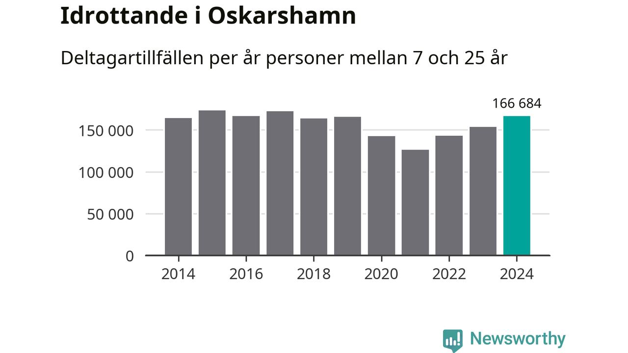 För tredje året i rad ökade aktiviteten inom ungdomsidrotten i Oskarshamn under 2024. Det visar nya siffror om utbetalt Lok-stöd, som delas ut till föreningar anslutna till Riksidrottsförbundet specialidrottsförbund. Stödet riktar sig till föreningar som bedriver verksamhet för deltagare i åldern 7-25 år. Under året rapporterade föreningarna i Oskarshamn runt 167 000 deltagartillfällen, vilket är en ökning med nio procent jämfört med 2023 och den högsta siffran i kommunen sedan 2017. I riket som helhet ökade antalet deltagartillfällen med fem procent under 2024.